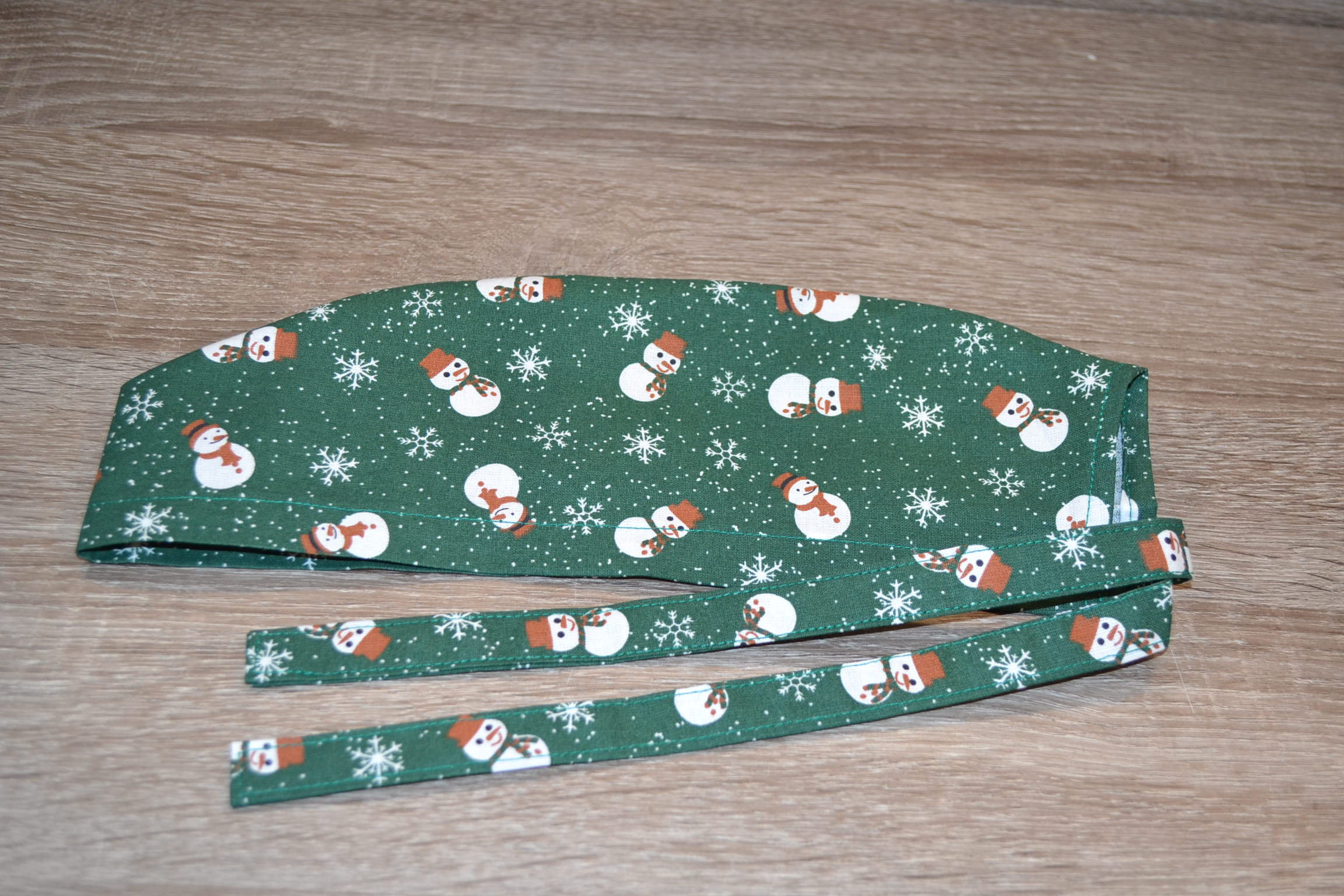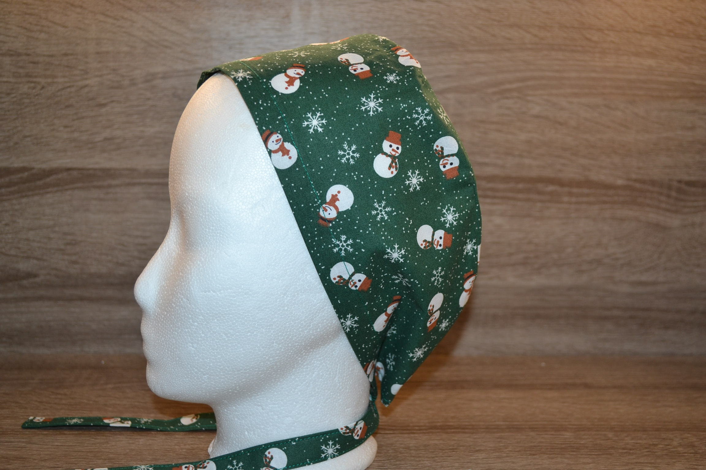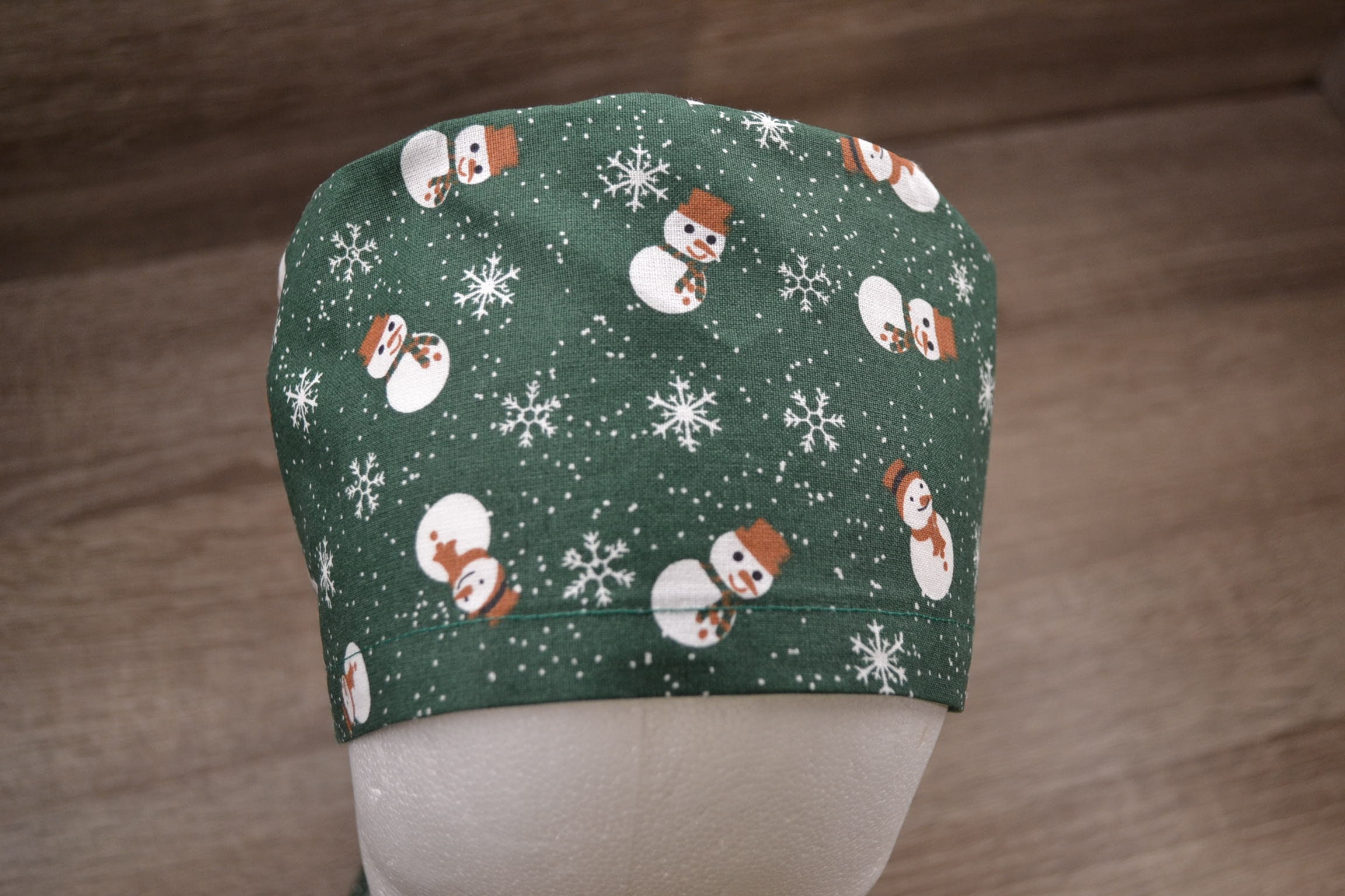 Snowman surgical cap with terry cloth band, scrub cap, bandana, cosmetic cap, peeling cap, chef's hat, Christmas surgical caps, handmade