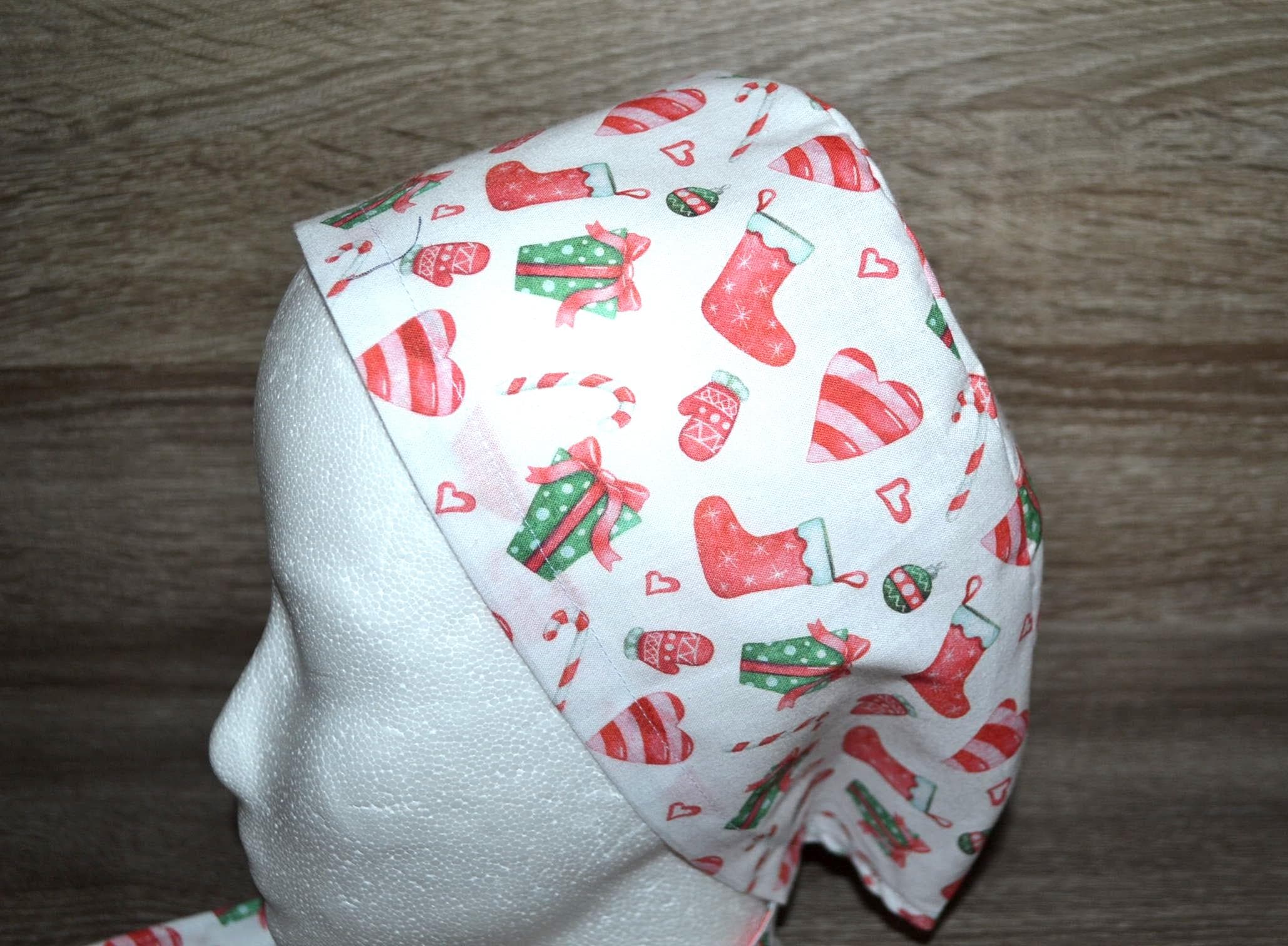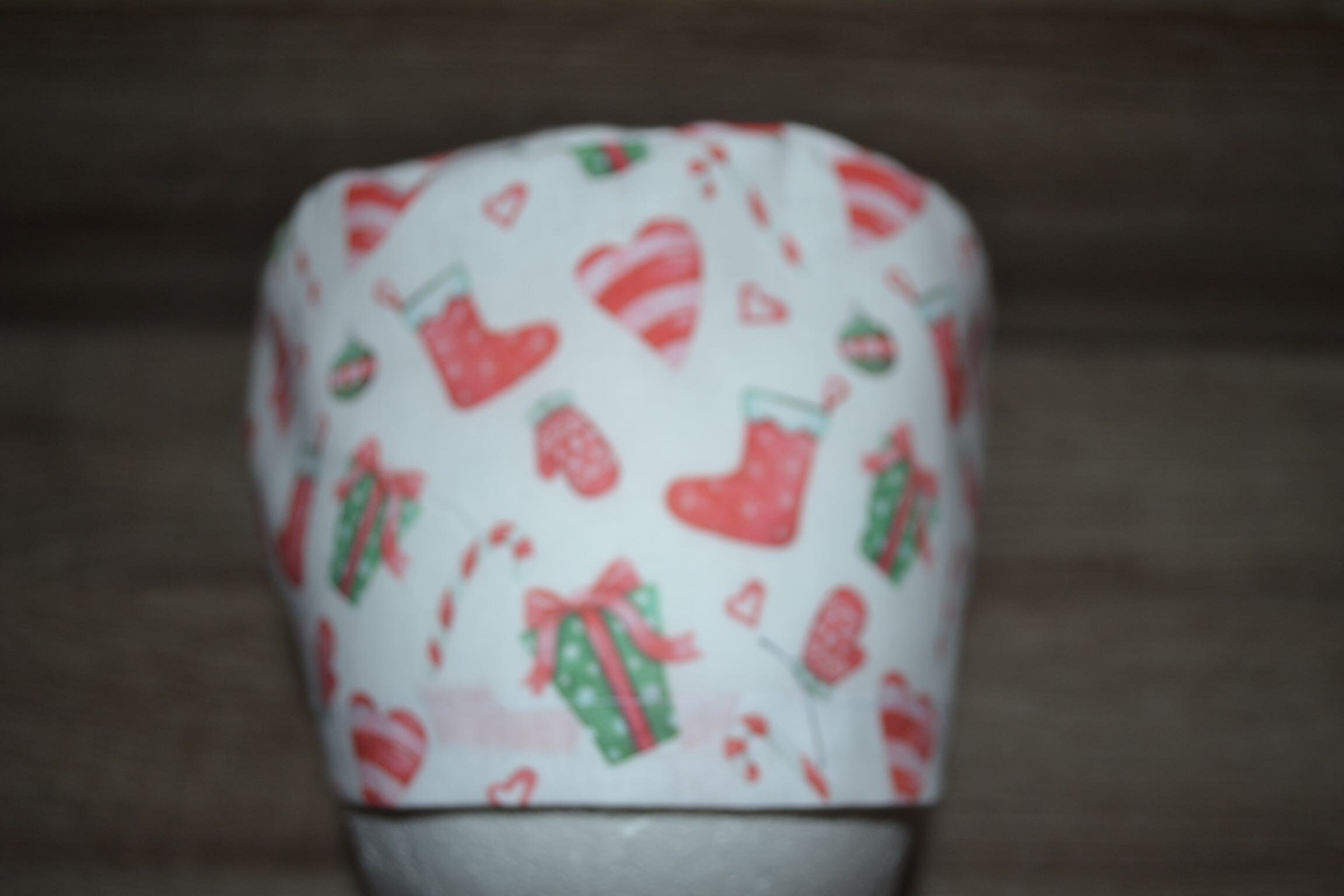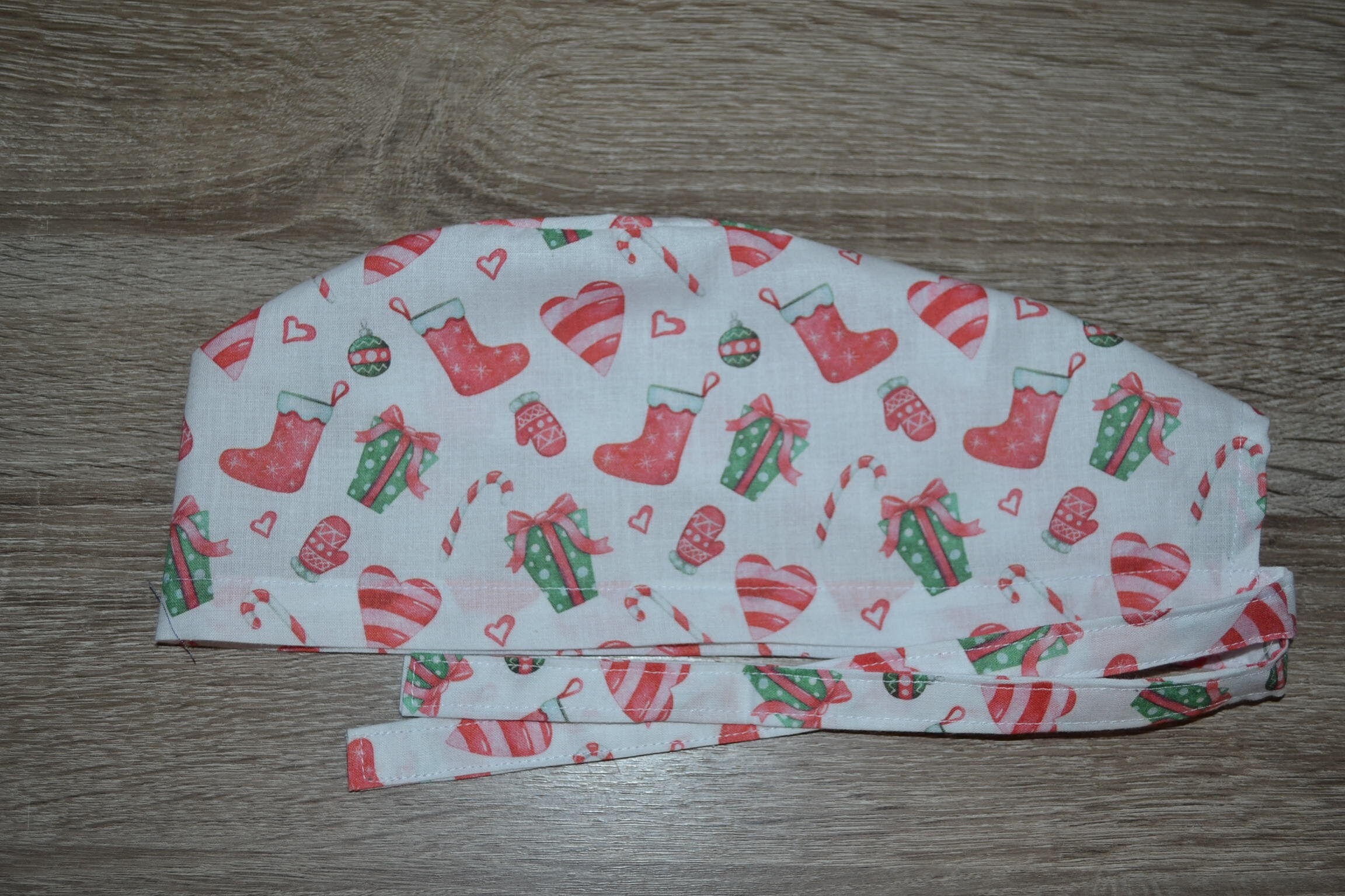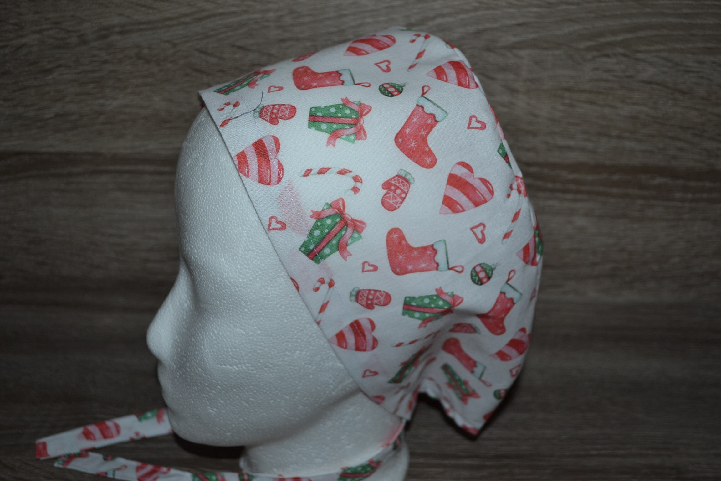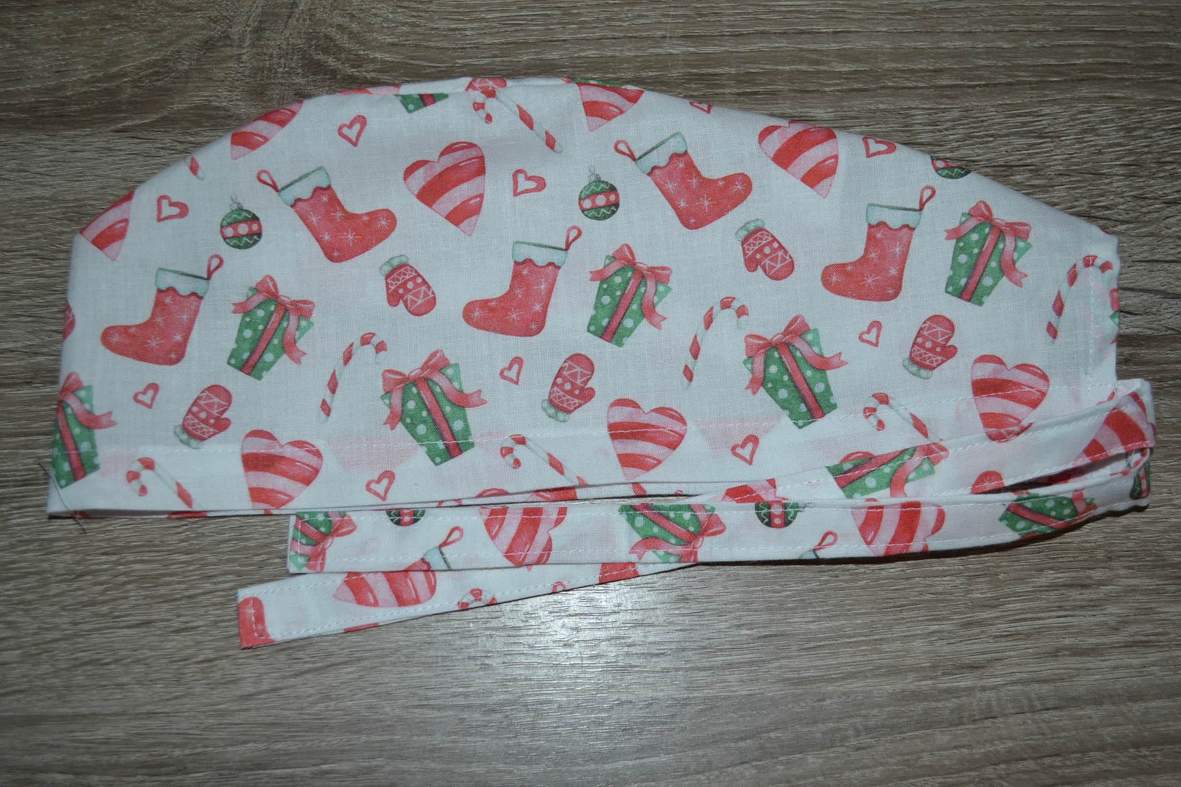 Surgical cap with Christmas motifs, scrub cap, bandana, cosmetic cap, peeling cap, chef's hat, white with hearts, Christmas surgical caps, handmade