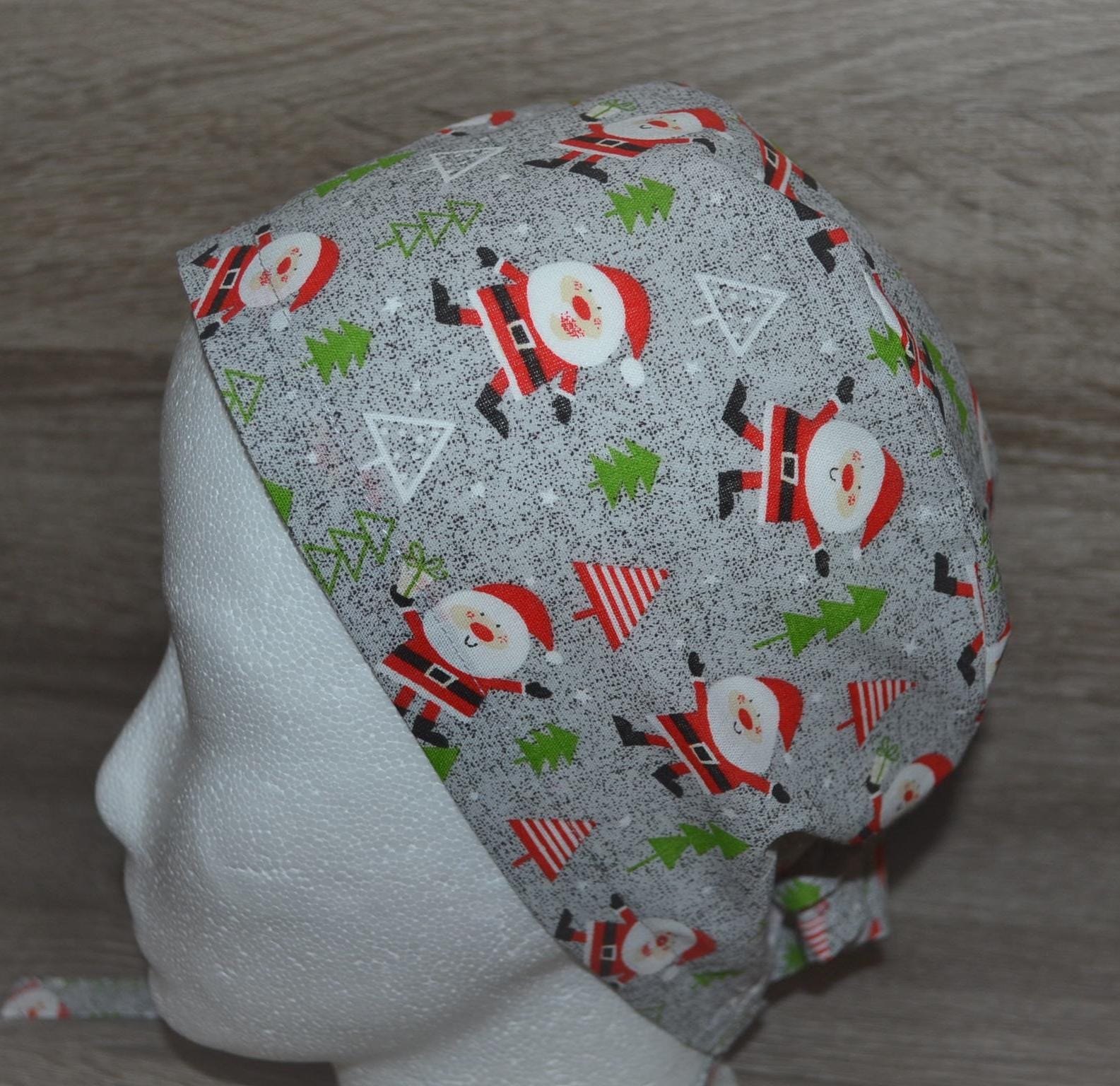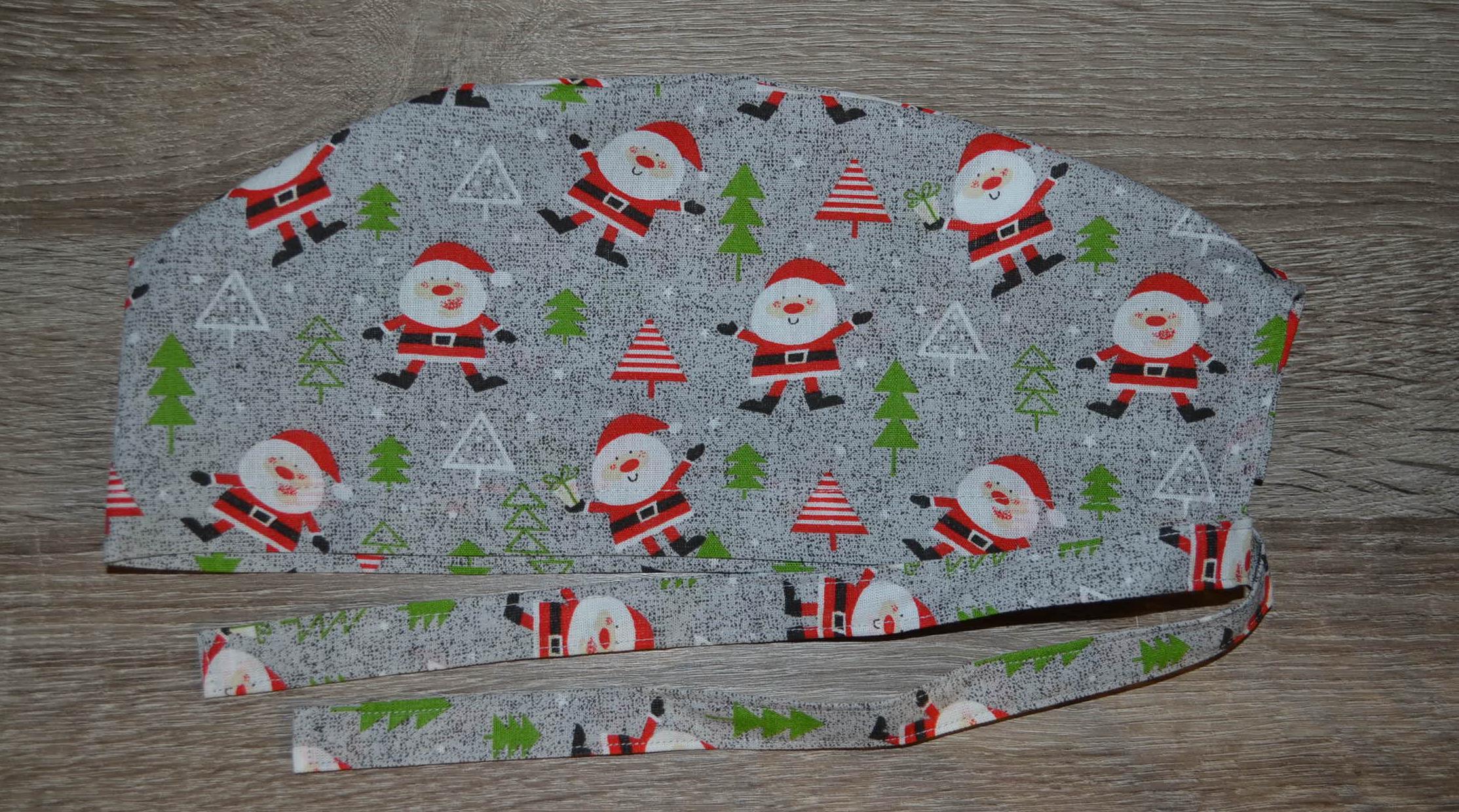 Surgical cap Santa Claus, scrub cap, bandana, cosmetic cap, peeling cap, grey with Santa Claus, chef's hat, Christmas surgical caps, Santa Claus cap