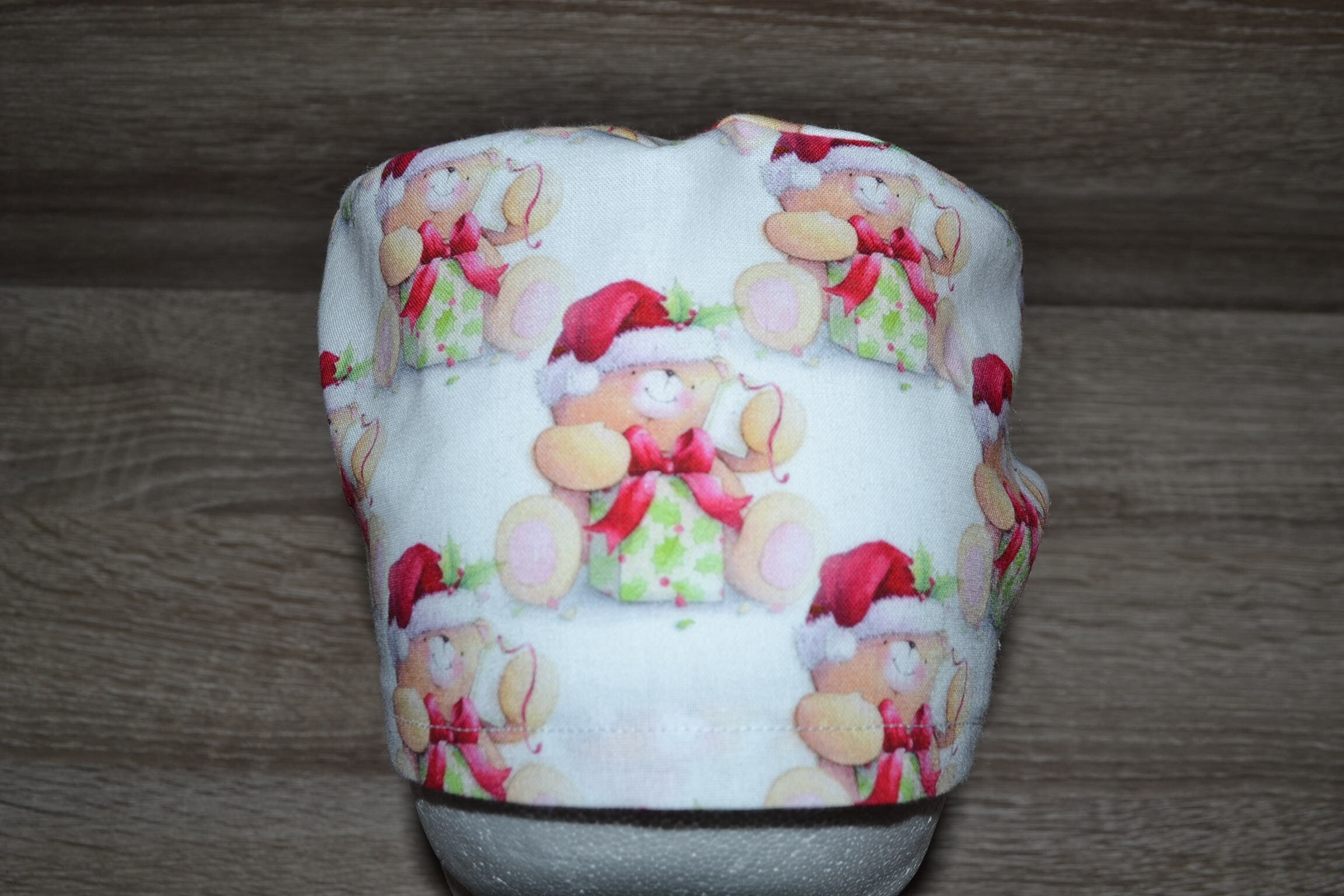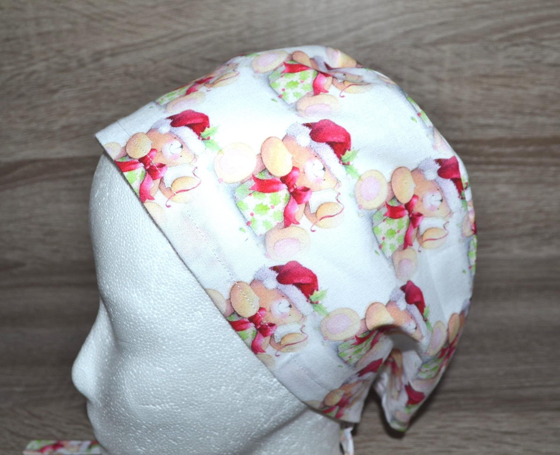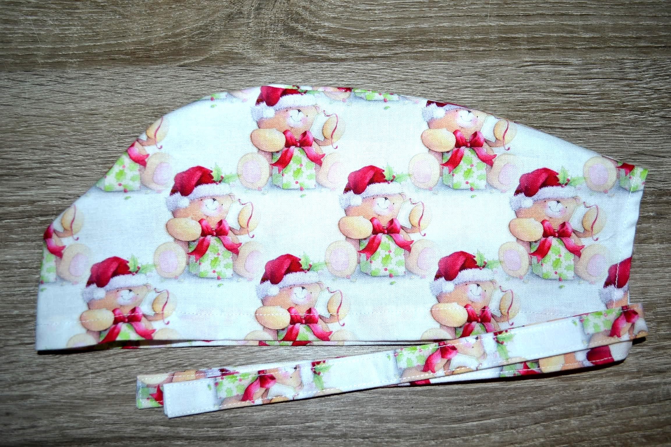 Surgical cap with Christmas bear design, terry cloth band, scrub cap, bandana, cosmetic cap, peeling cap, chef's hat, Christmas surgical caps, Christmas cap