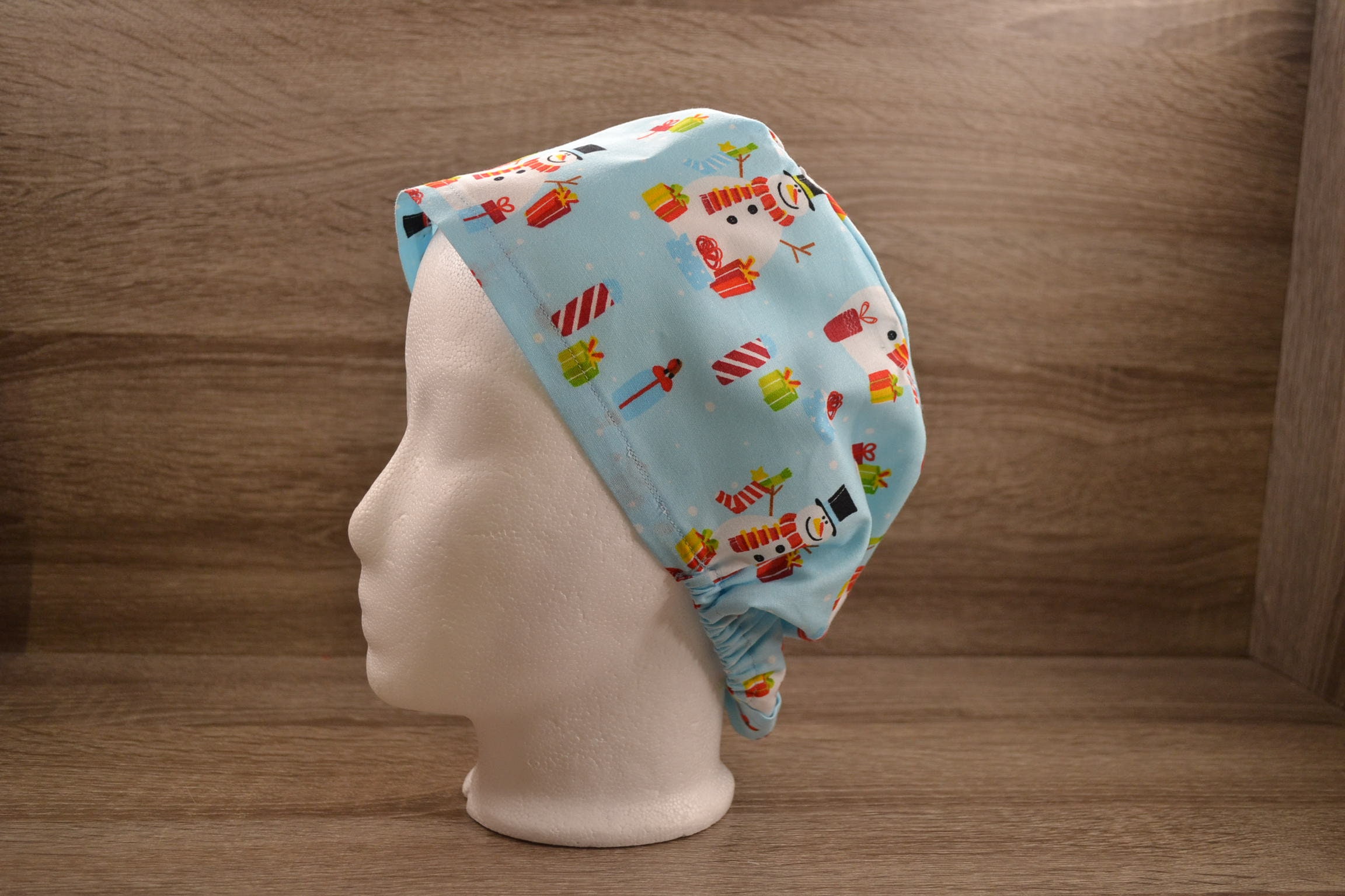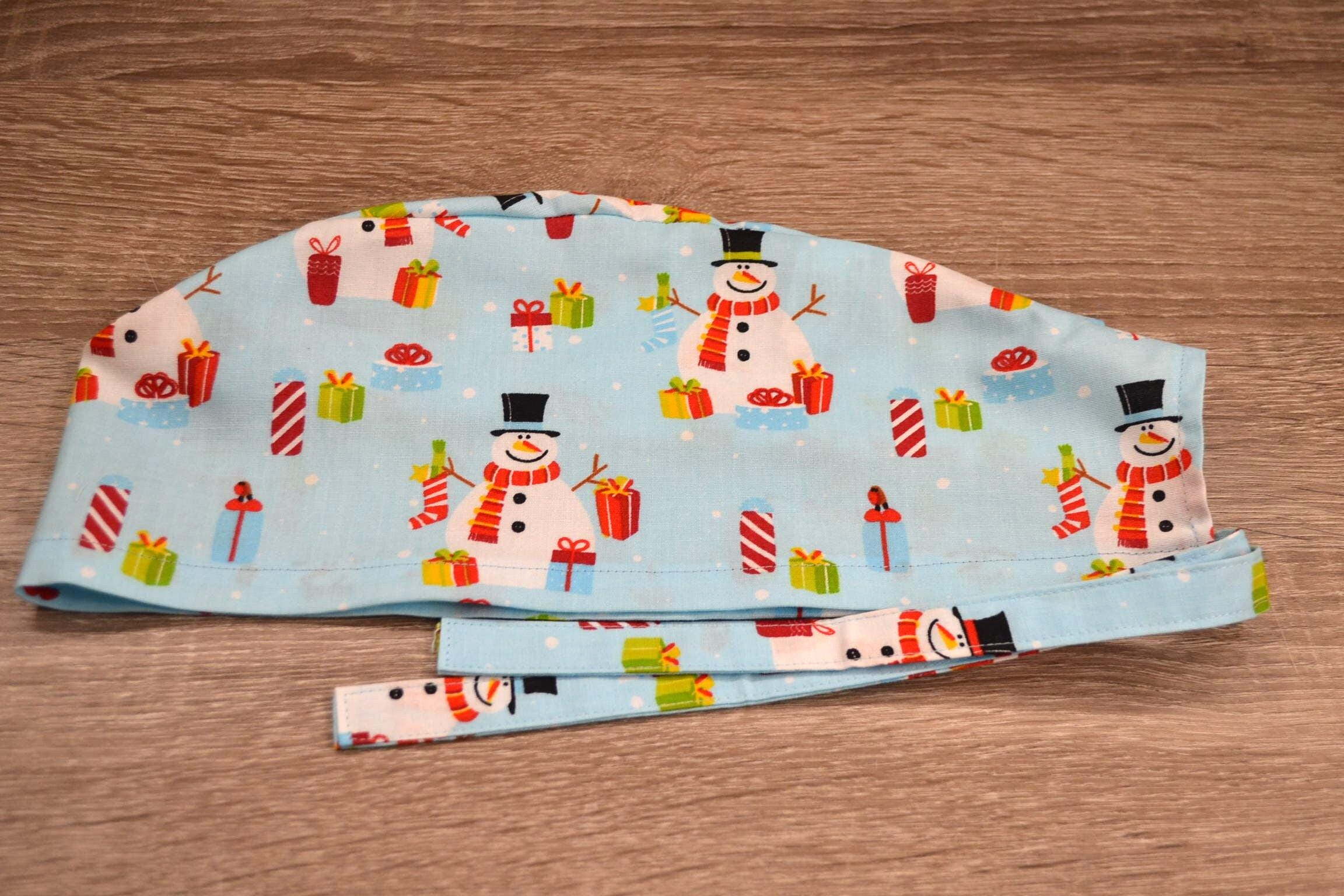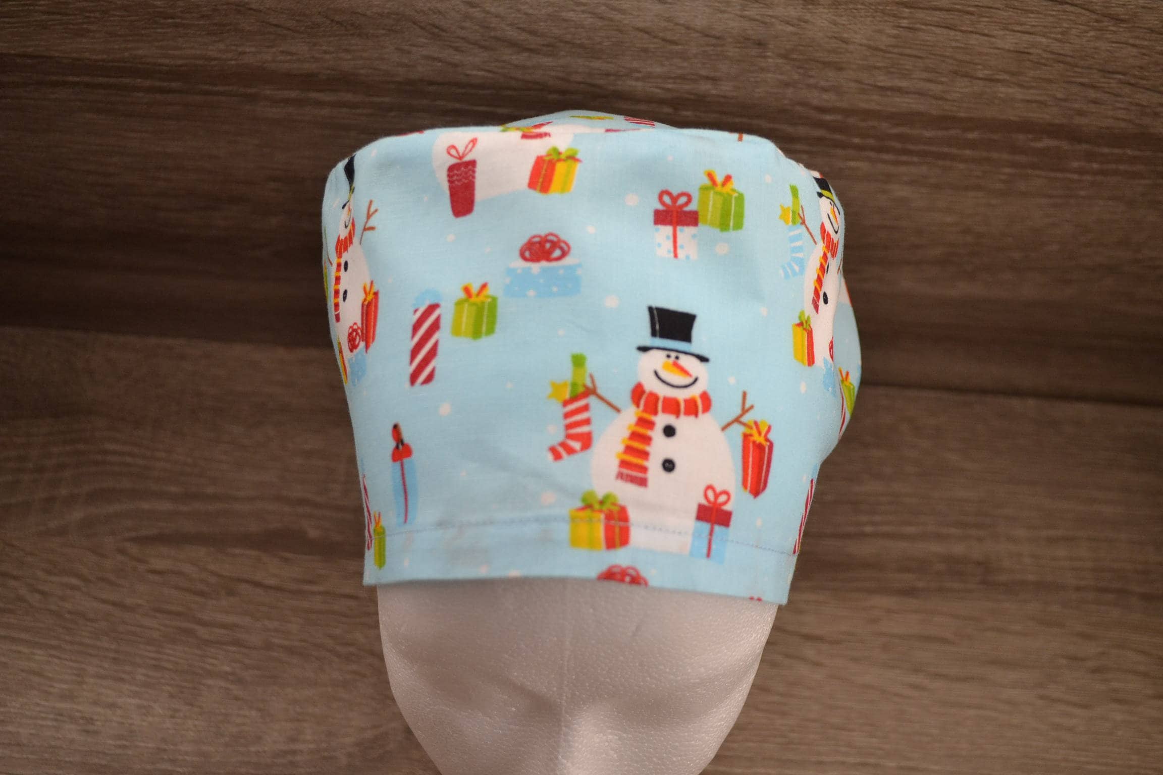 Snowman surgical cap with terry cloth band, scrub cap, bandana, cosmetic cap, peeling cap, chef's cap, Christmas surgical caps, snowman cap