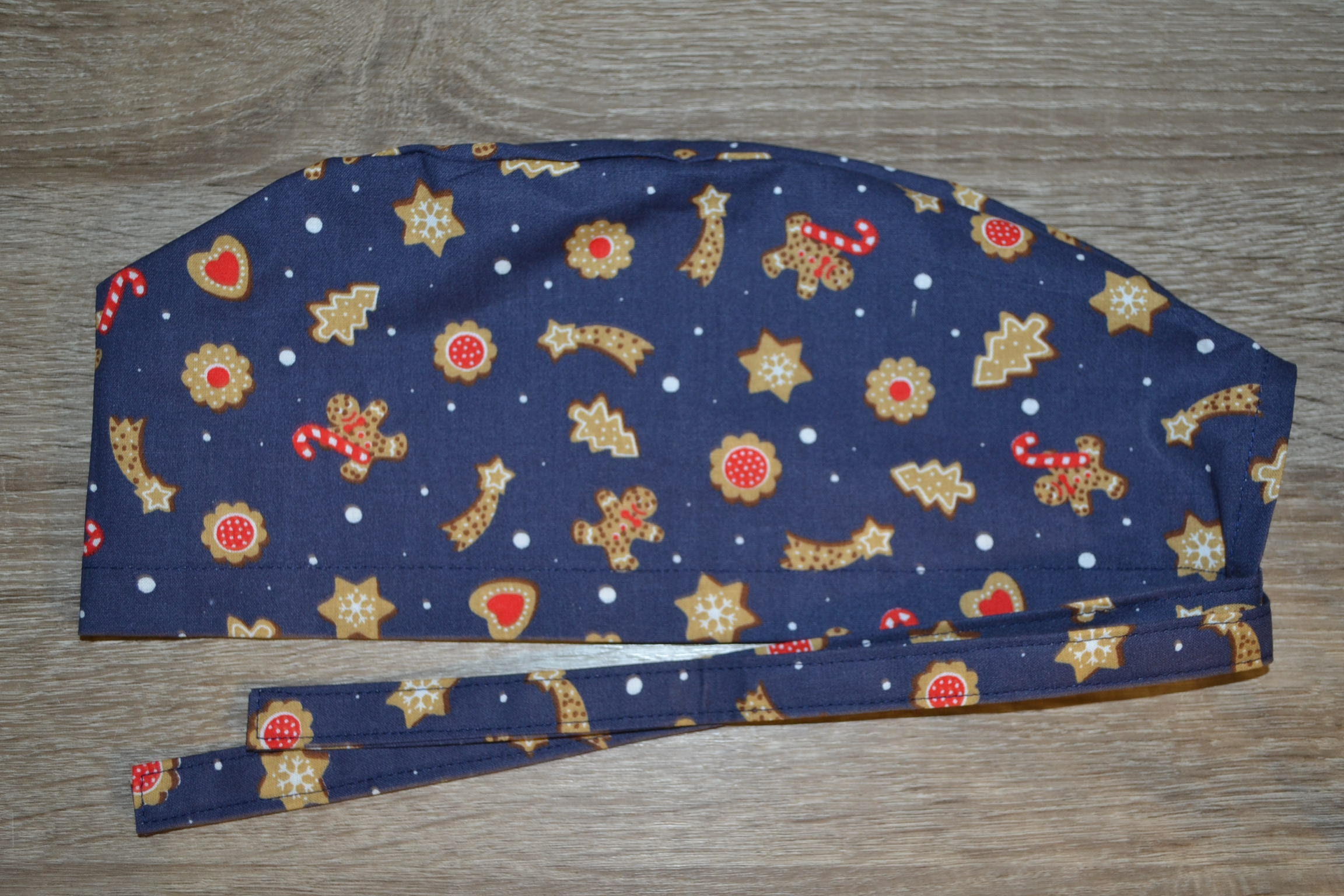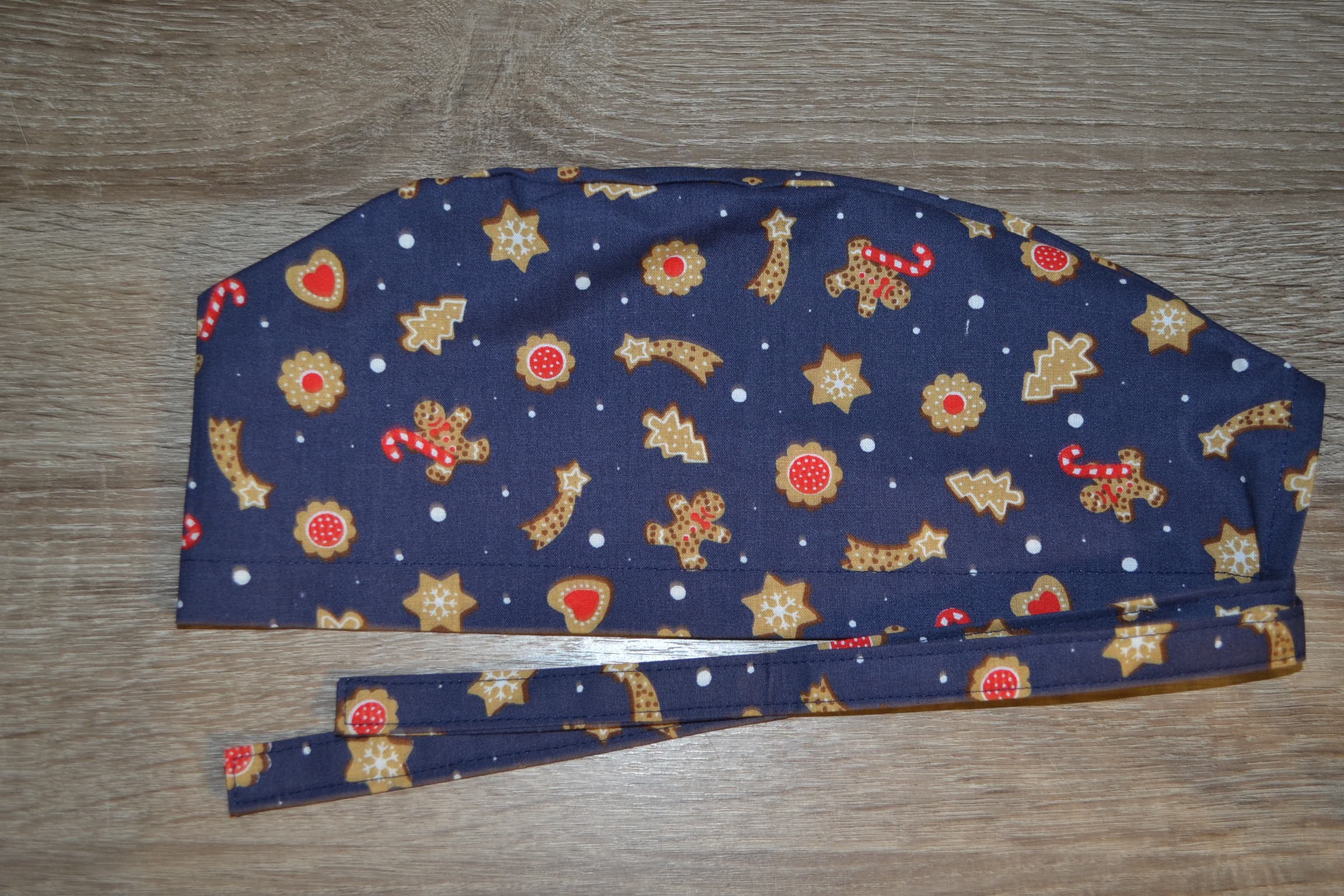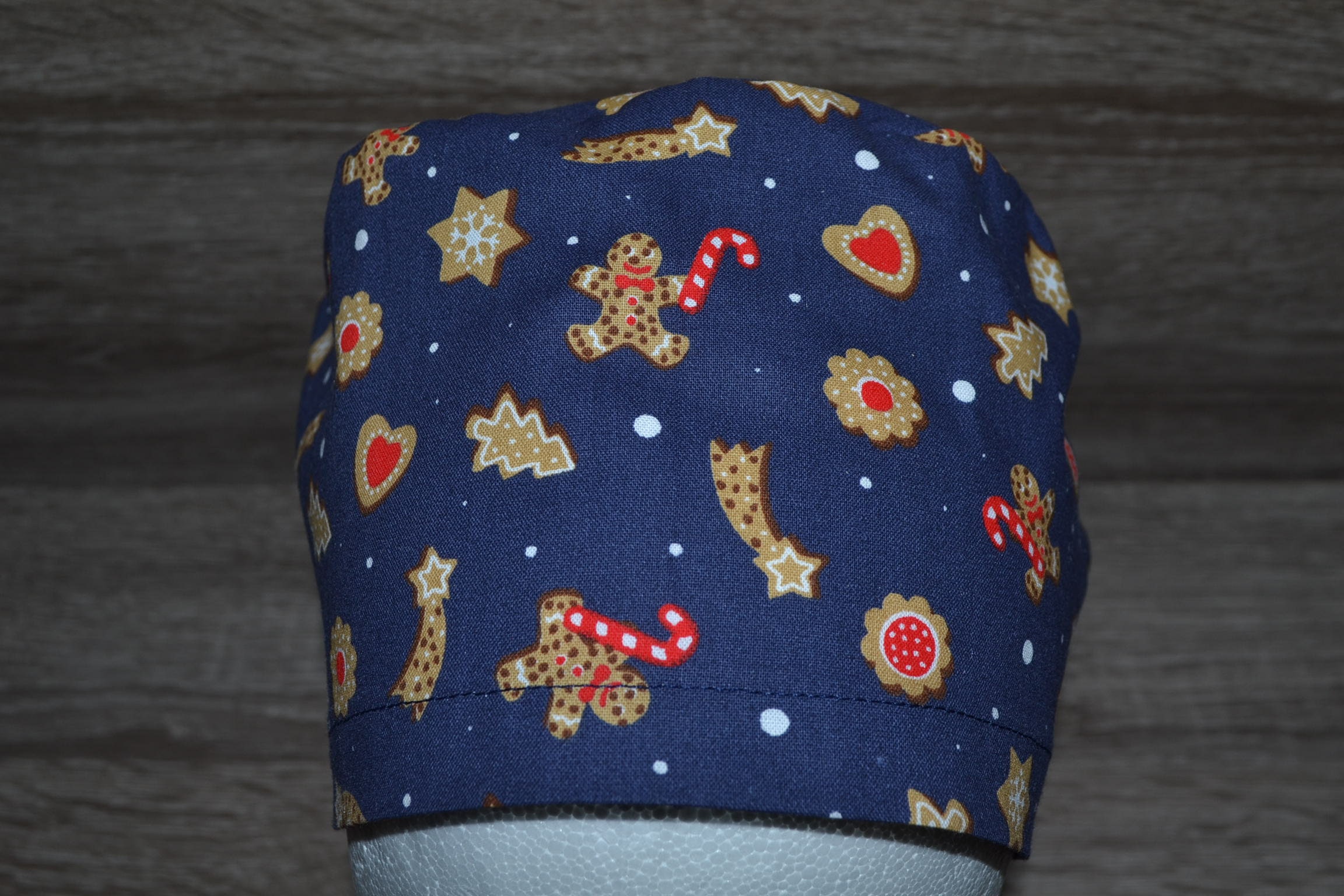 Gingerbread surgical cap, scrub cap, bandana, cosmetic cap, peeling cap, chef's hat, blue with gingerbread, Christmas surgical caps, handmade