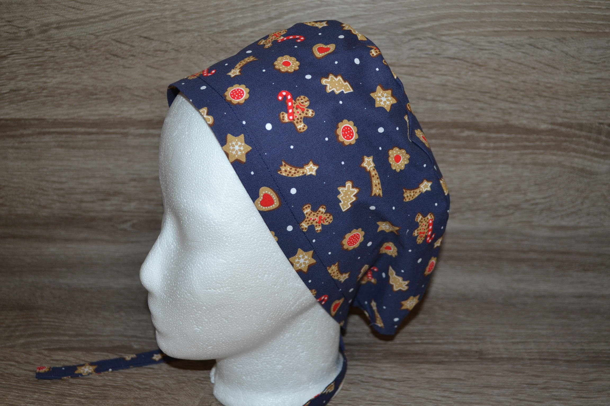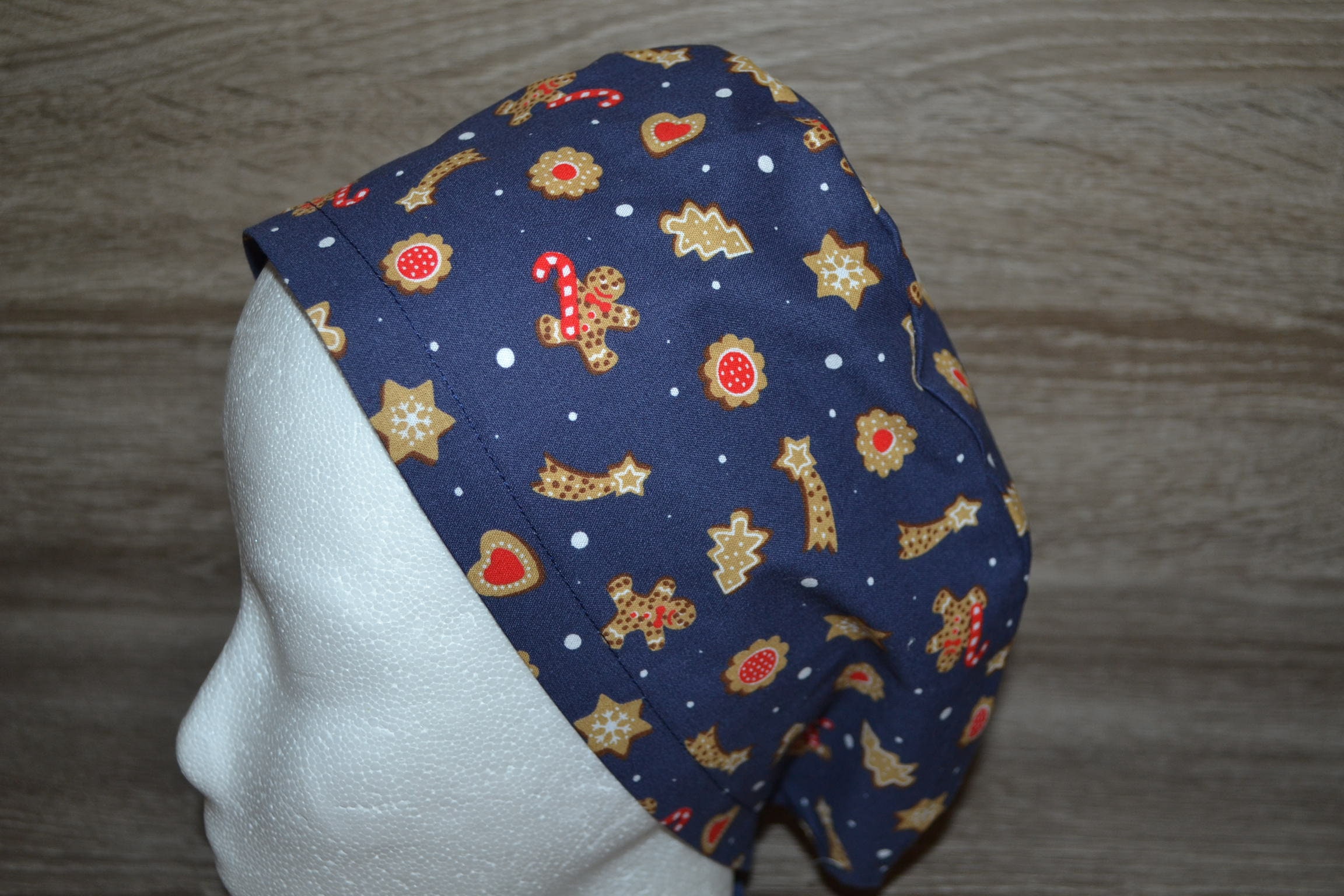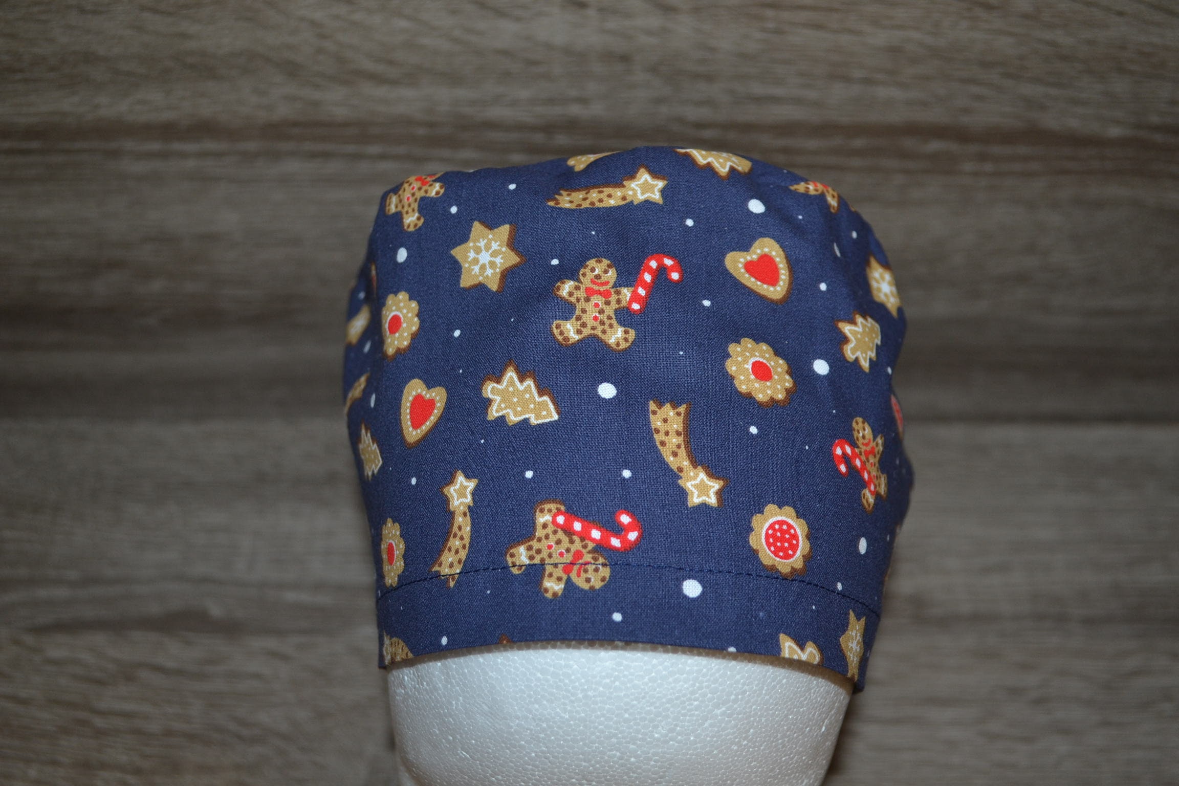Gingerbread surgical cap, scrub cap, bandana, cosmetic cap, peeling cap, chef's hat, blue with gingerbread, Christmas surgical caps, handmade