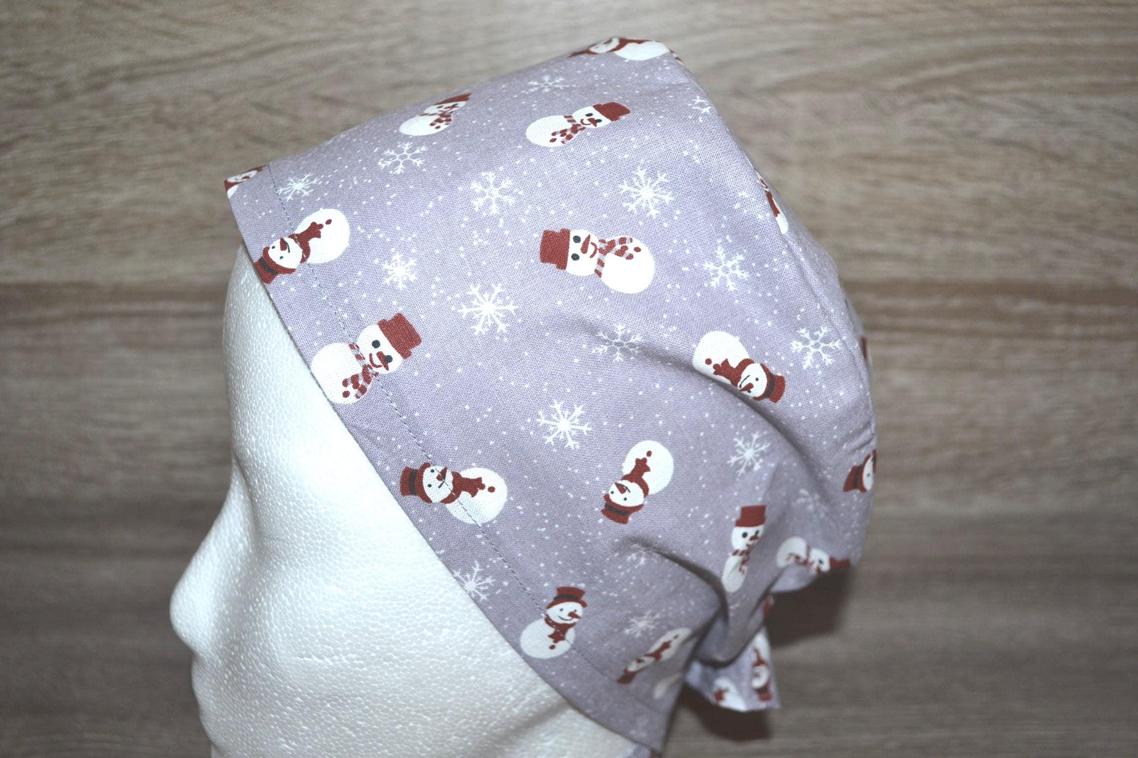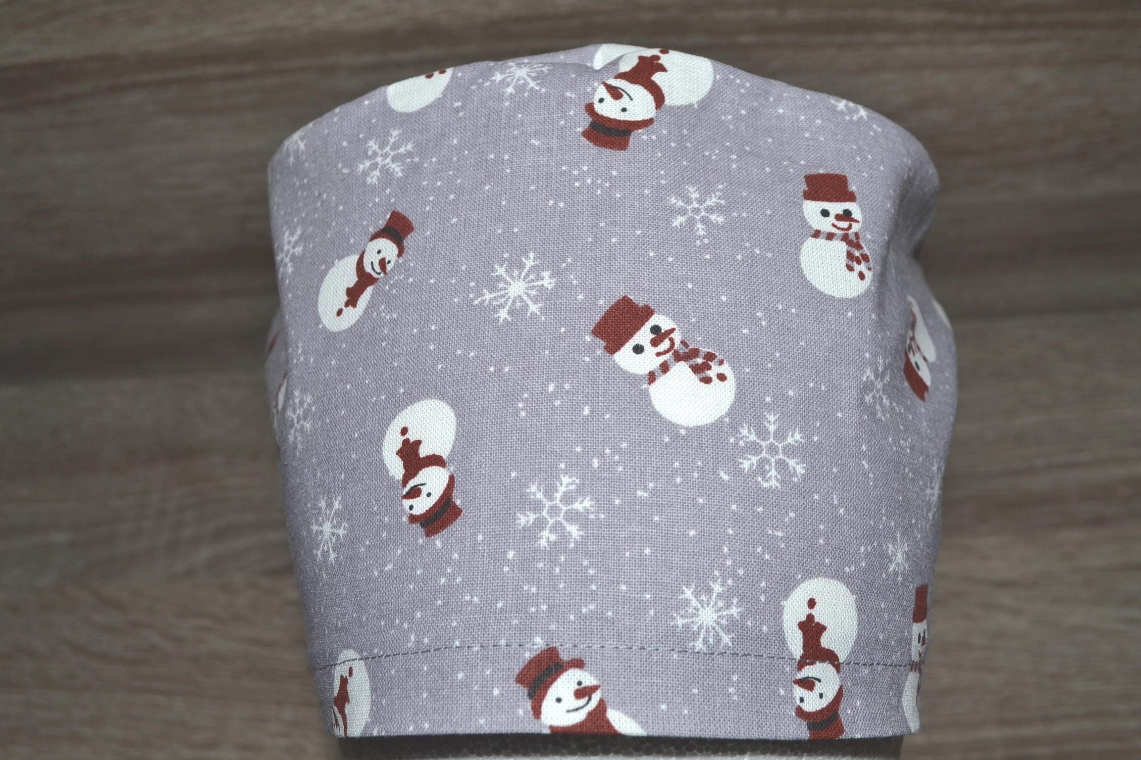 Surgical cap with snowman design, scrub cap, bandana, cosmetic cap, peeling cap, grey with snowmen, chef's hat, Christmas surgical caps
