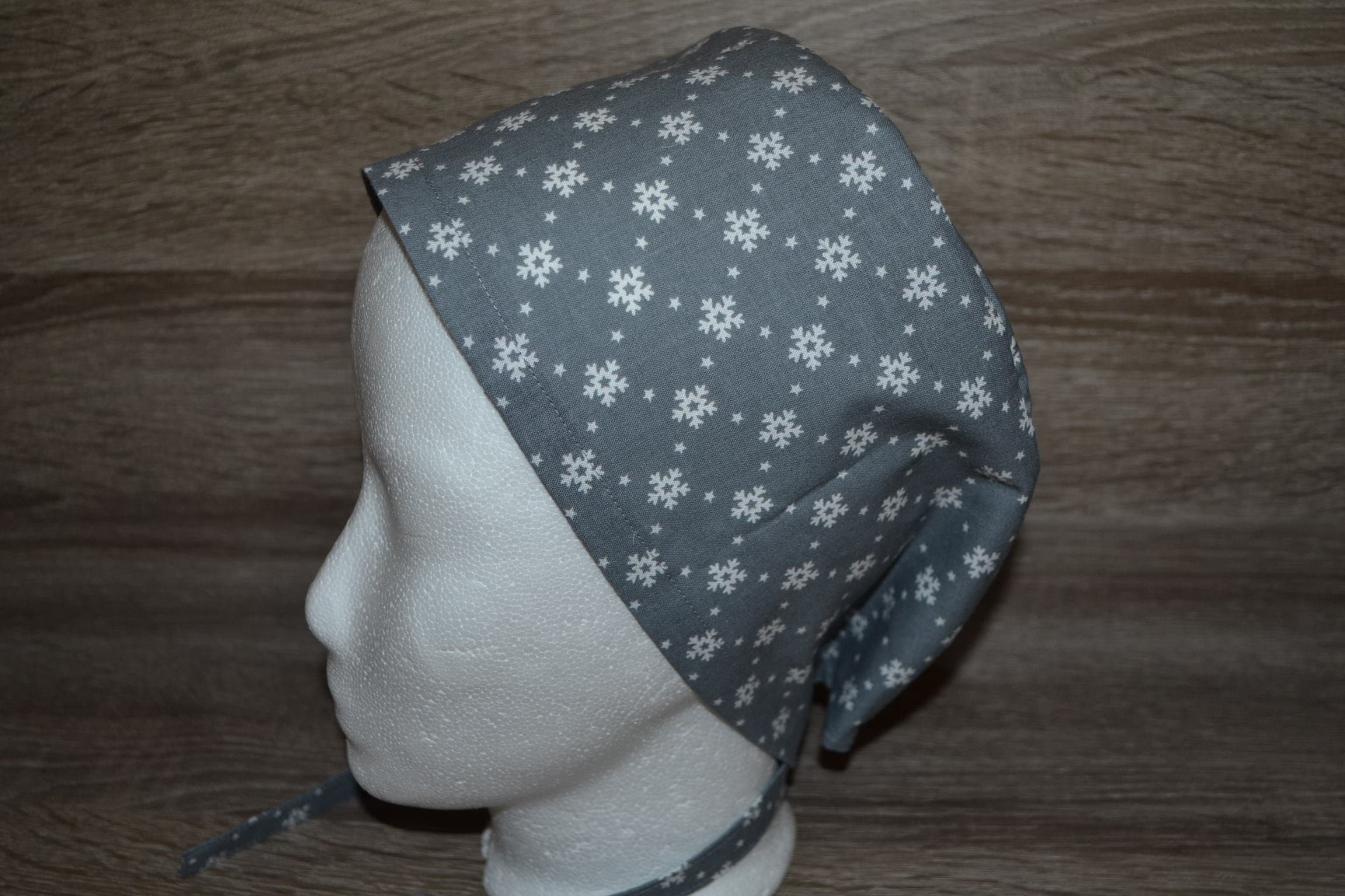 Surgical cap snowflake with terry cloth band, scrub cap, bandana, cosmetic cap, peeling cap, chef's hat, surgical caps Christmas, handmade