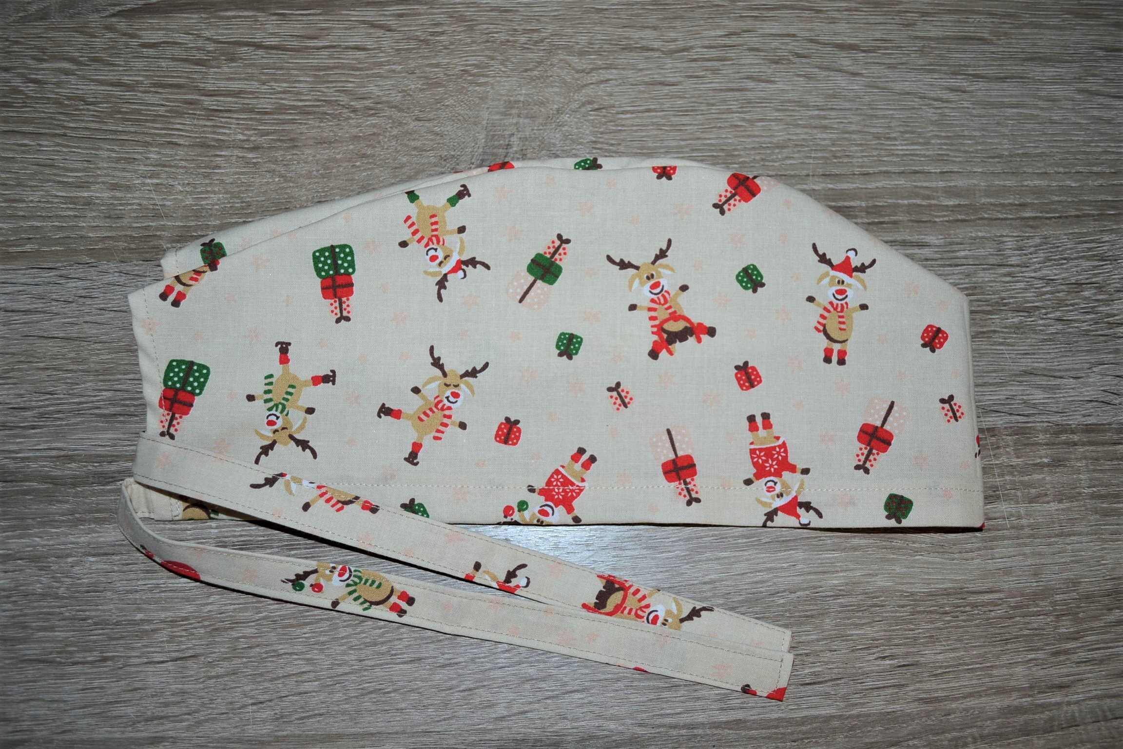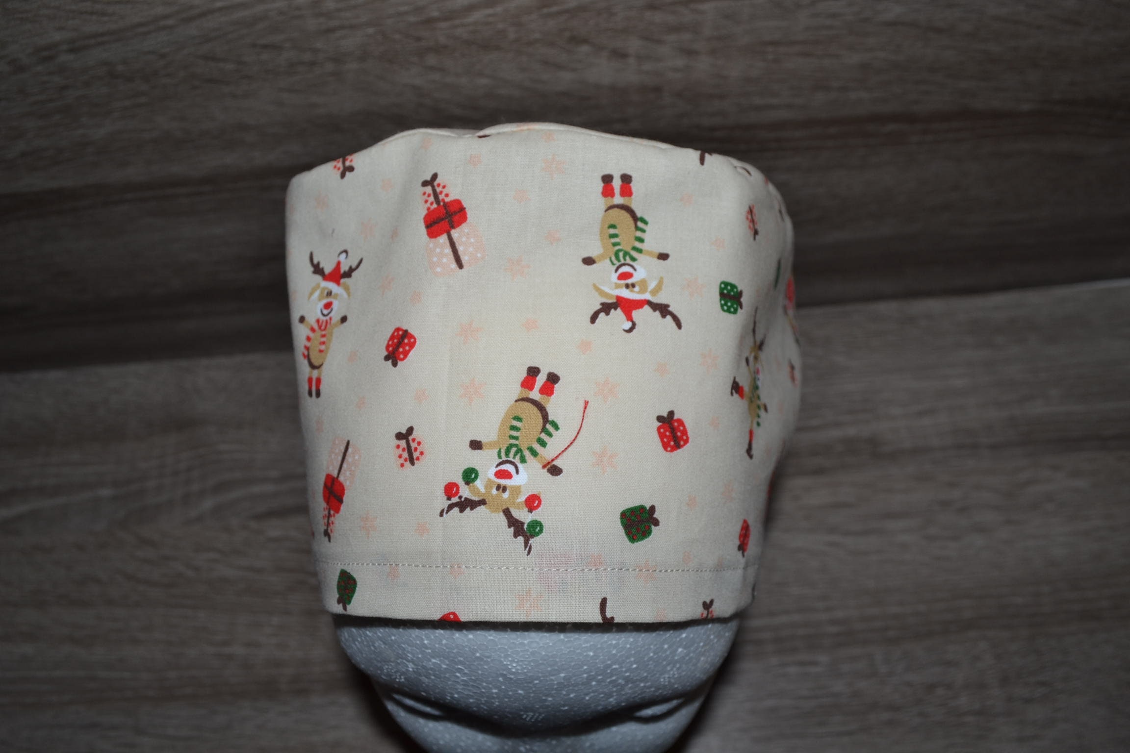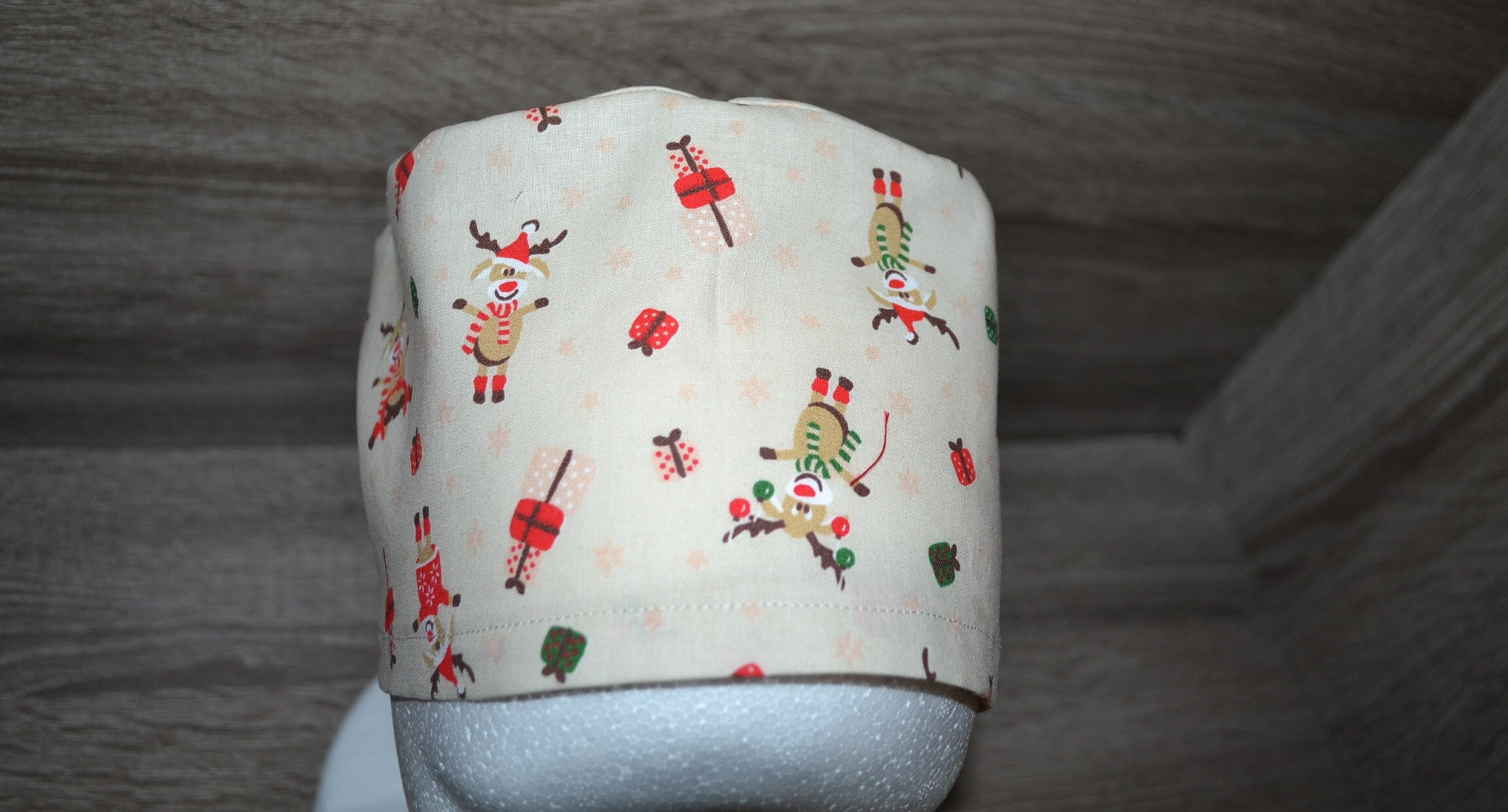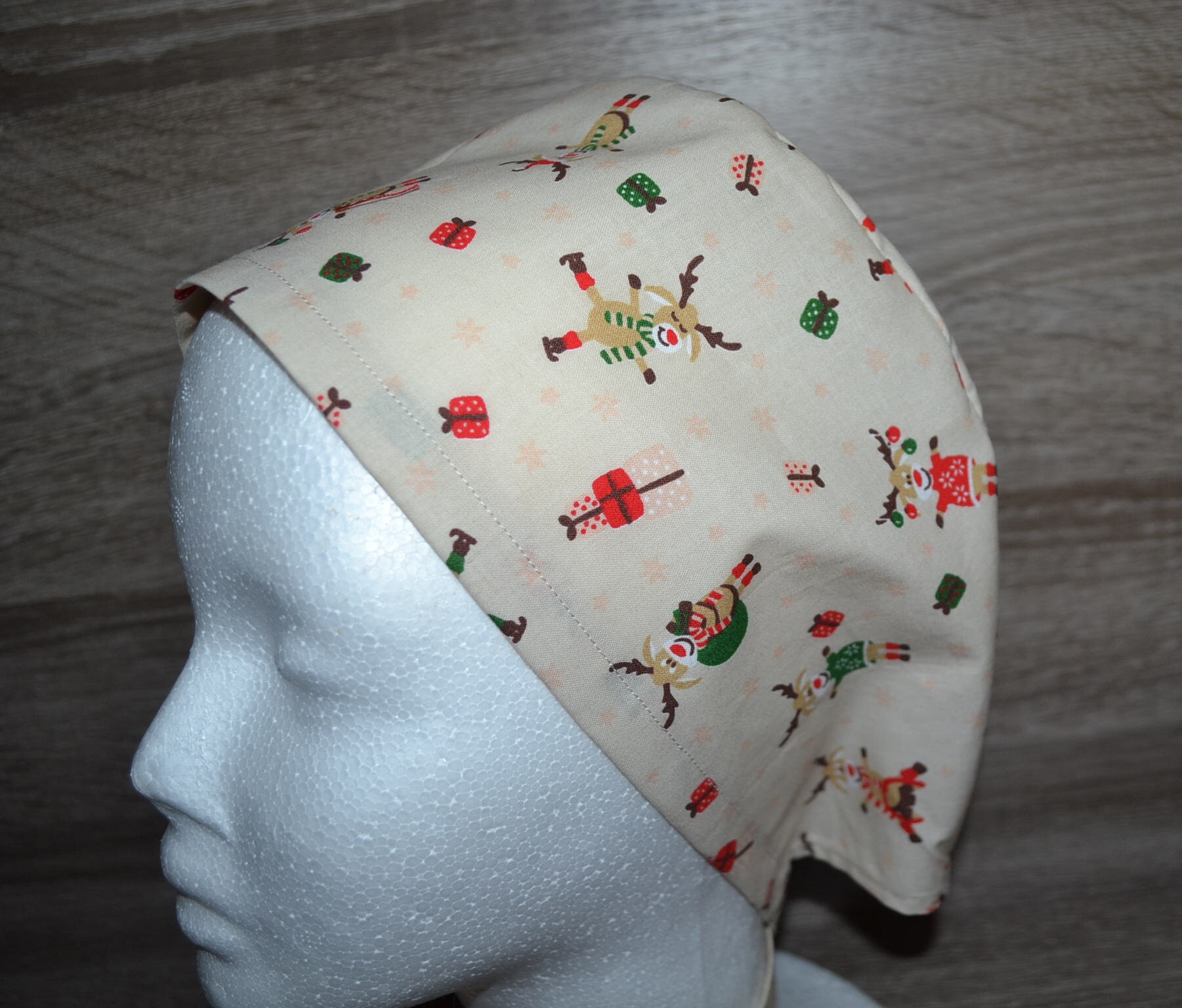 Surgical cap with moose design and terry cloth band, scrub cap, bandana, cosmetic cap, peeling cap, chef's hat, Christmas surgical caps, moose cap