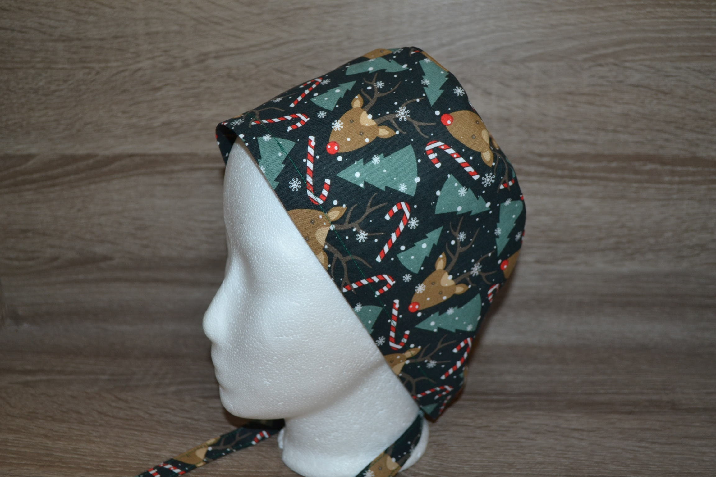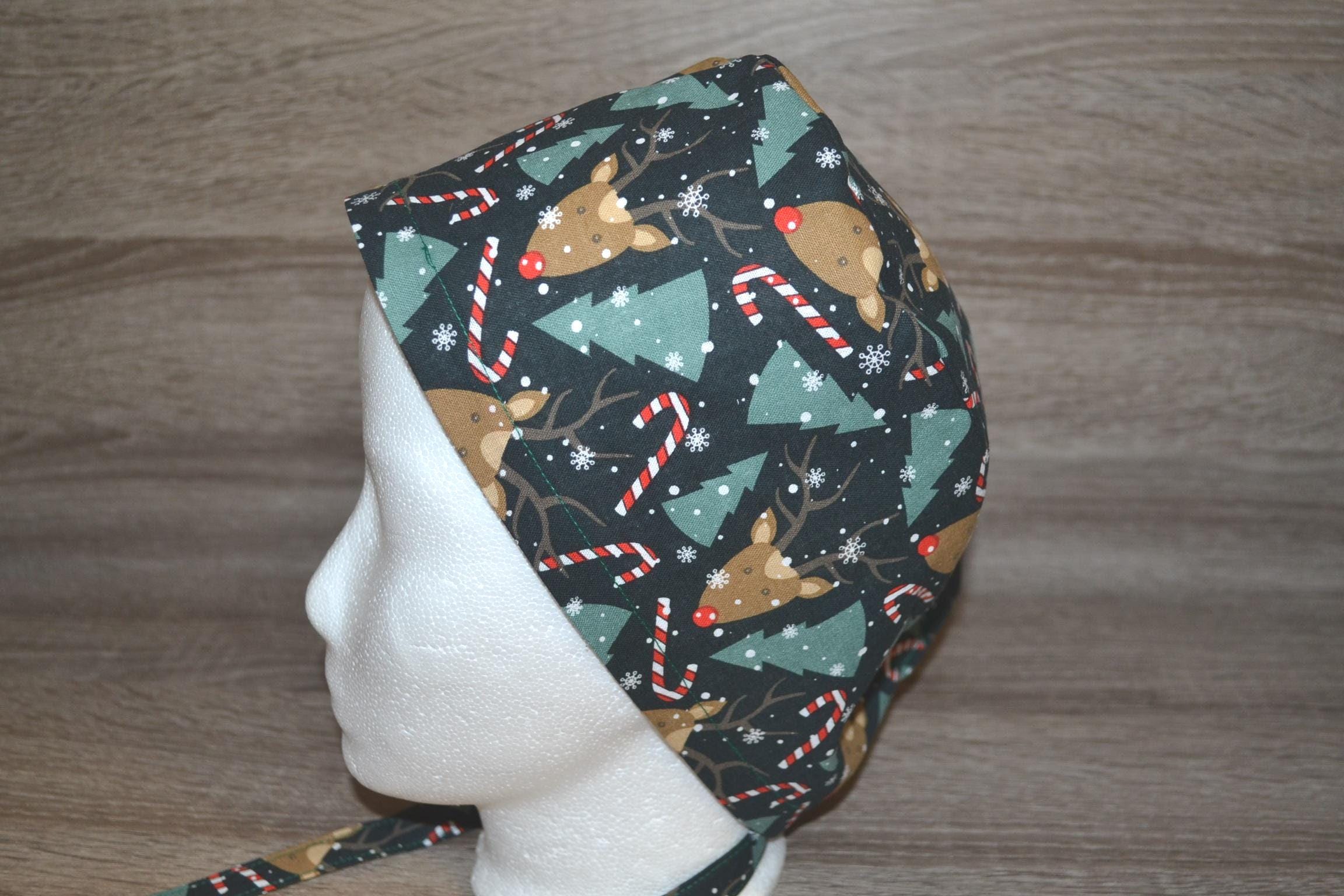 Surgical cap with moose design and terry cloth band, scrub cap, bandana, cosmetic cap, peeling cap, chef's hat, Christmas surgical caps, handmade