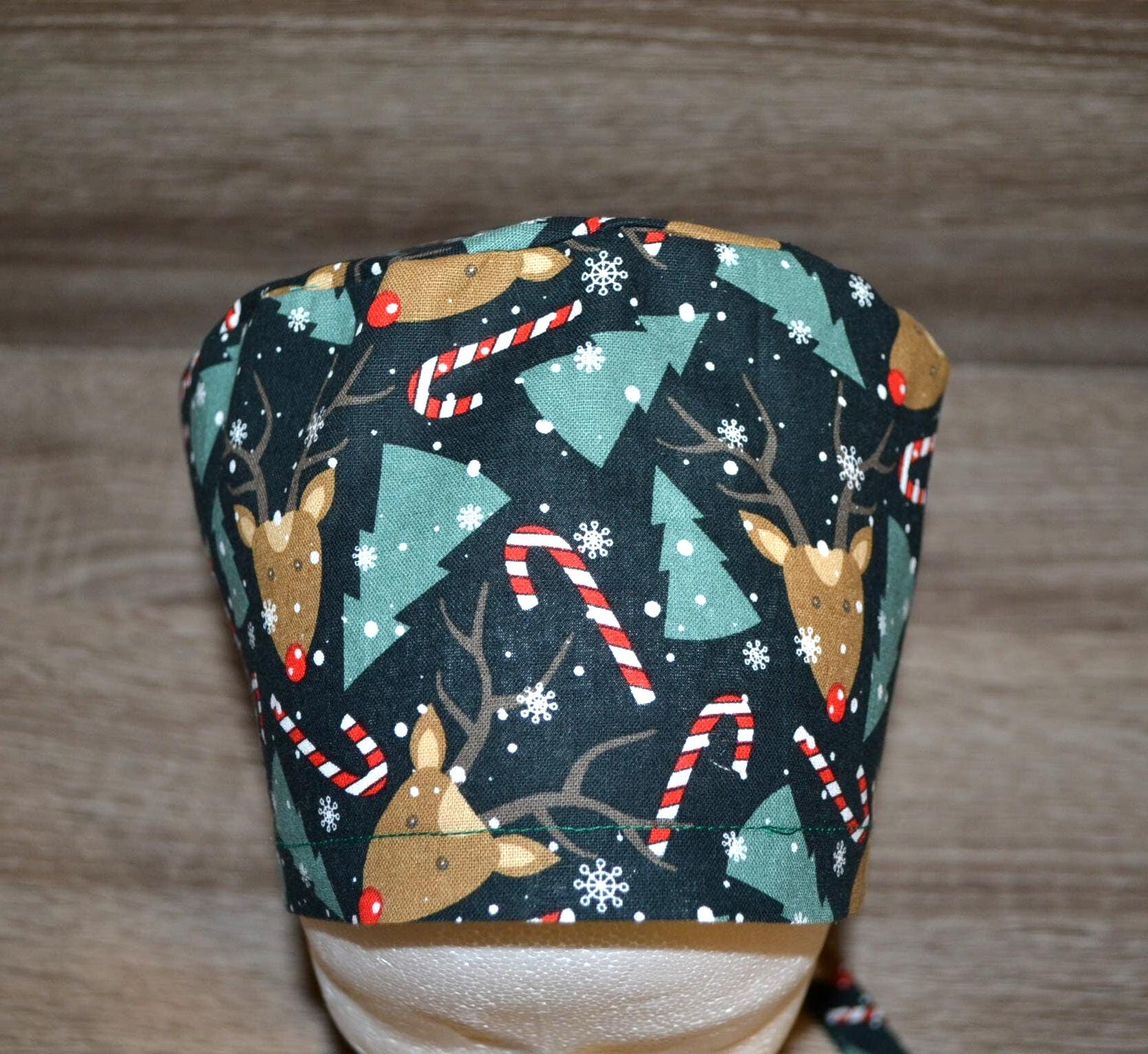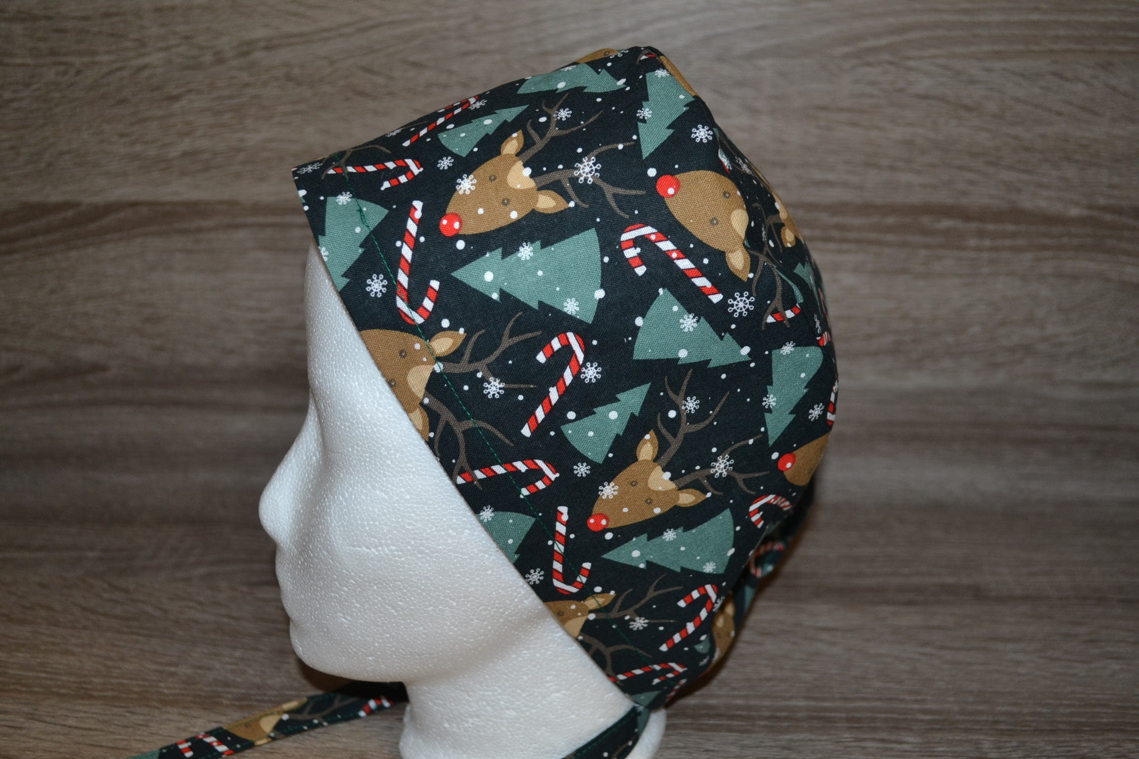 Surgical cap with moose design, scrub cap, bandana, cosmetic cap, peeling cap, chef's hat, green with moose/Christmas trees, Christmas surgical caps, moose cap