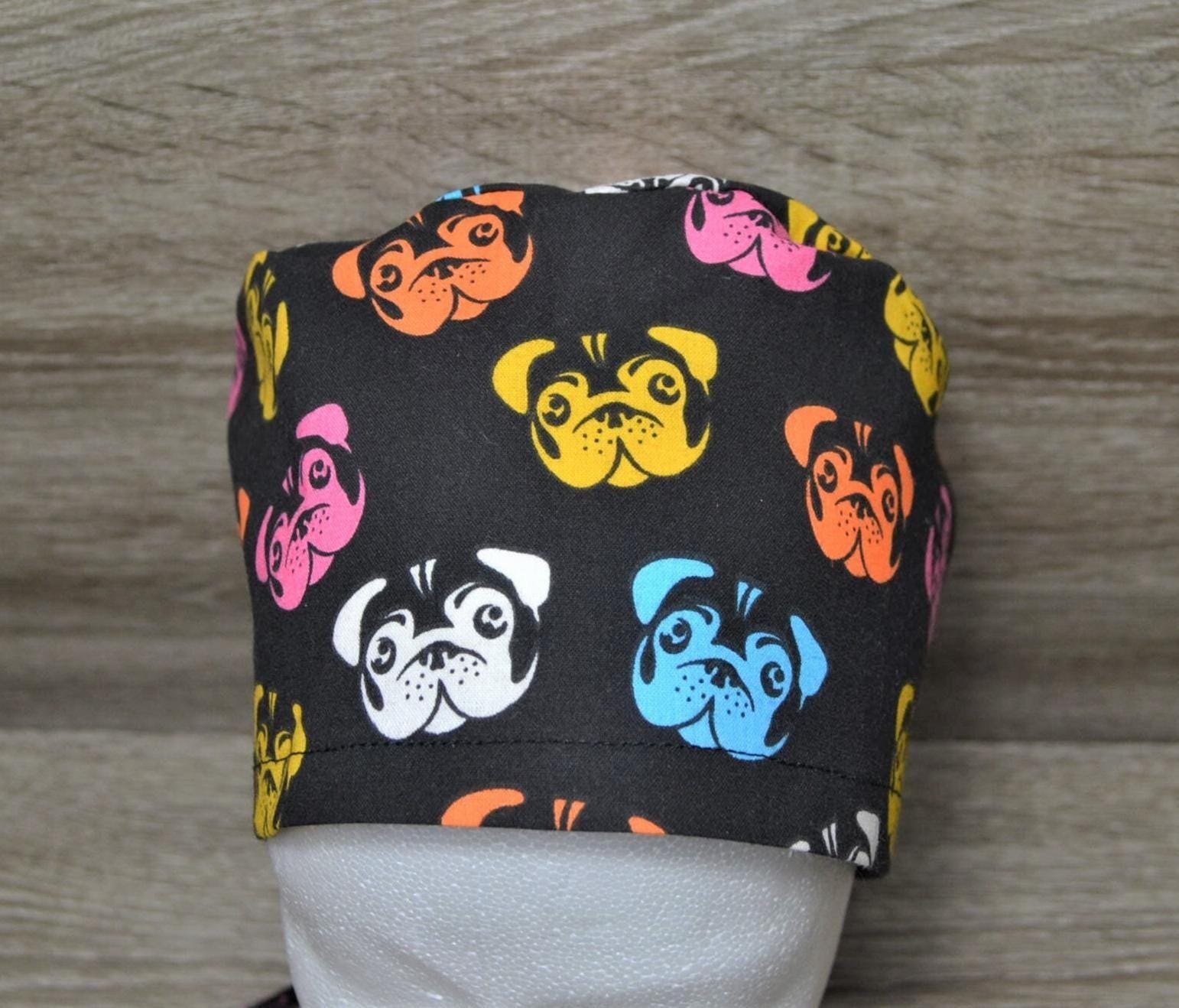 XL surgical cap for long hair dogs, XL scrub cap, bandana, cosmetic cap, cooking cap, peeling cap, black with colorful dogs, handmade
