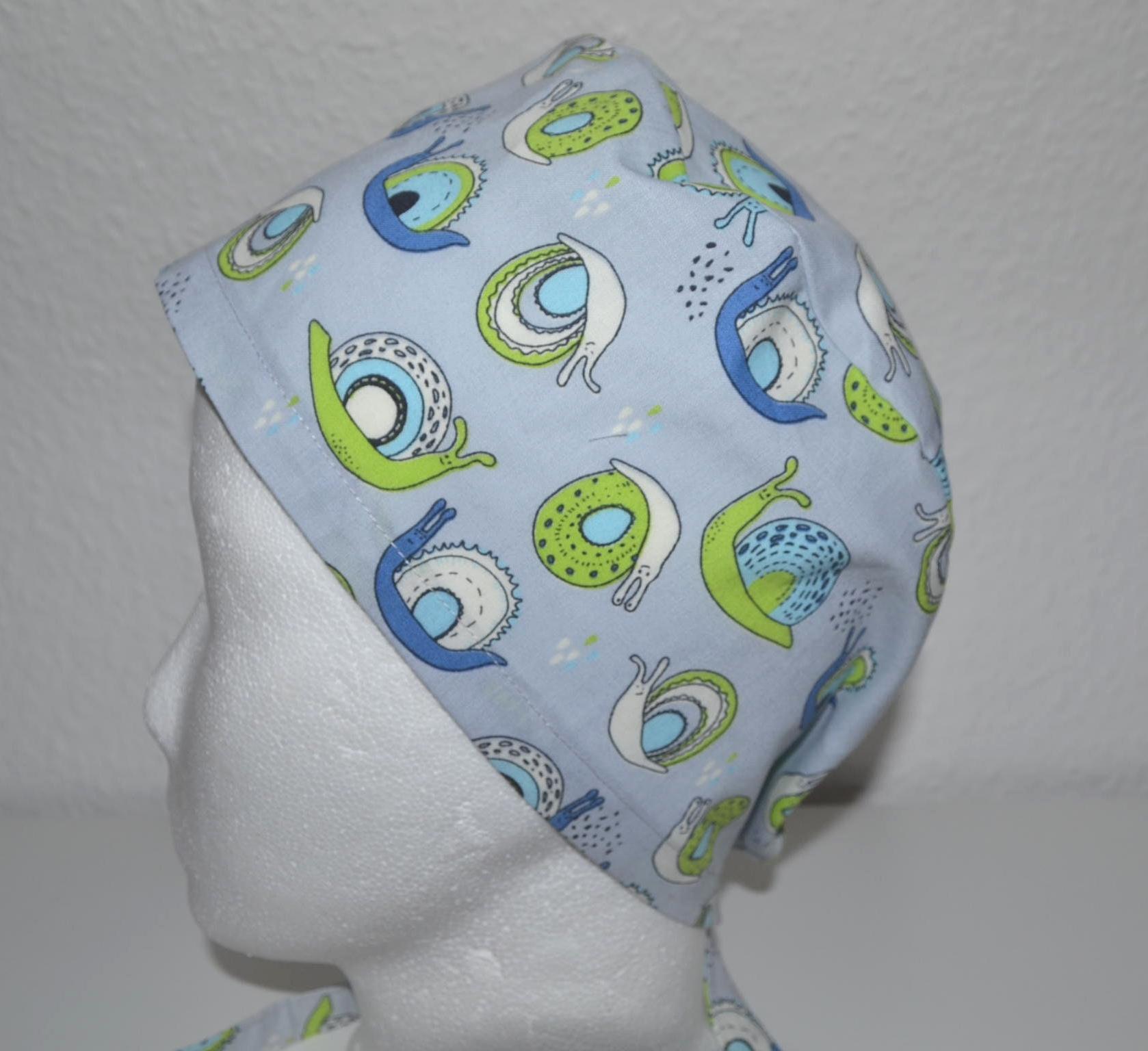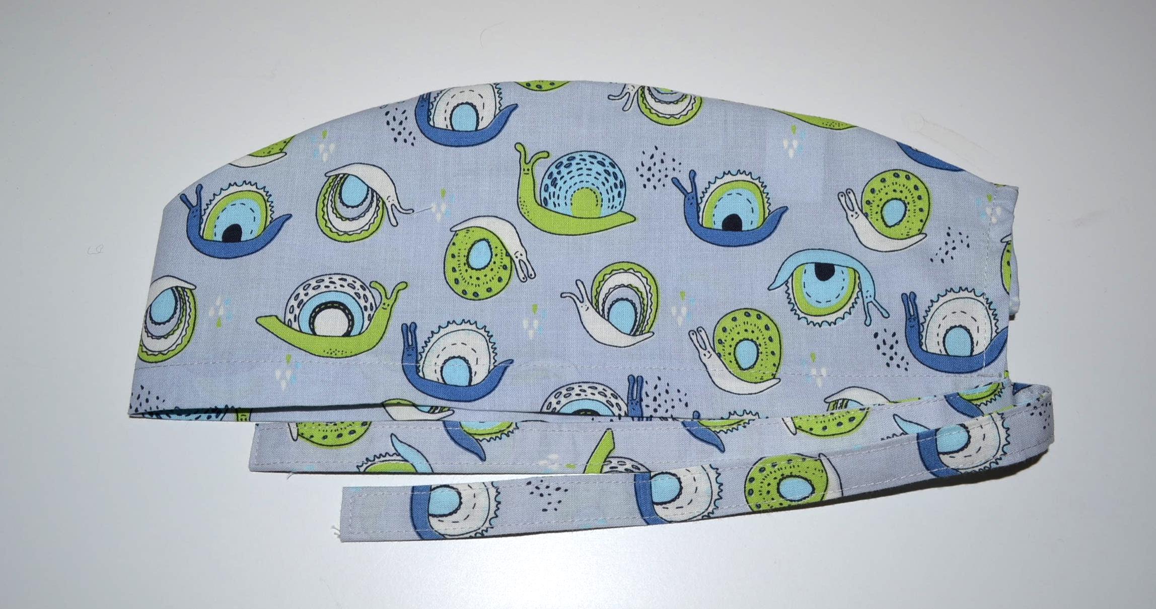 Snail surgical cap, scrub cap, bandana, cosmetic cap, chef's hat, peeling cap, surgical caps, light blue with snails, snail cap
