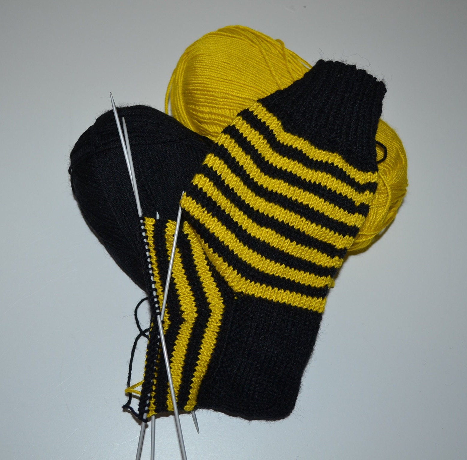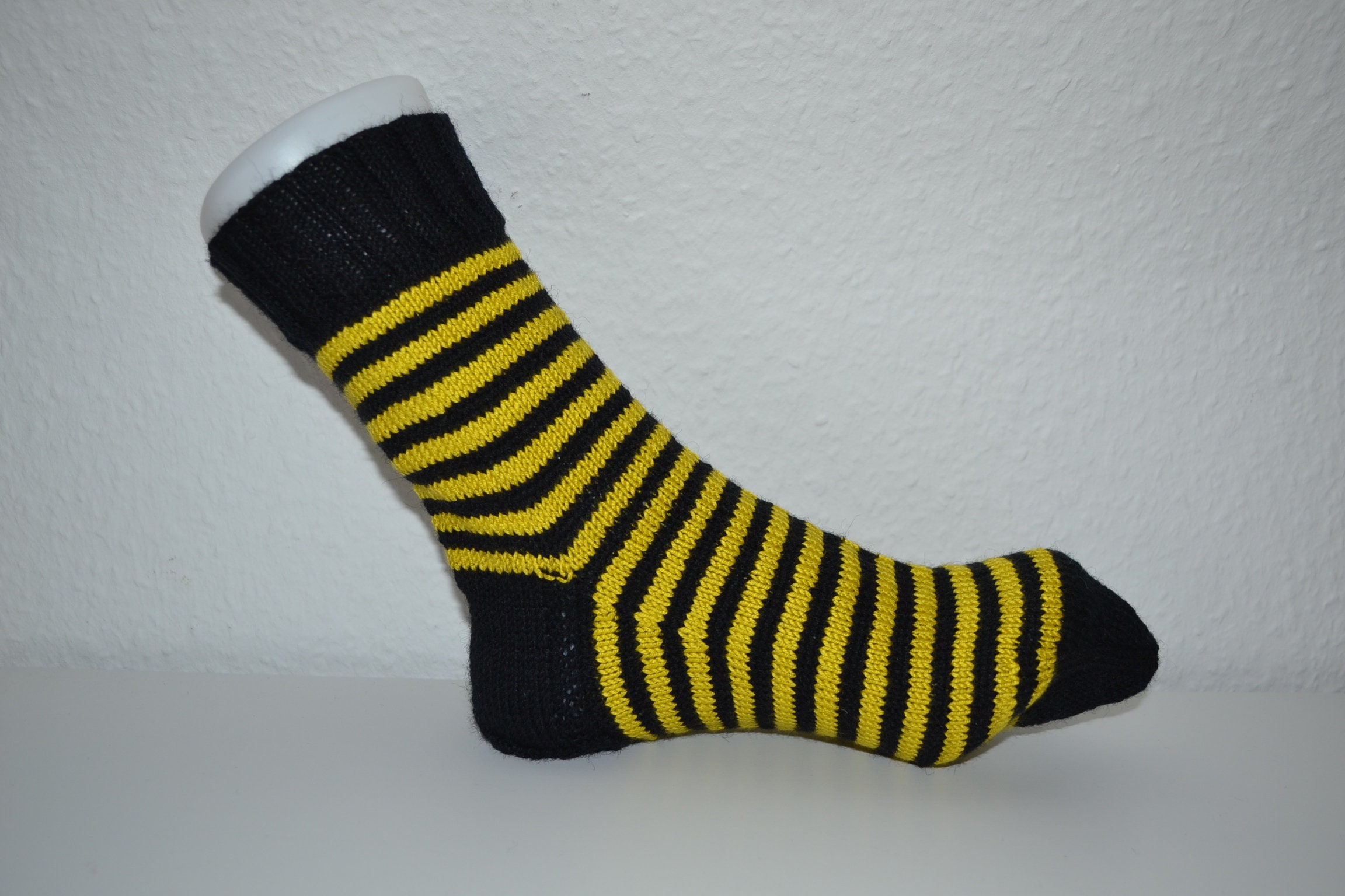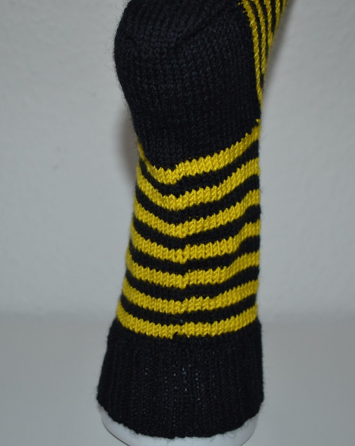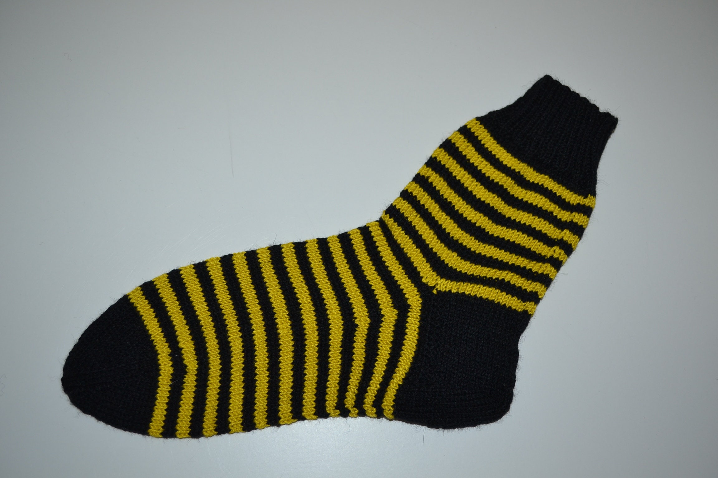 Here you will receive a pair of cozy, soft, hand-knitted striped socks in a bee design. A wonderful gift for a birthday or Christmas. But having warm feet yourself is also a true pleasure.