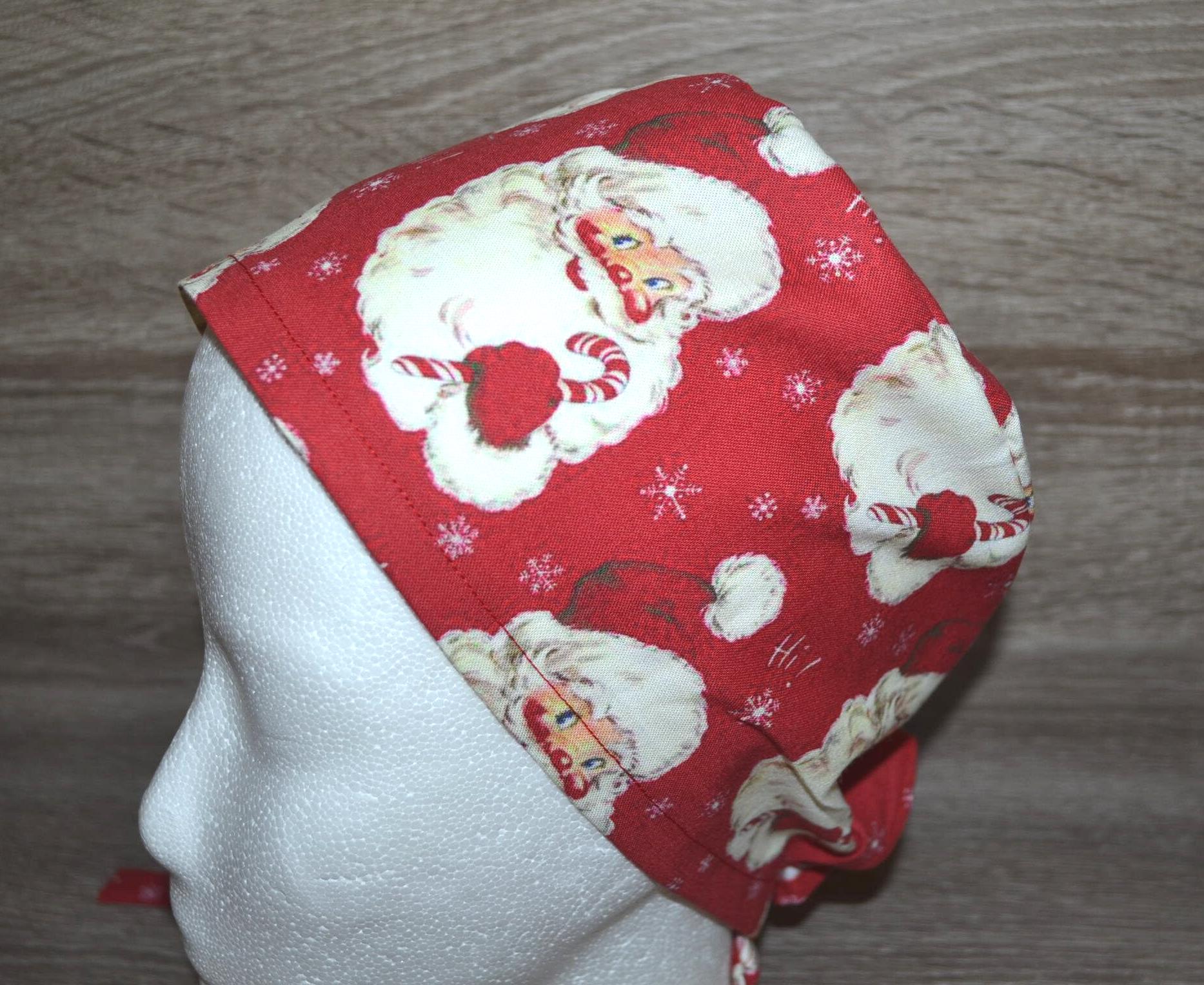 Santa Claus surgical cap, terry cloth, scrub cap, bandana, cosmetic cap, chef's hat, red with Santa Claus, Christmas surgical caps, Santa Claus cap