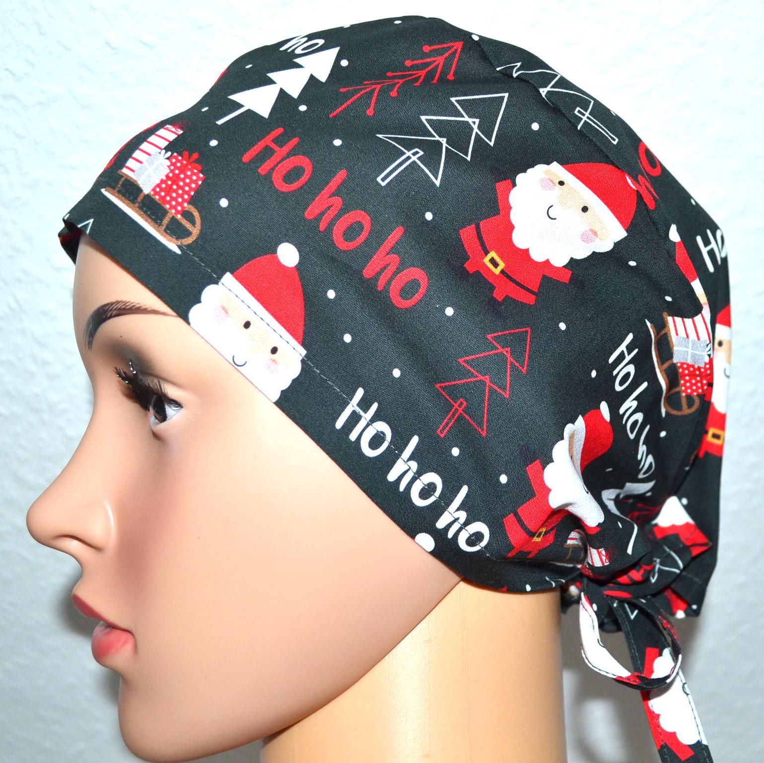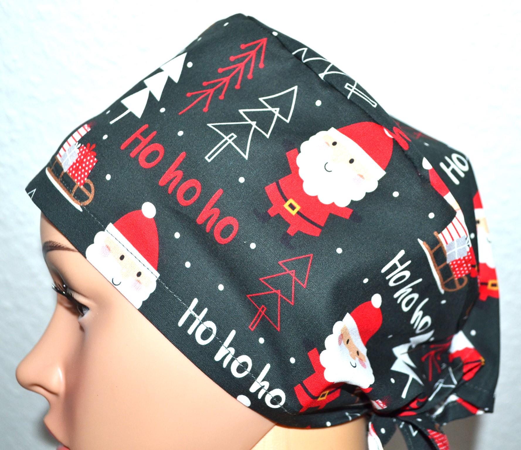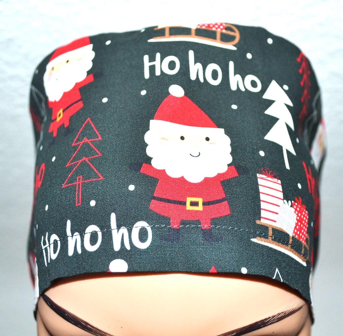 Surgical cap Santa Claus terry cloth, scrub cap, bandana, cosmetic cap, chef's hat, dark green with Santa Claus, Christmas surgical caps