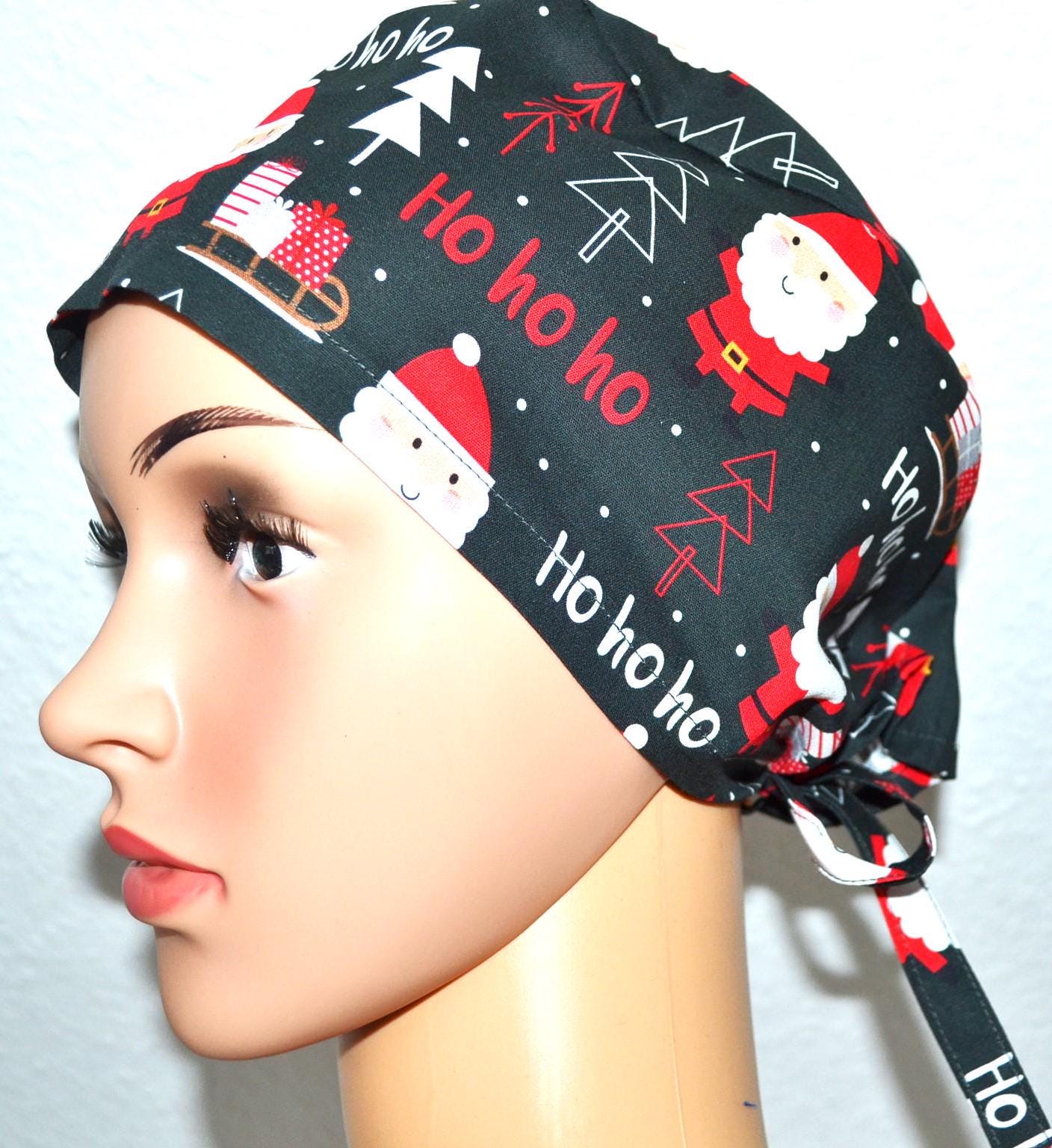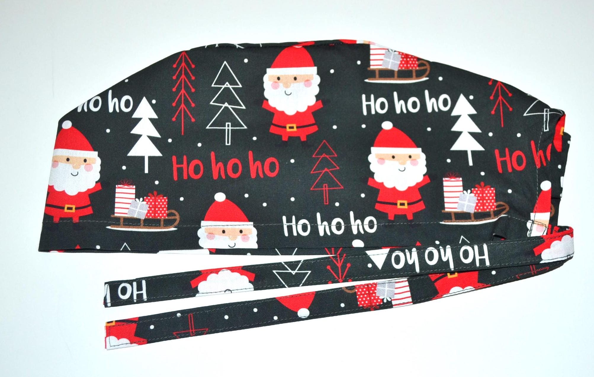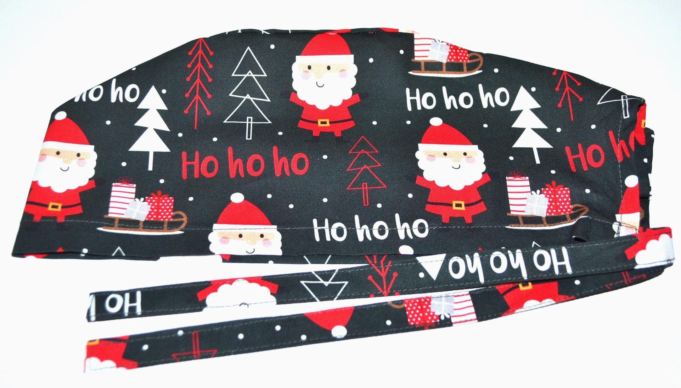 Surgical cap Santa Claus terry cloth, scrub cap, bandana, cosmetic cap, chef's hat, dark green with Santa Claus, Christmas surgical caps