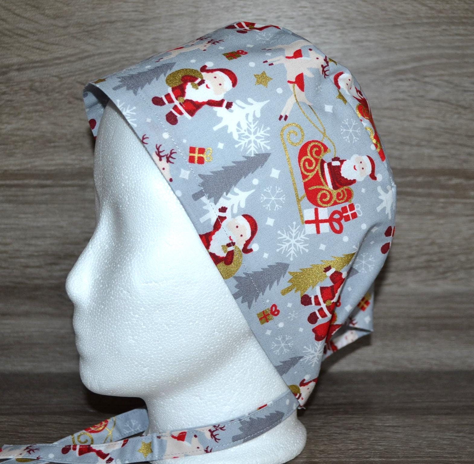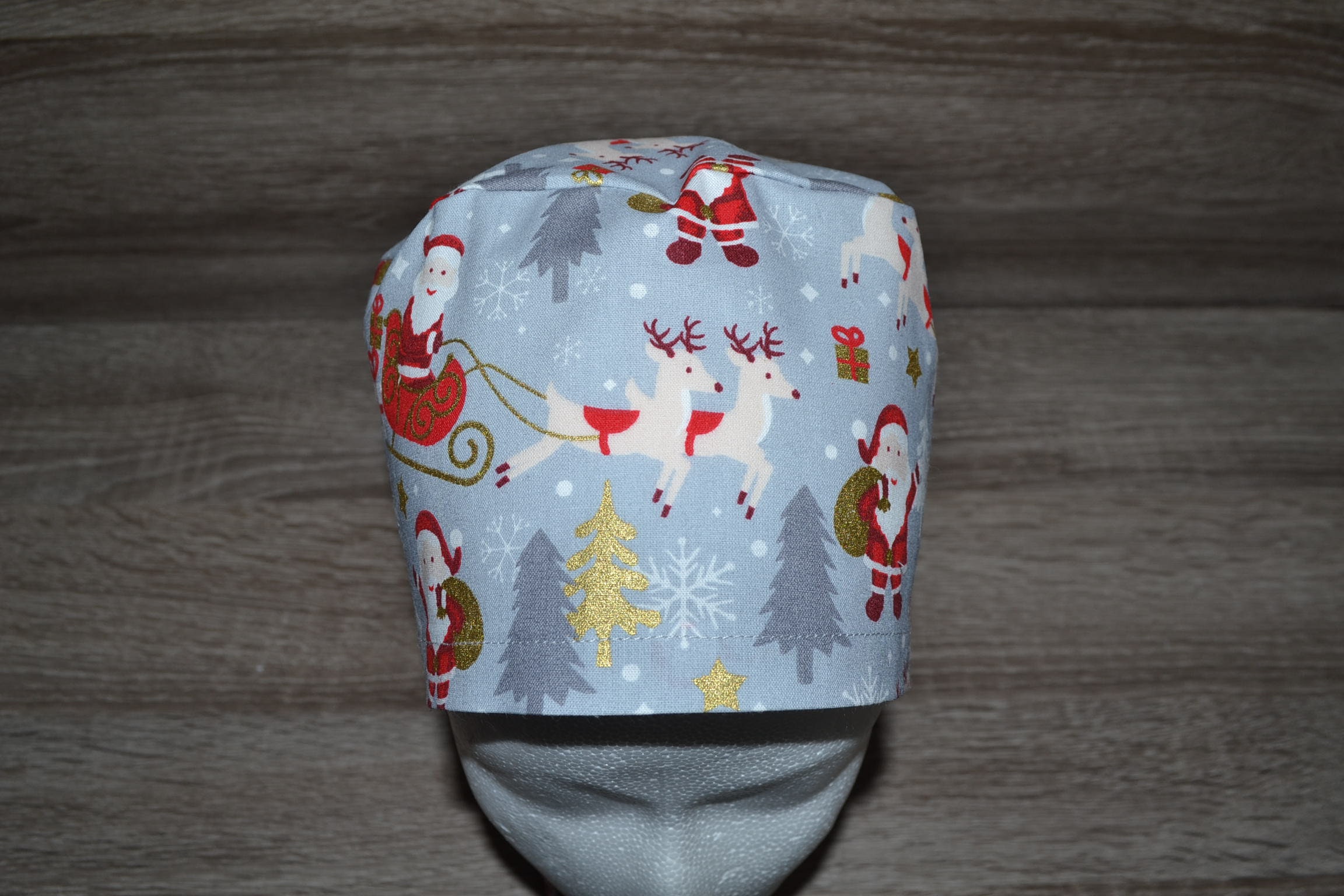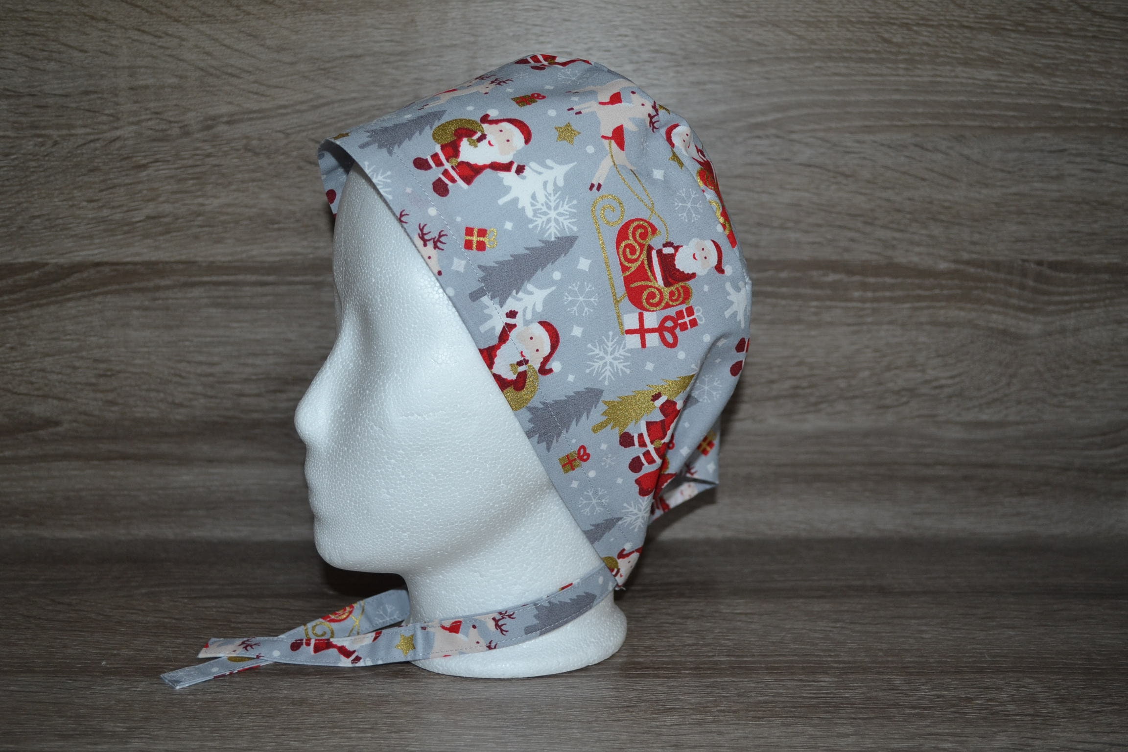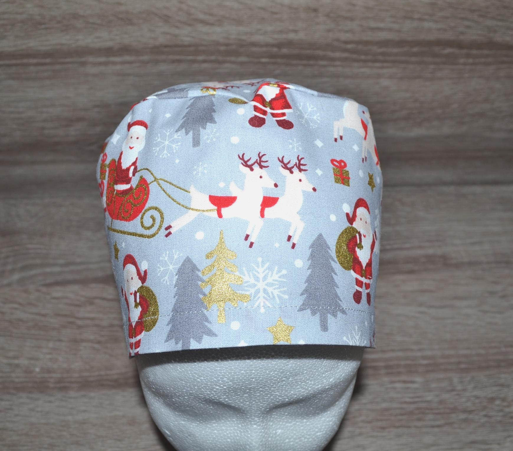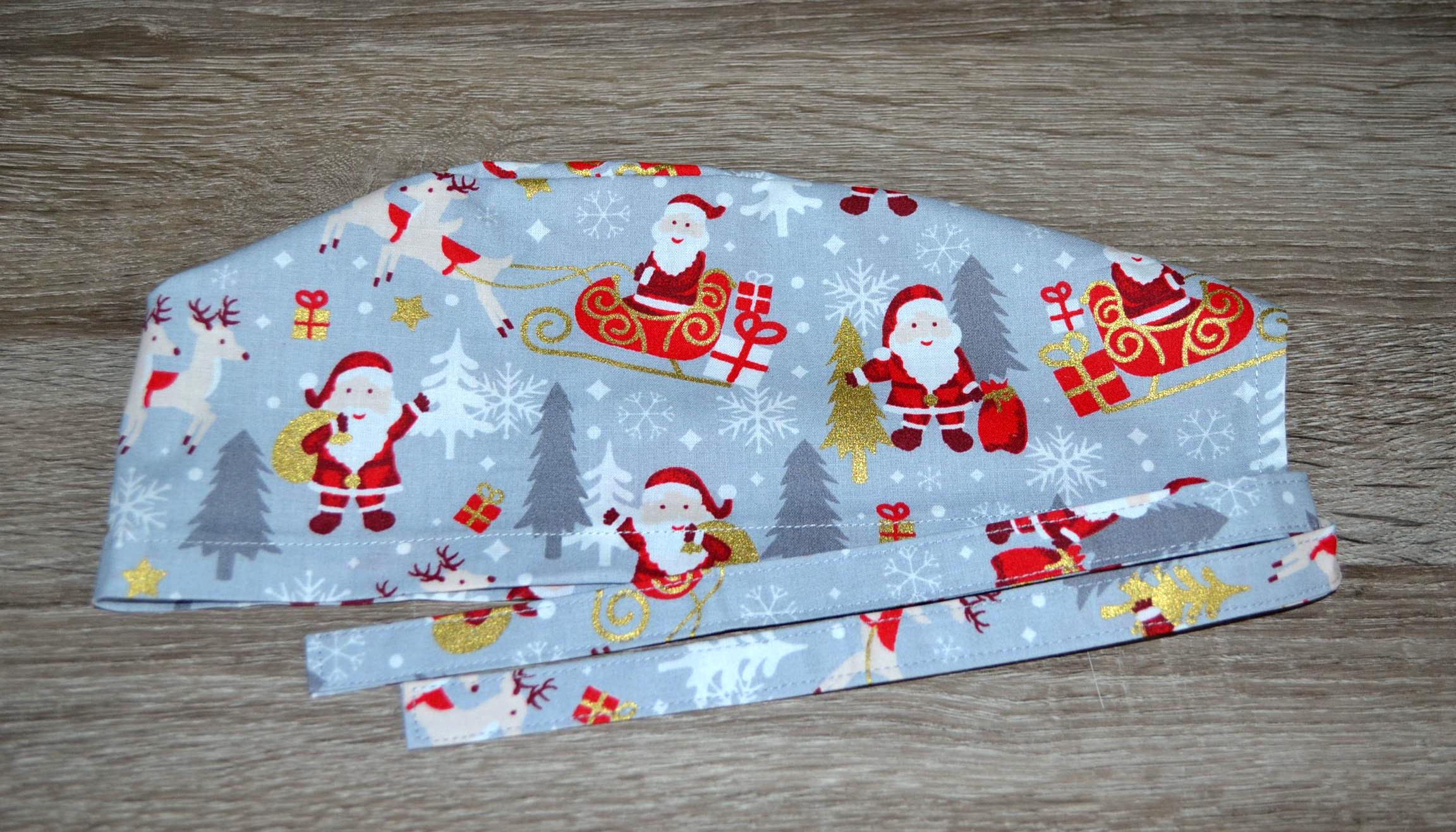 Santa Claus surgical cap with terry cloth band, scrub cap, bandana, cosmetic cap, peeling cap, grey with Santa Claus, chef's hat, Santa Claus surgical cap