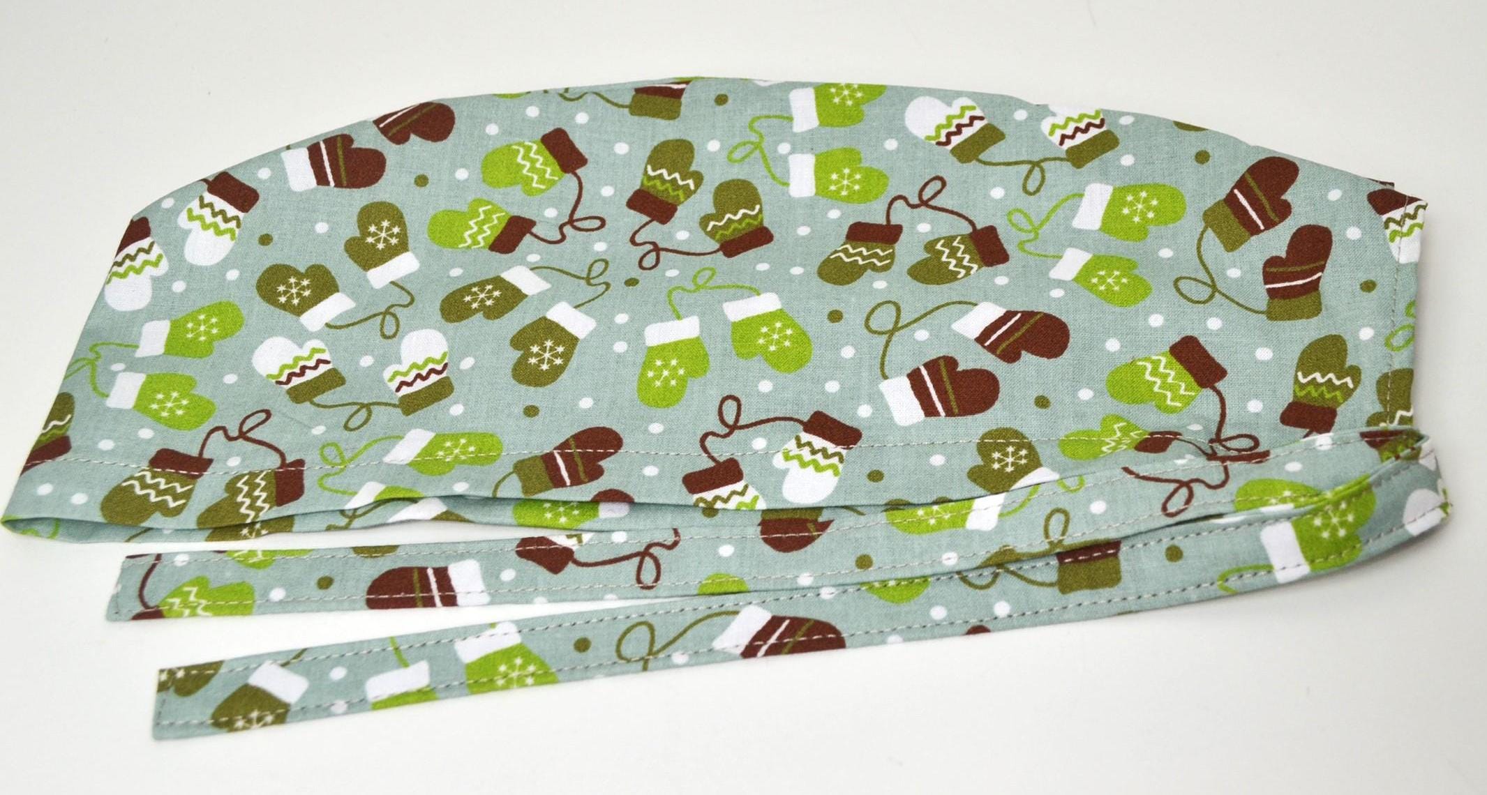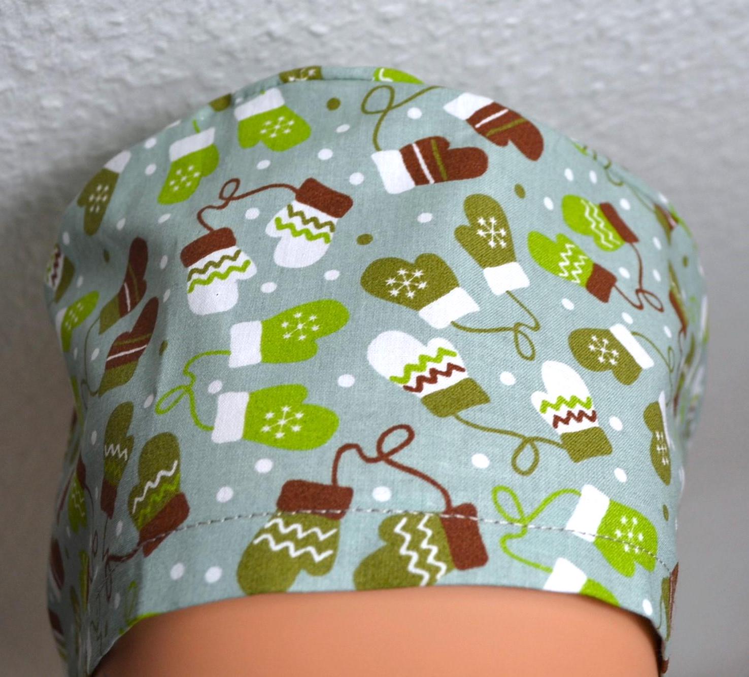 Surgical cap with gloves, terry cloth band, scrub cap, bandana, cosmetic cap, chef's hat, light green with gloves, Christmas surgical caps