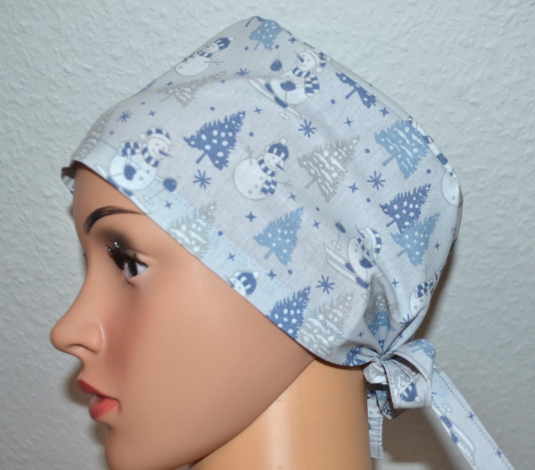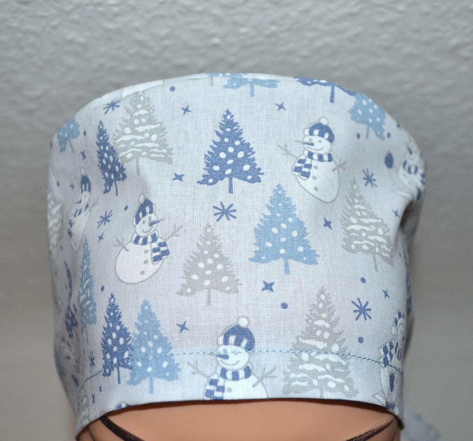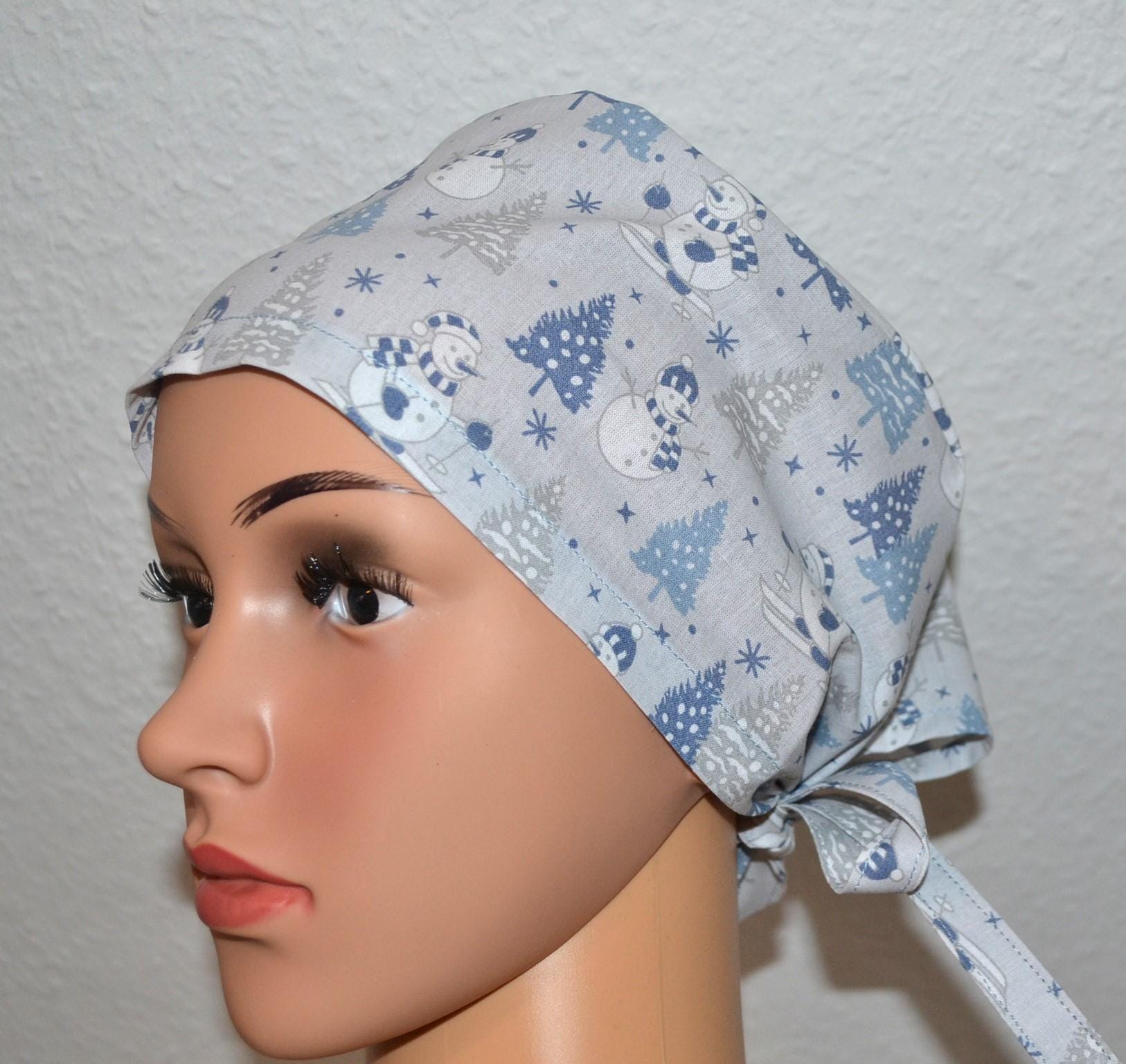 Surgical cap with snowman design, scrub cap, bandana, cosmetic cap, chef's hat, light blue with Christmas tree/snowman, Christmas surgical caps, winter forest