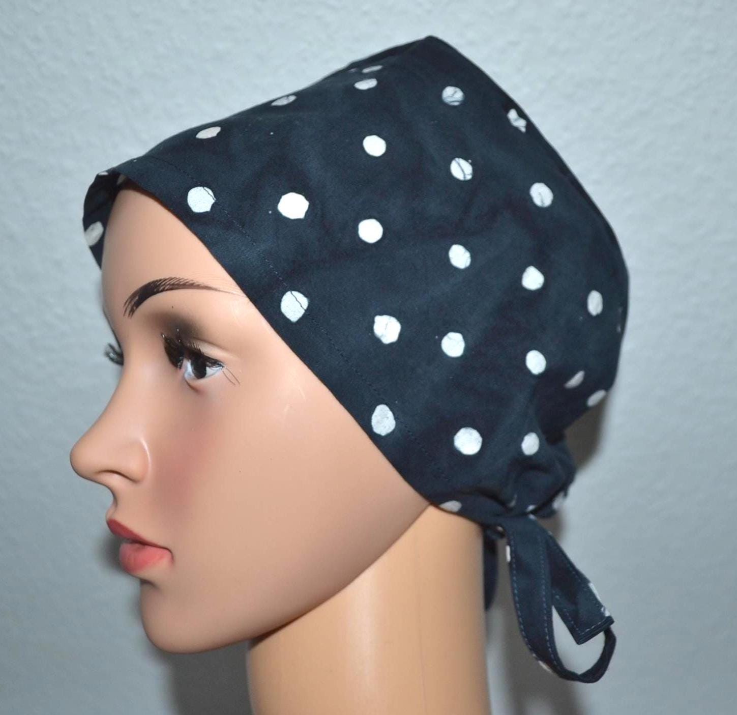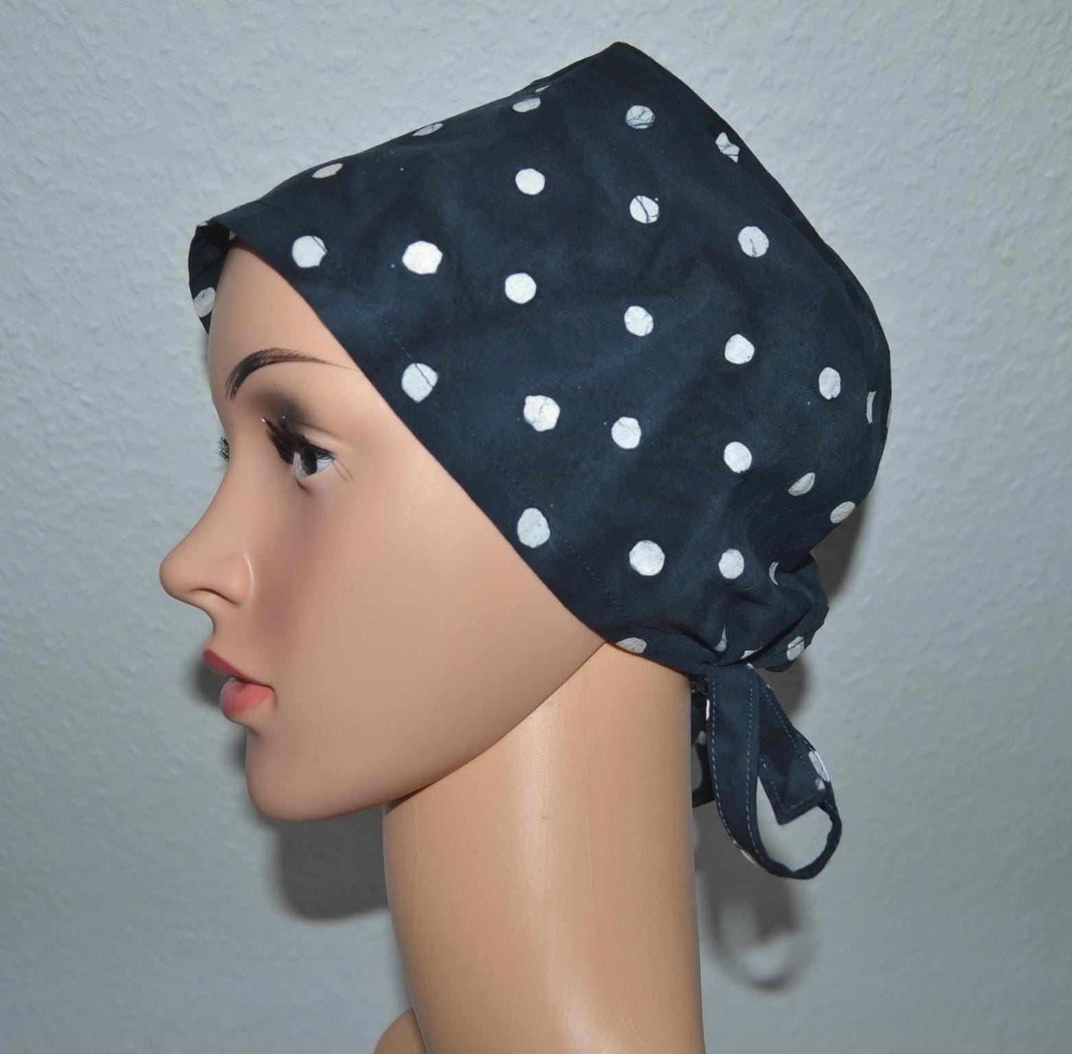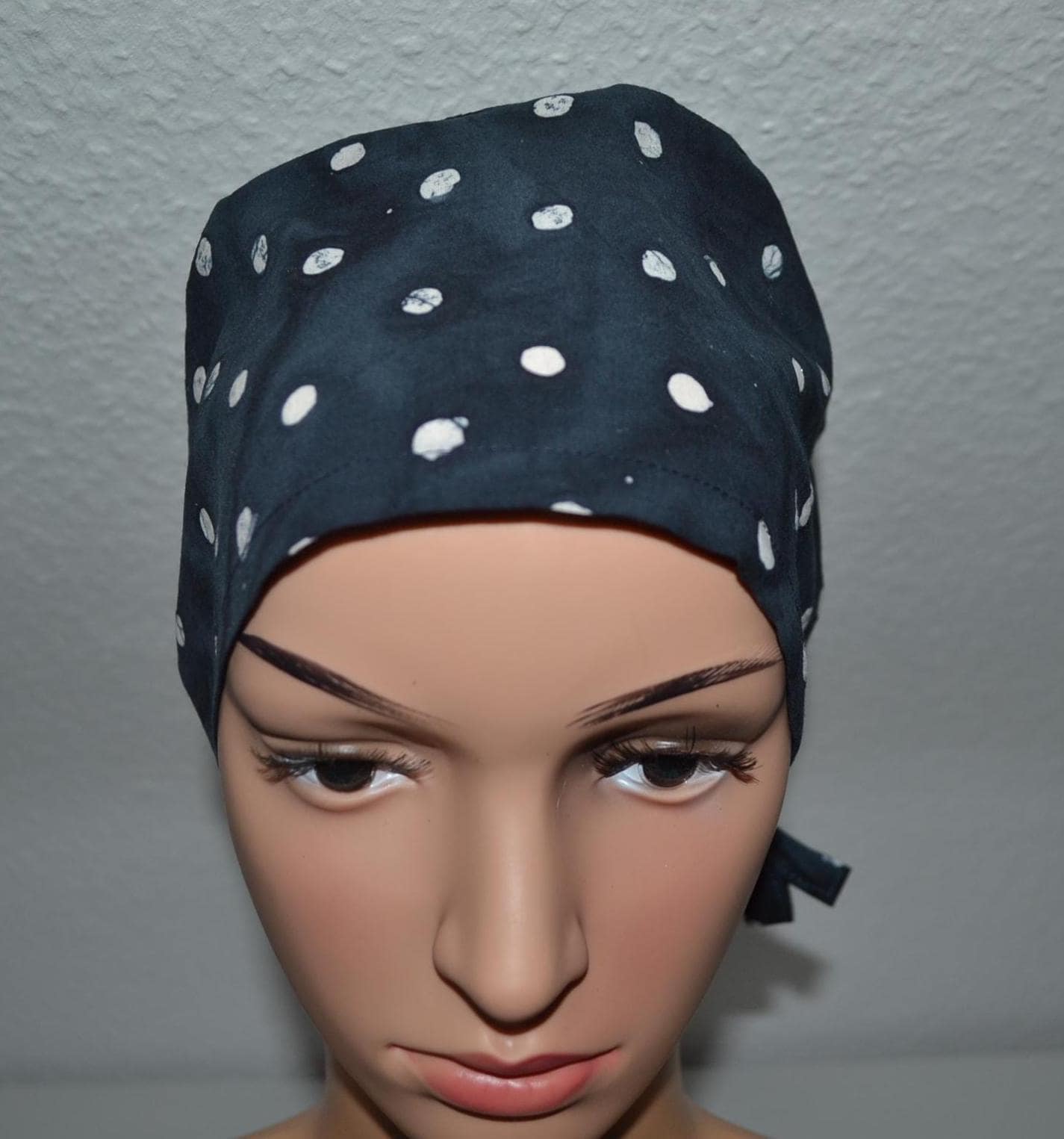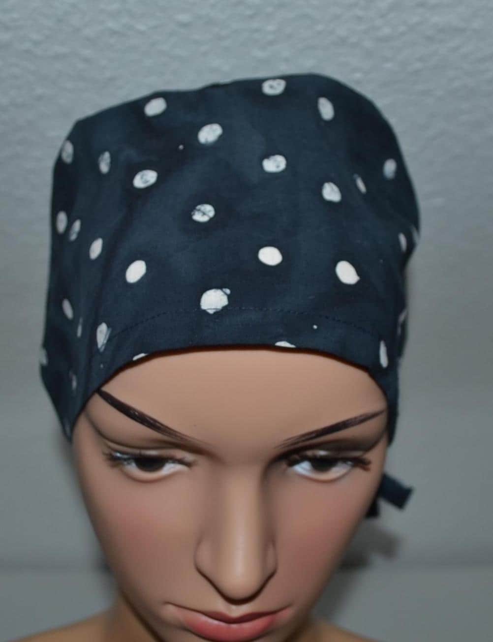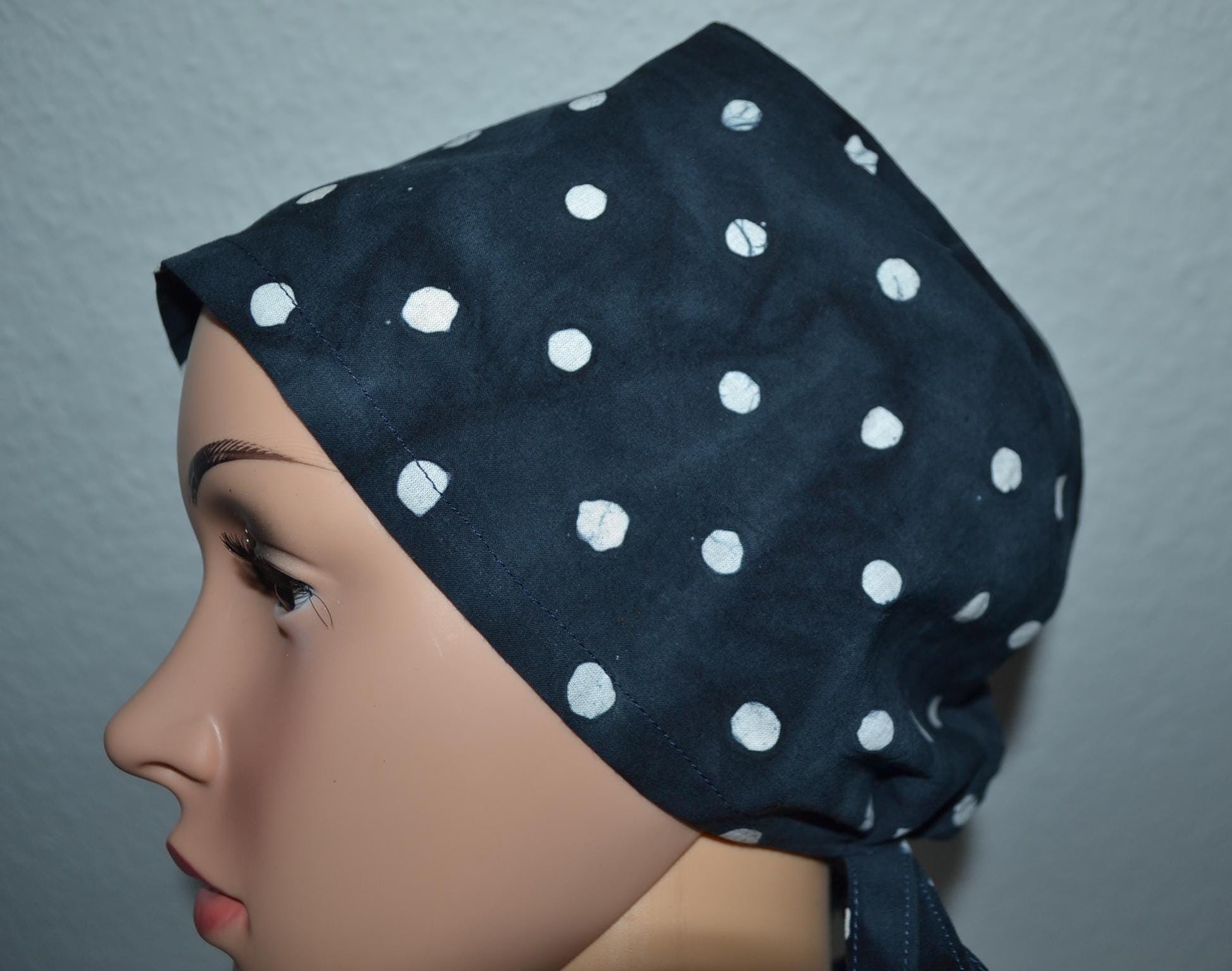 Surgical cap with polka dots, batik, scrub cap, bandana, exfoliating cap, chef's cap, cosmetic cap, surgical caps in navy blue with polka dots, batik cap