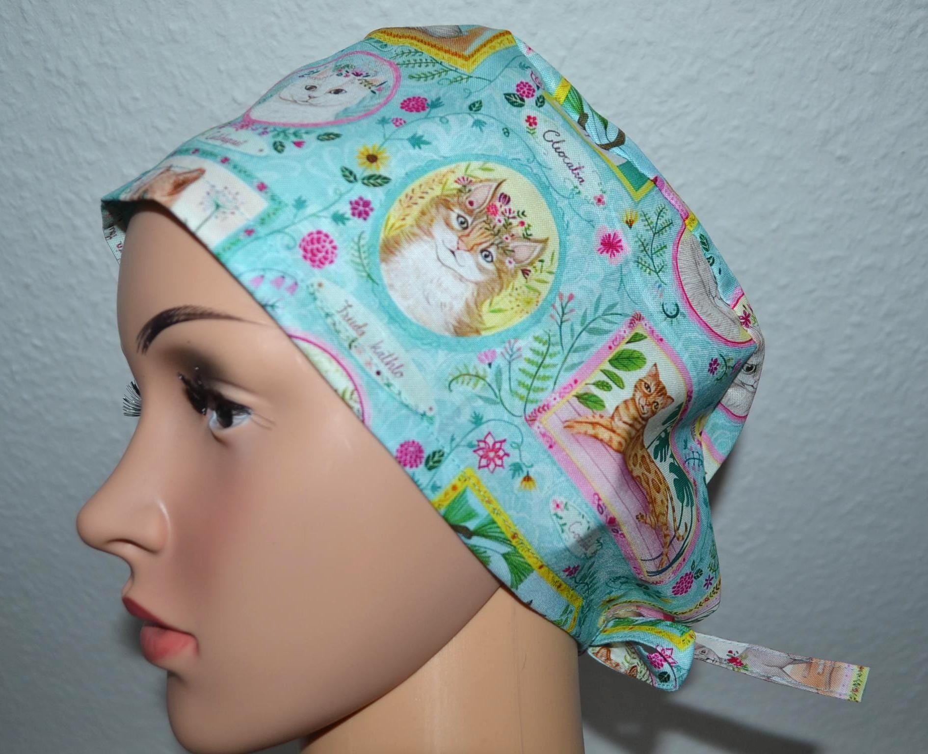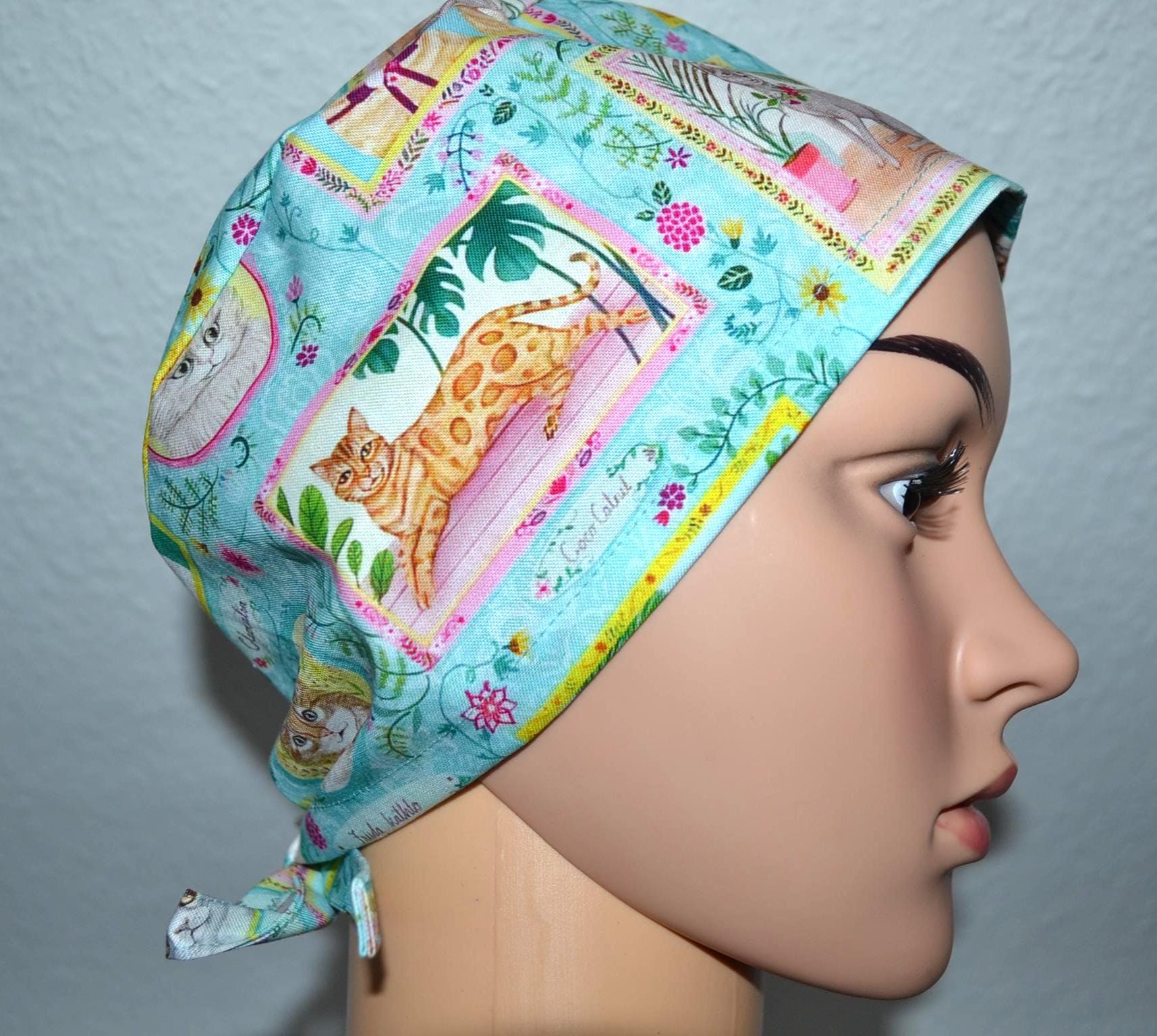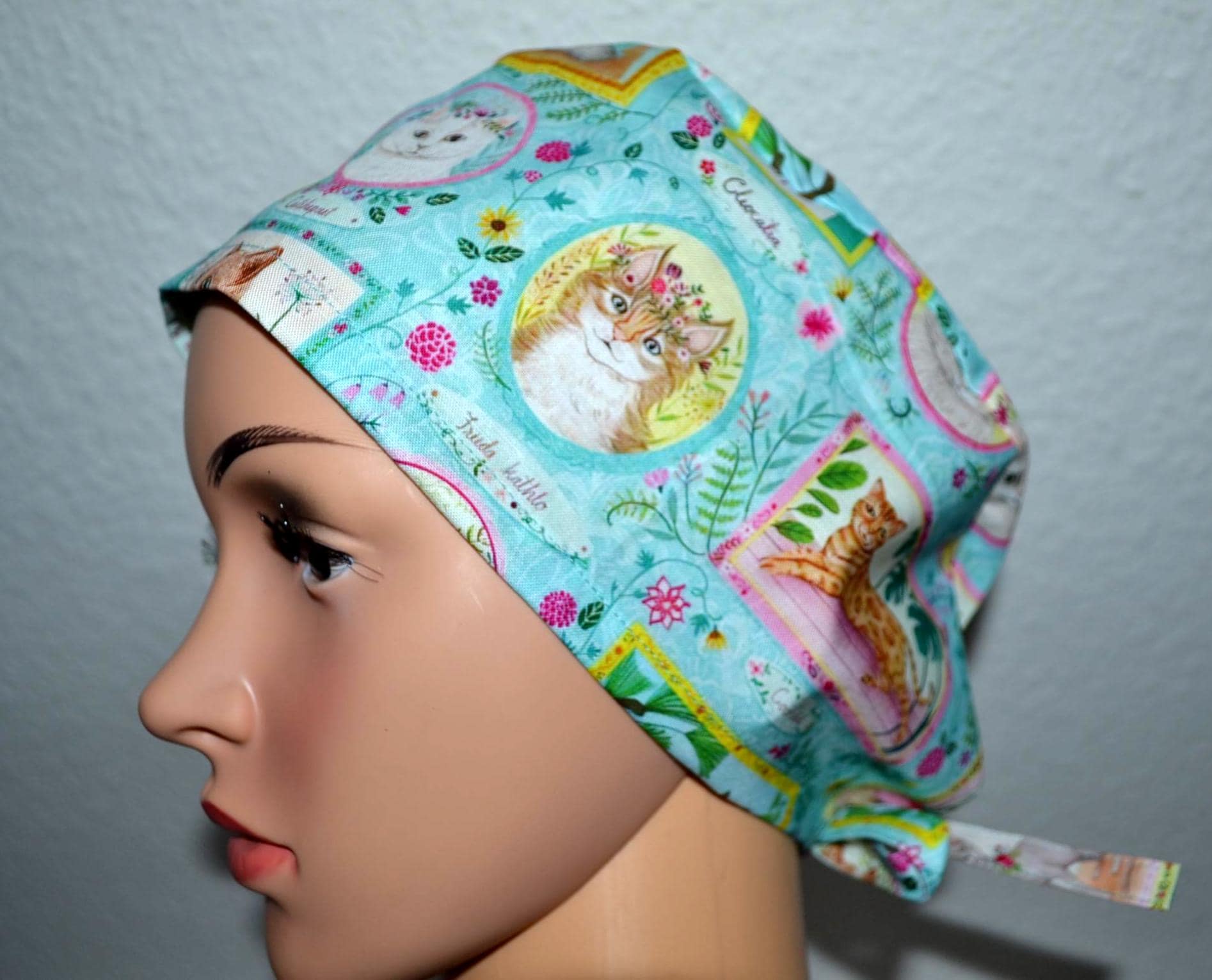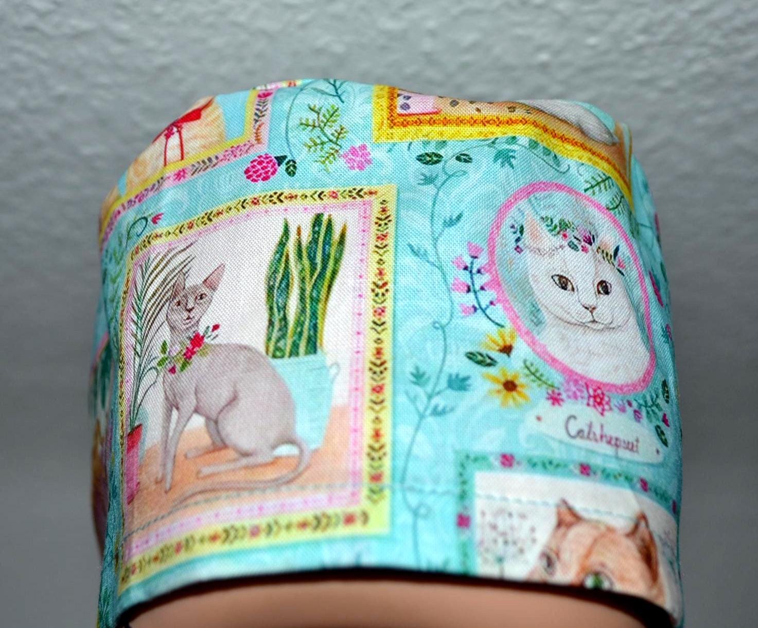 Surgical cap for cats with terry cloth band, scrub cap, bandana, cosmetic cap, chef's cap, exfoliating cap, surgical cap with sweatband, turquoise surgical cap for cats, cap