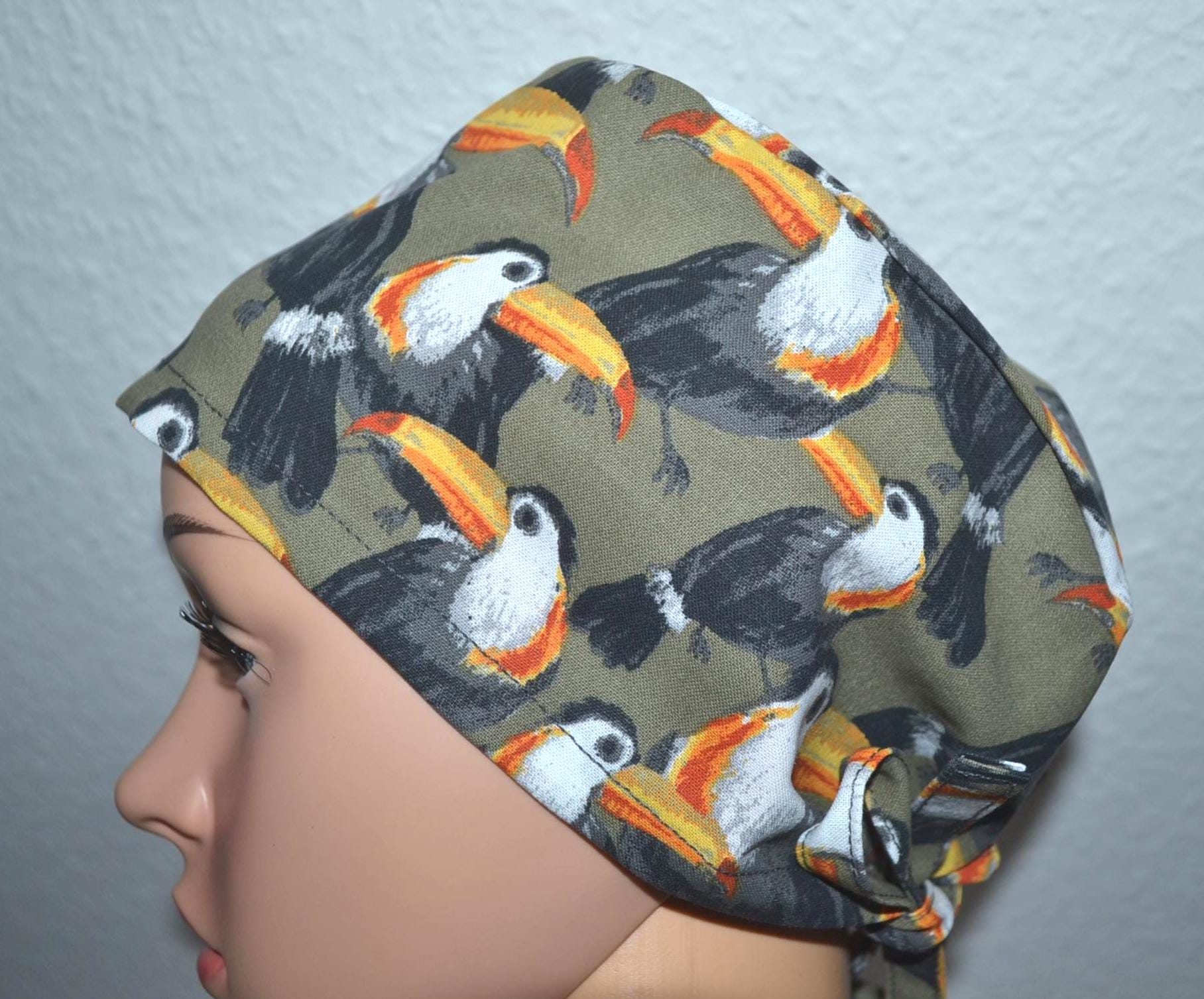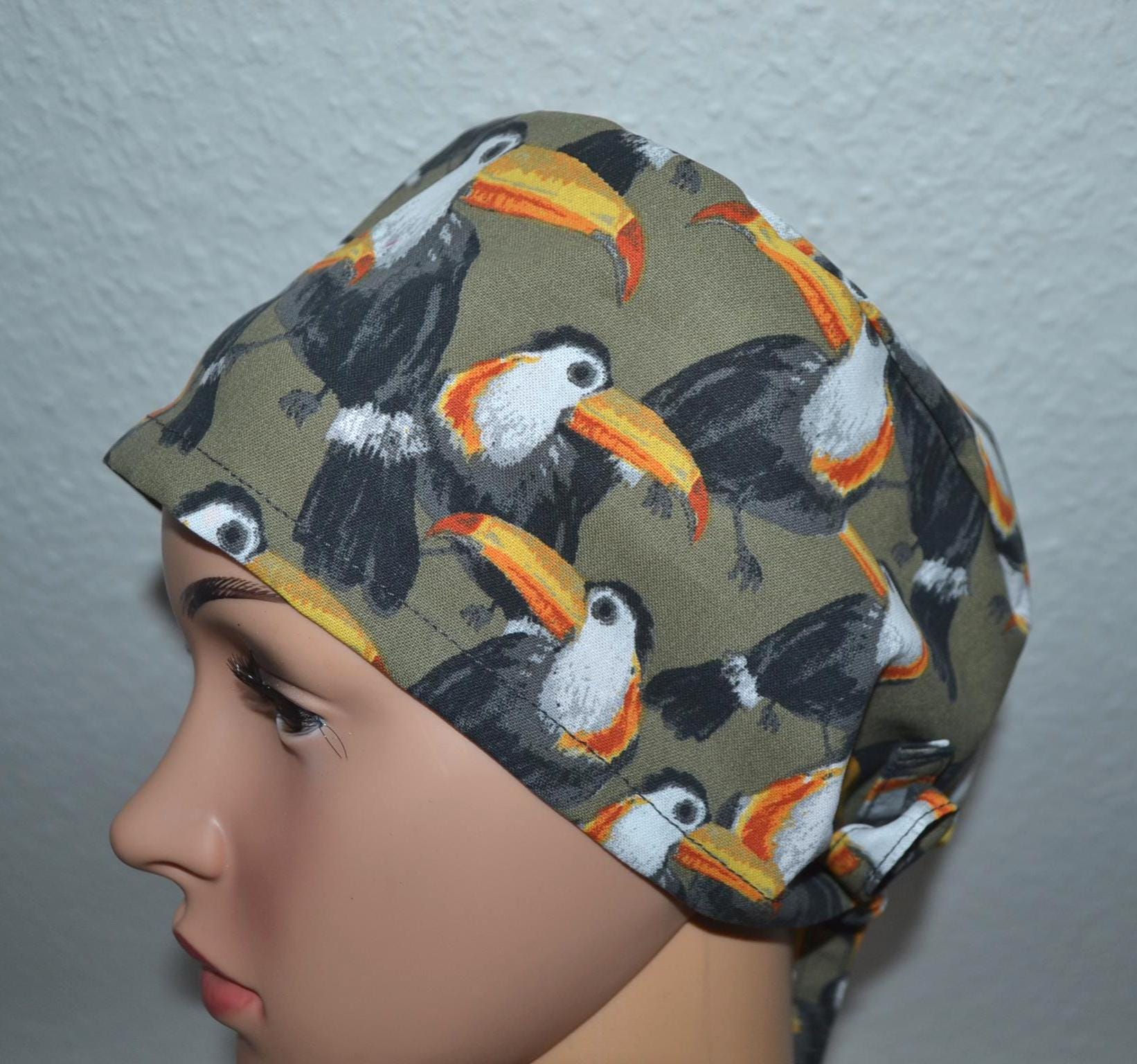 Surgical cap toucan, scrub cap, bandana, cosmetic cap, chef's hat, peeling cap, surgical cap, bird cap, olive green surgical cap with birds