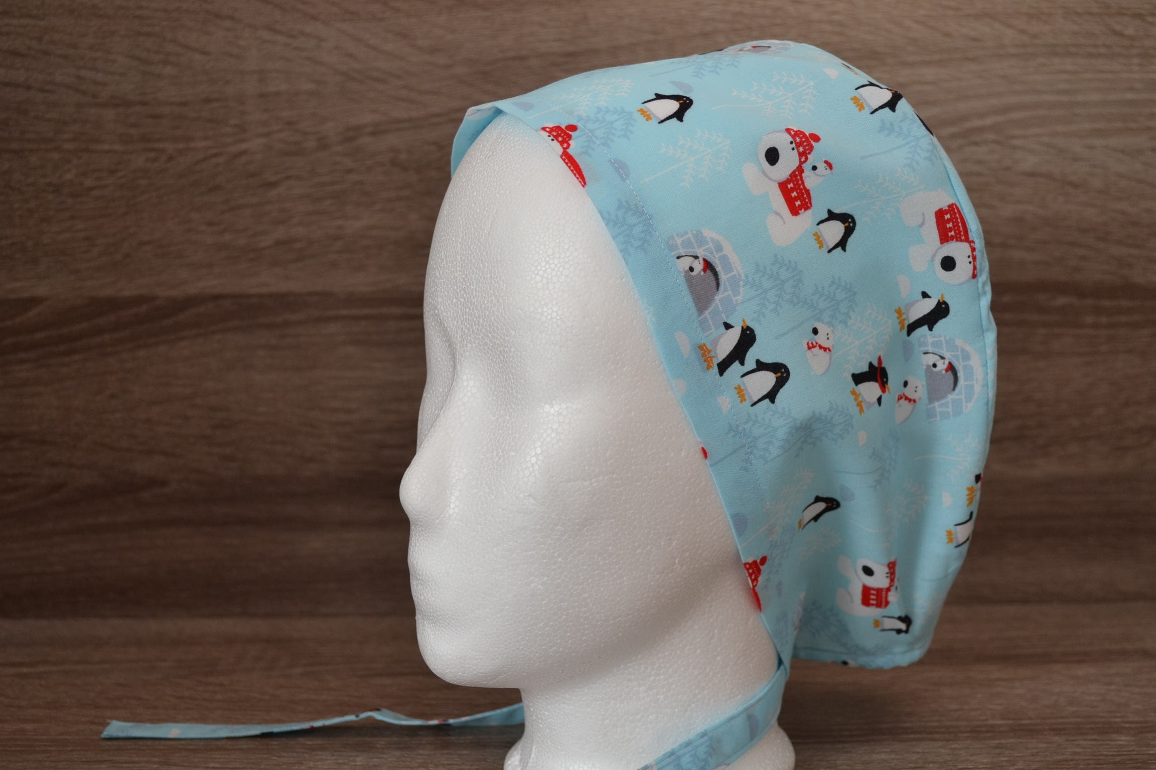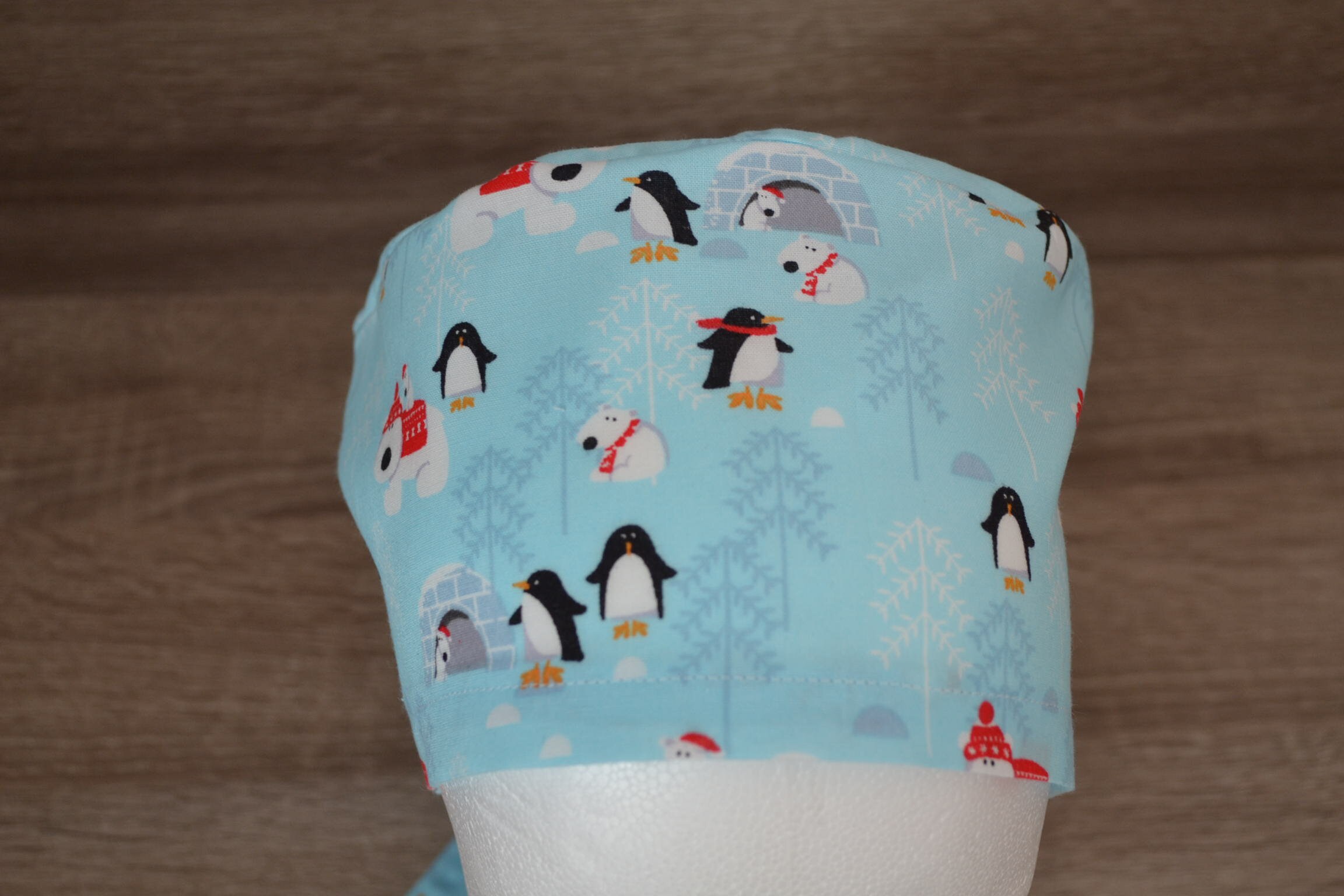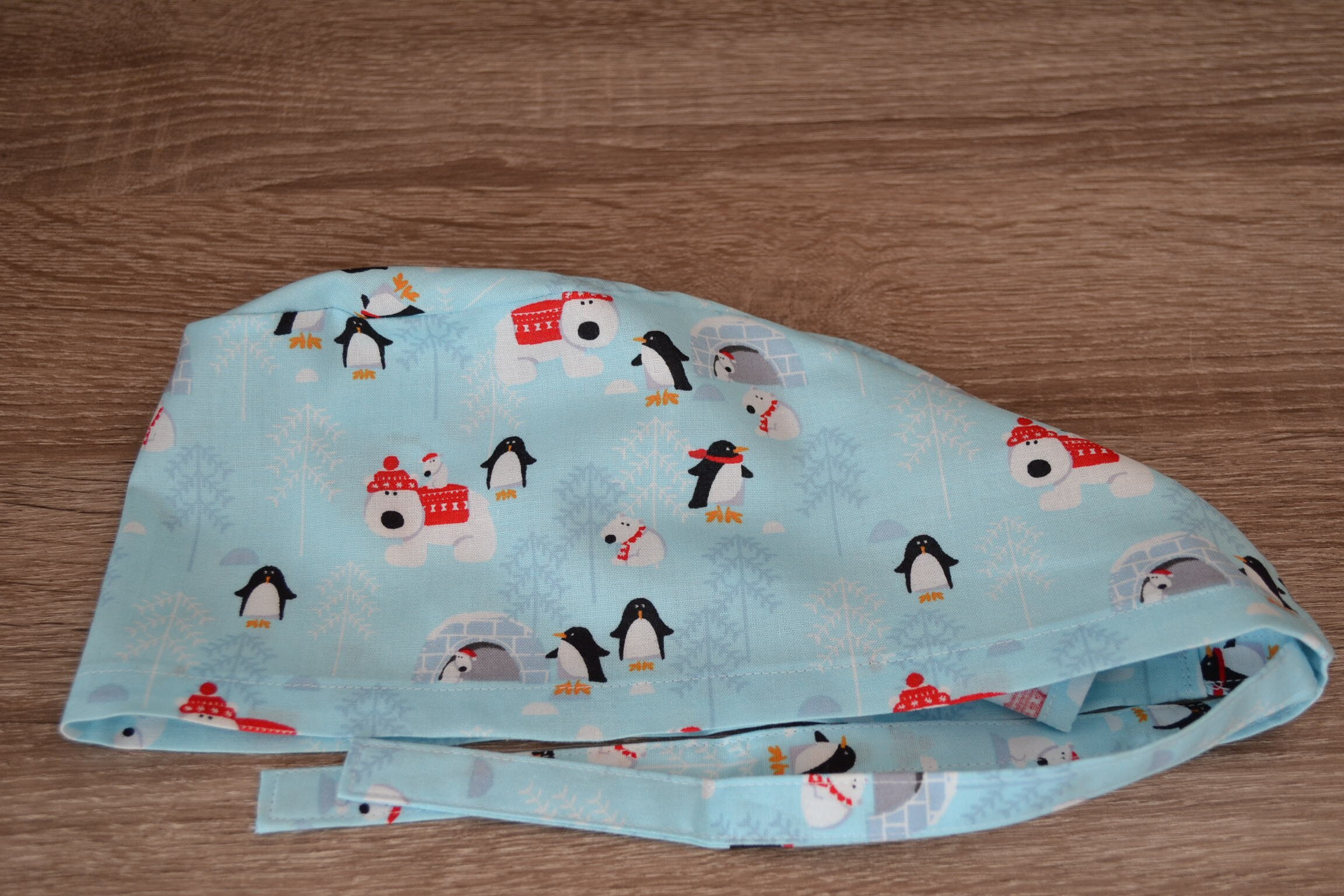 Surgical cap penguin terry cloth band, bandana, peeling cap, scrub cap, cosmetic cap, cooking cap, surgical caps, light blue polar bear and penguin, handmade