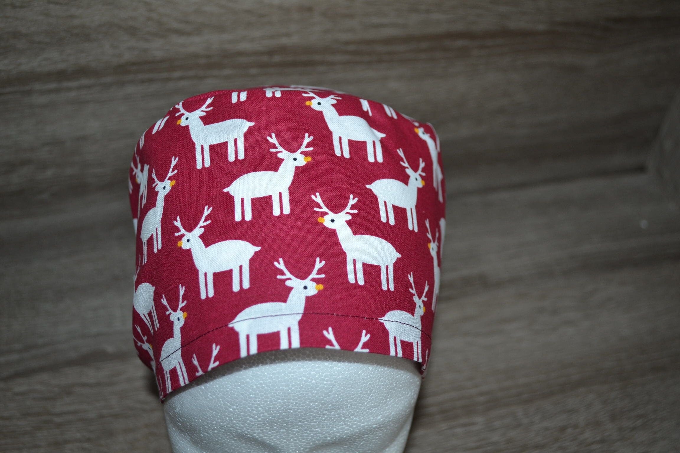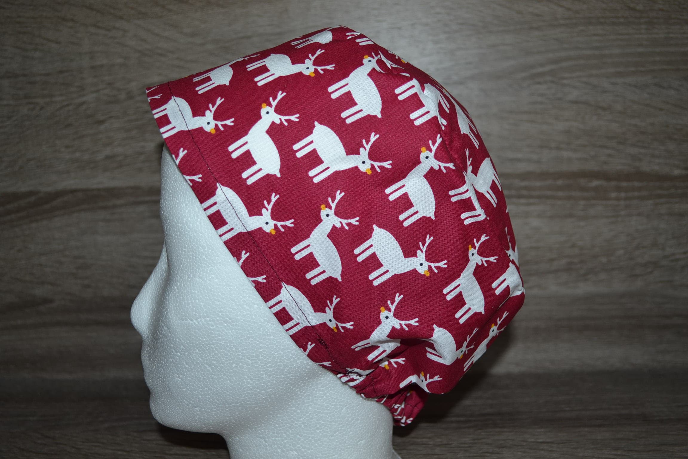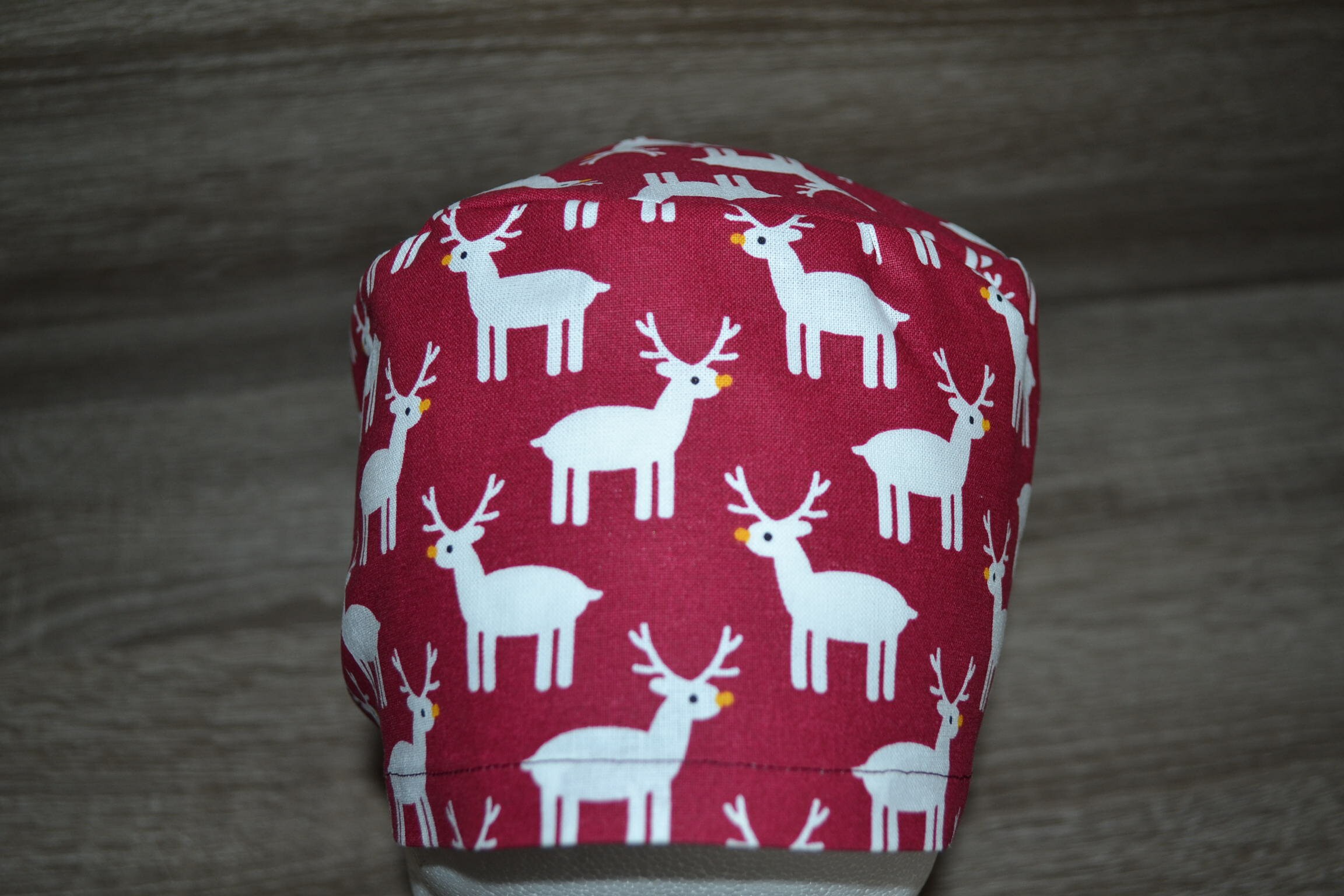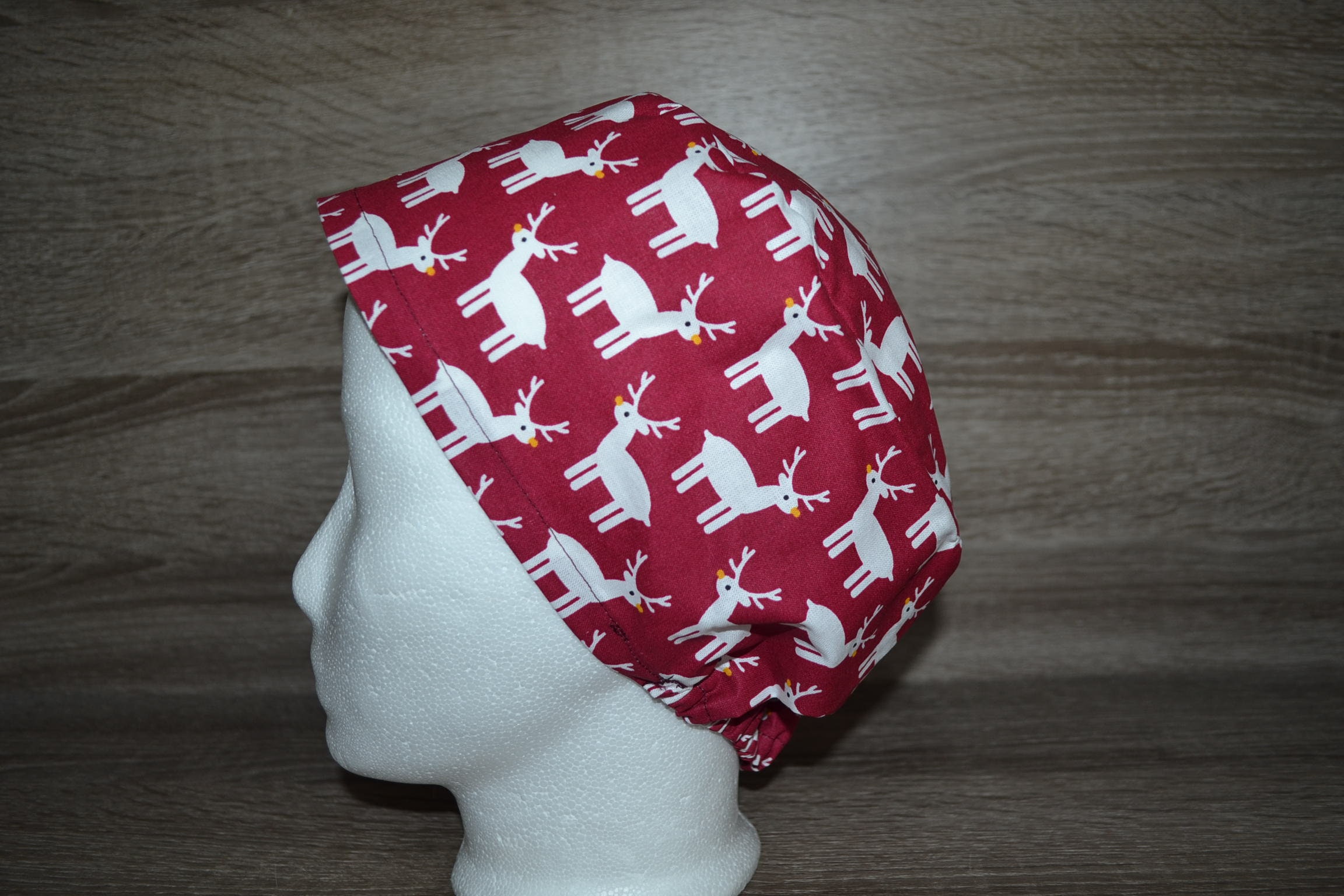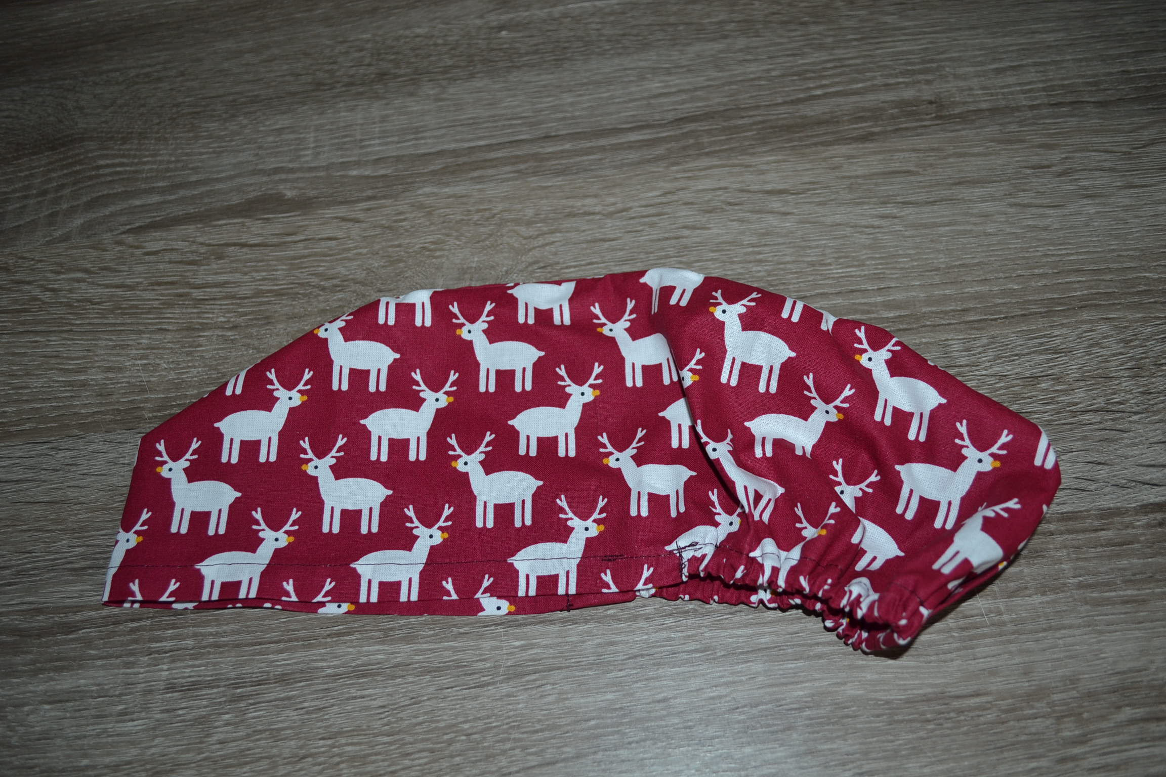 Surgical cap moose with RUBBER BAND, chef's hat, surgical caps, bandana, scrub cap, cosmetic cap, wine red with moose deer, handmade
