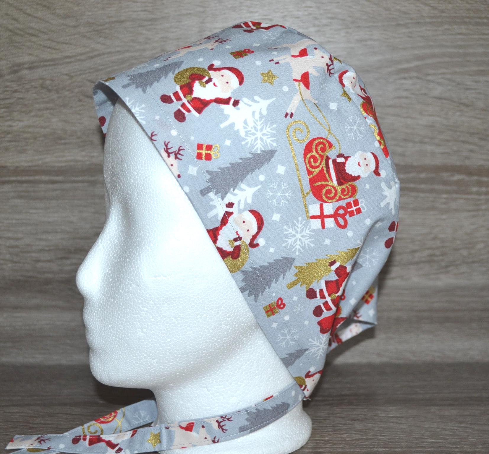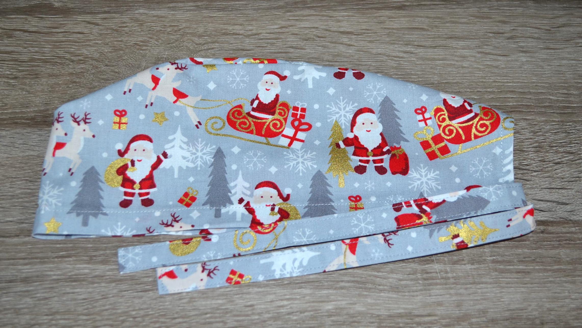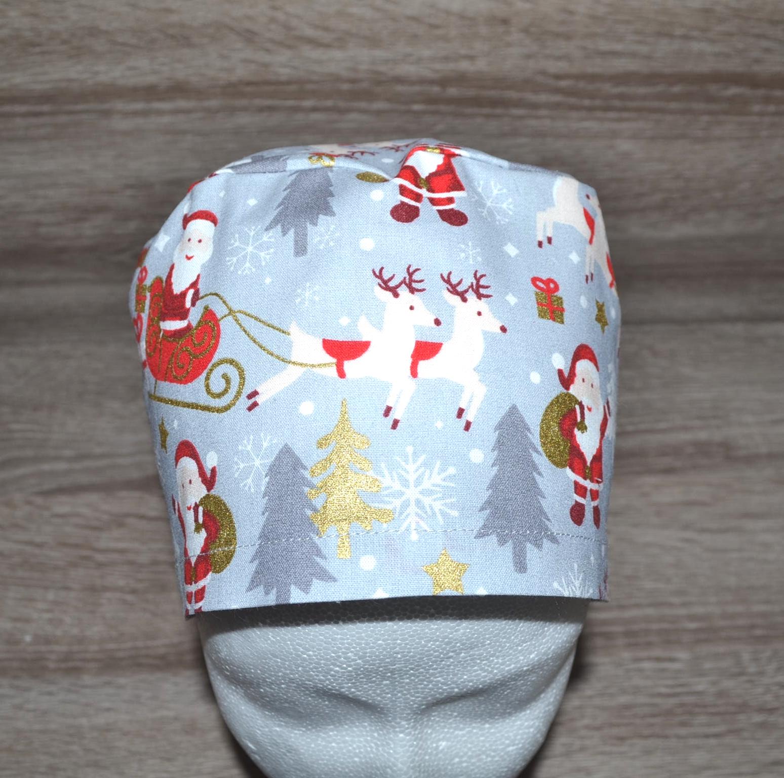 Surgical cap Santa Claus, scrub cap, bandana, cosmetic cap, peeling cap, grey with Santa Claus, chef's hat, Christmas surgical caps, Santa Claus cap