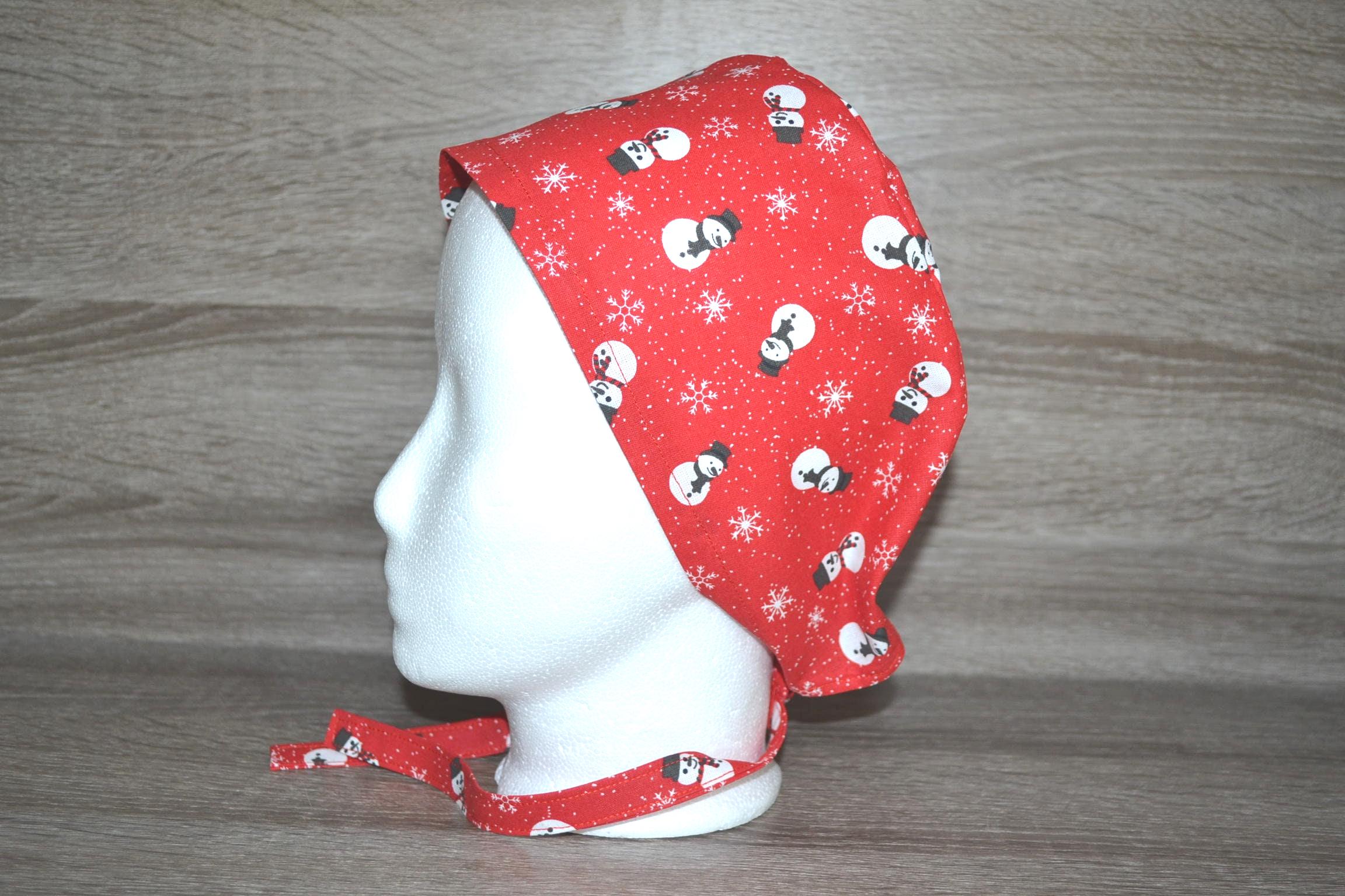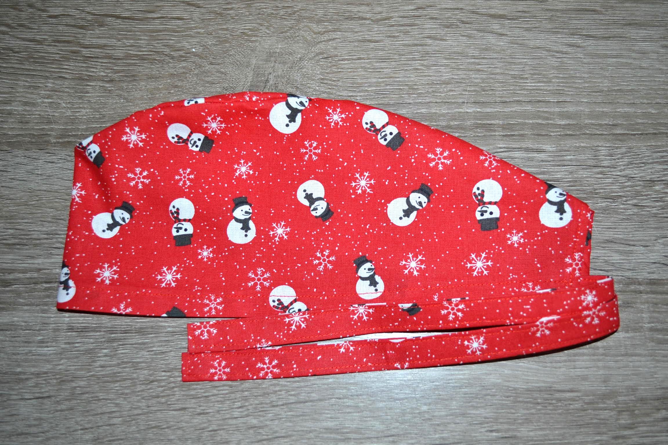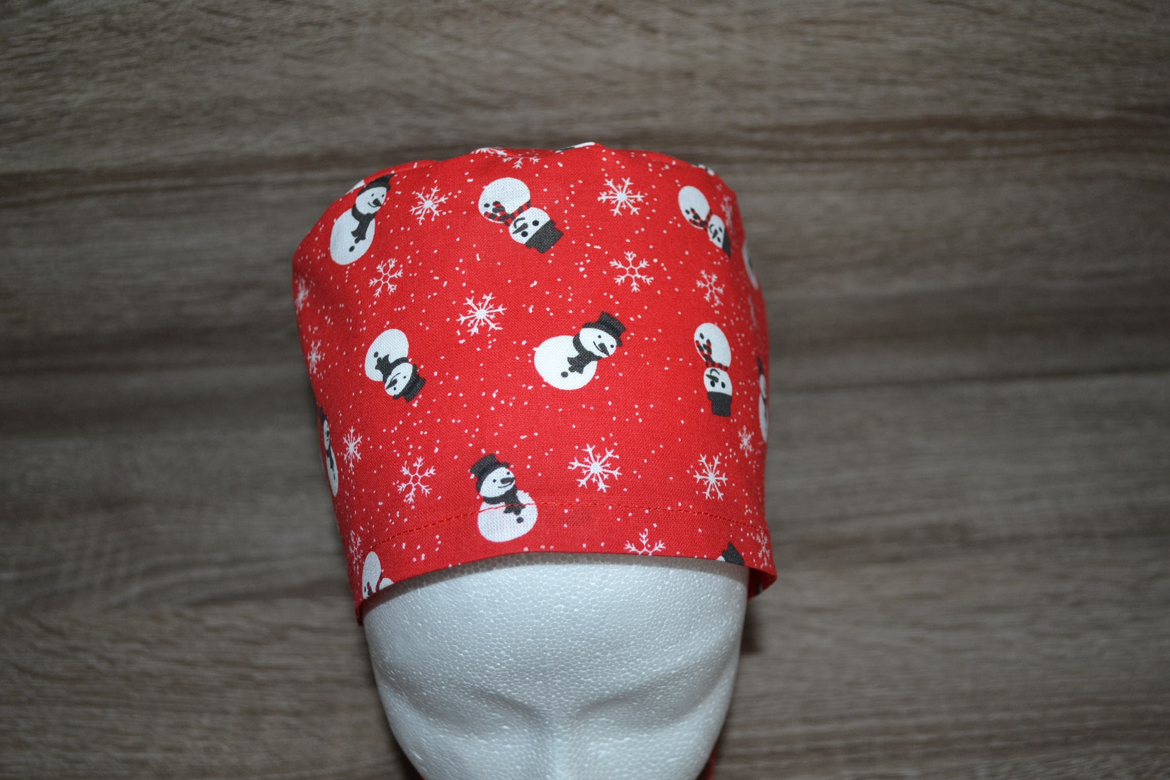 Surgical cap with snowman design, scrub cap, bandana, cosmetic cap, peeling cap, chef's hat, red with snowmen, Christmas surgical cap, Christmas cap