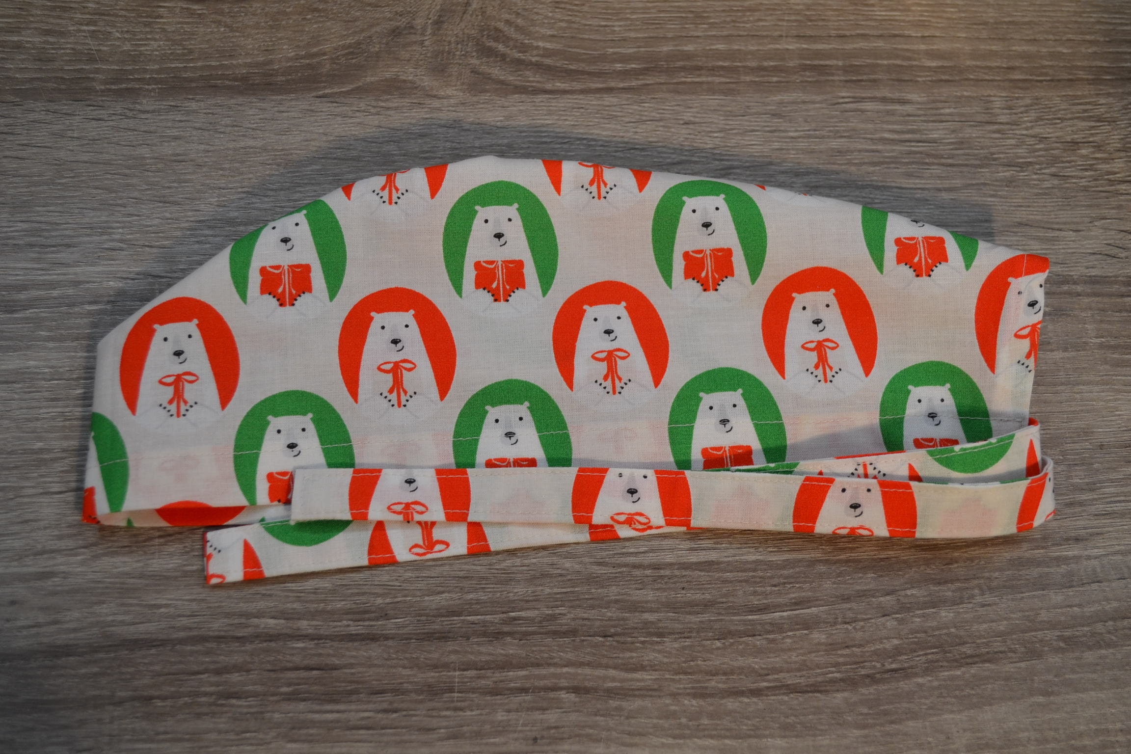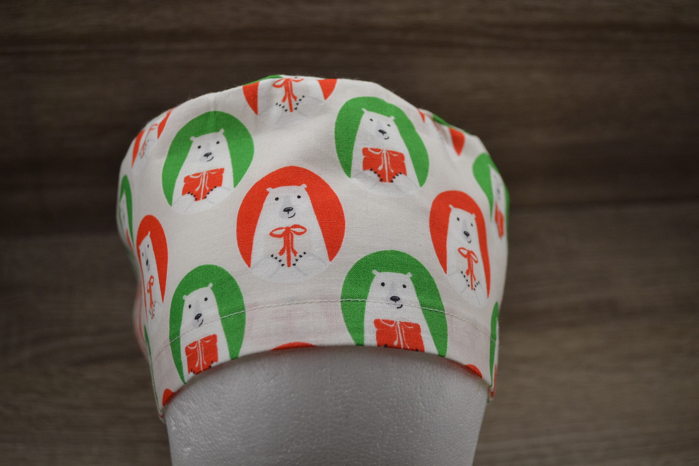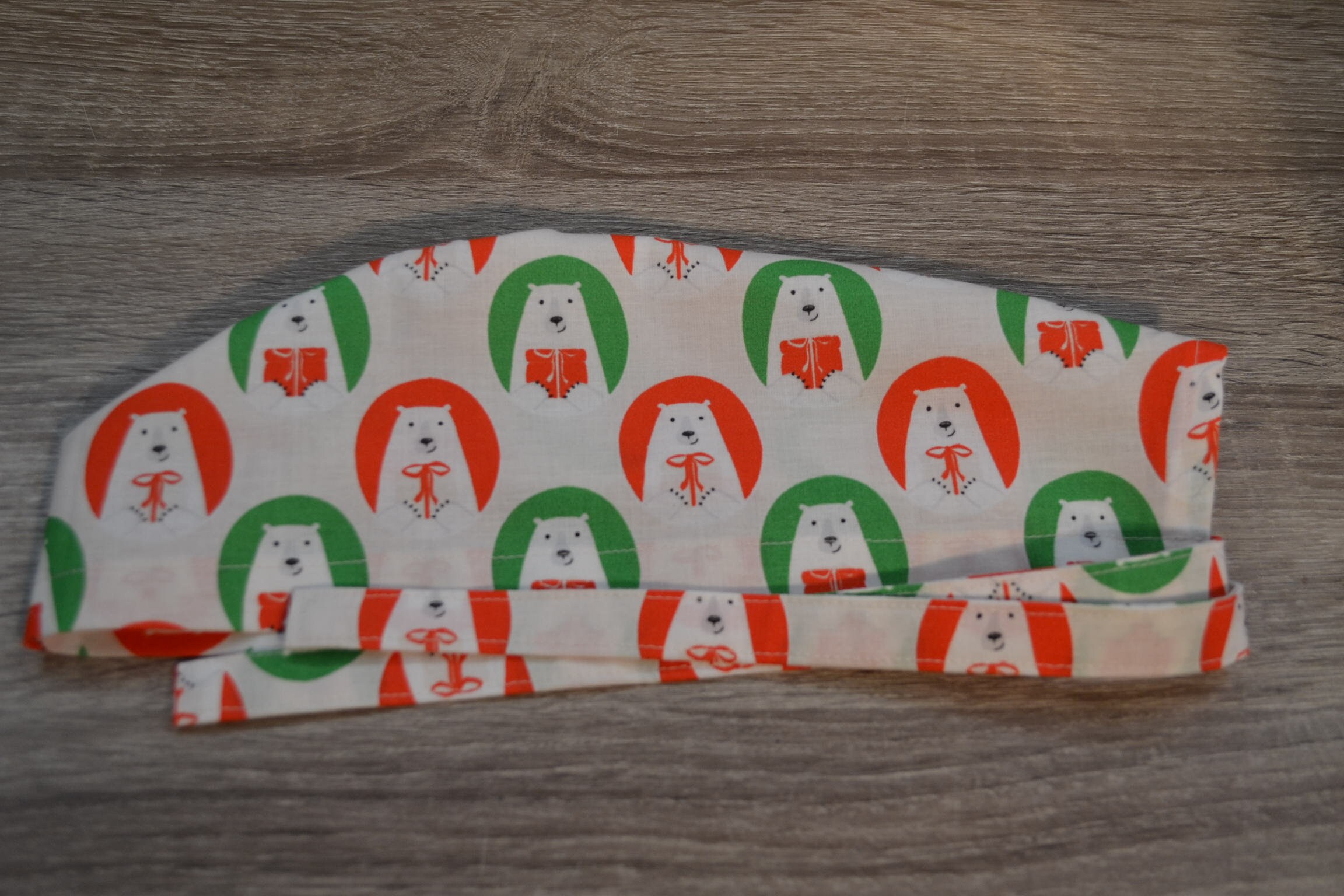 Surgical cap polar bear, scrub cap, bandana, cosmetic cap, peeling cap, chef's hat, beige with polar bears, surgical caps Christmas,