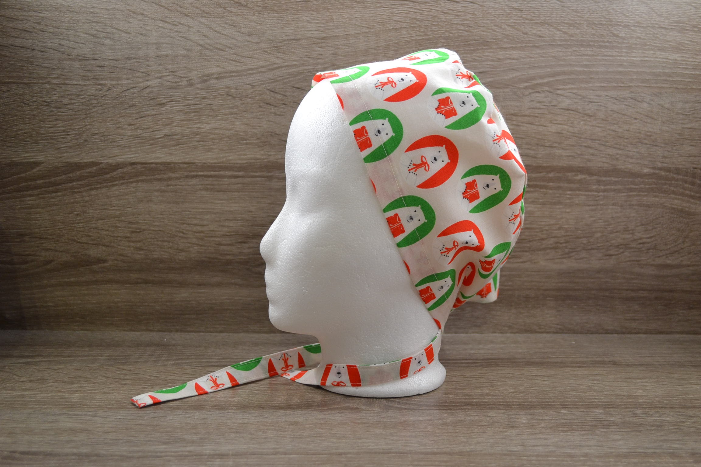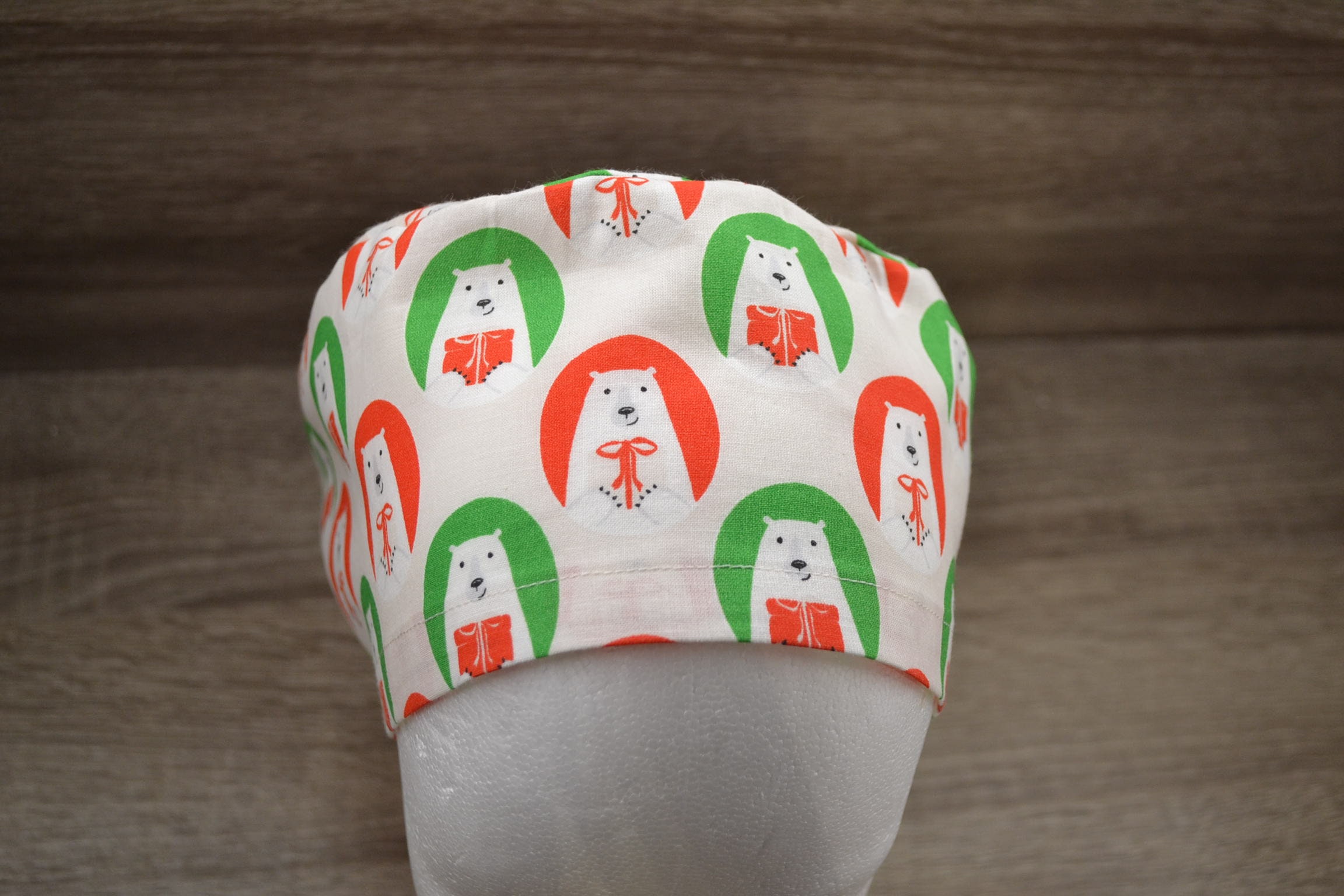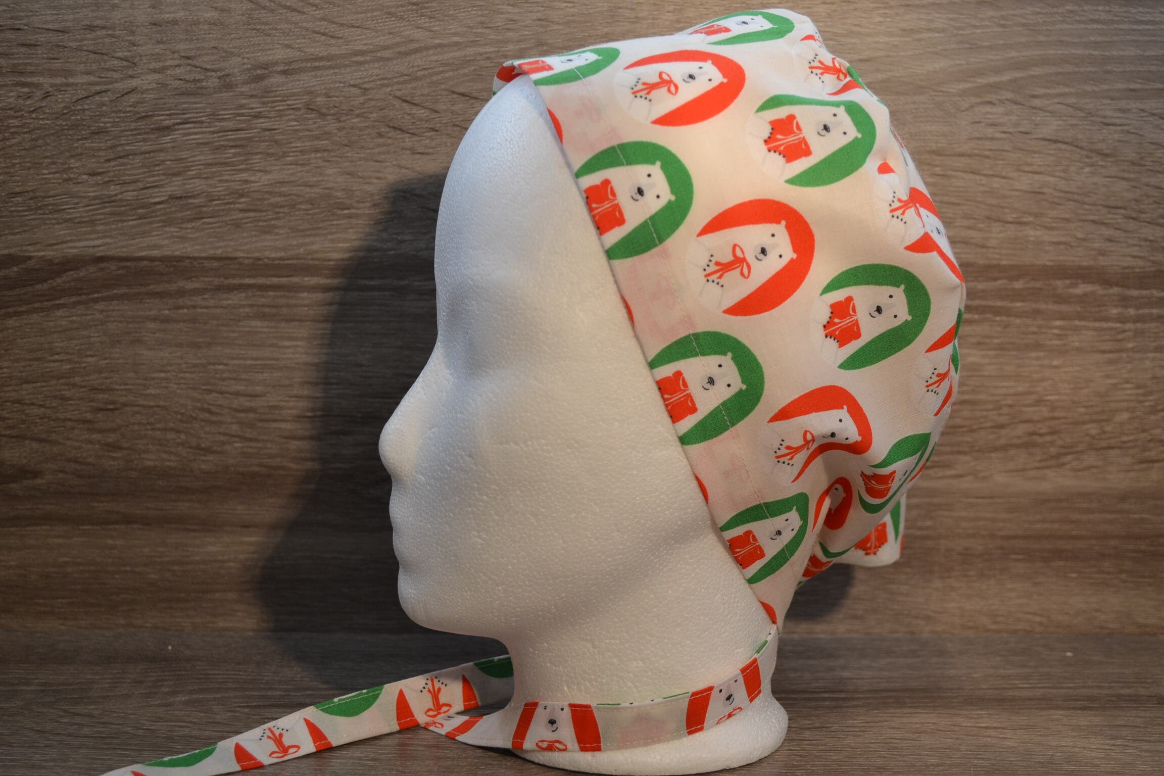 Surgical cap polar bear, scrub cap, bandana, cosmetic cap, peeling cap, chef's hat, beige with polar bears, surgical caps Christmas,