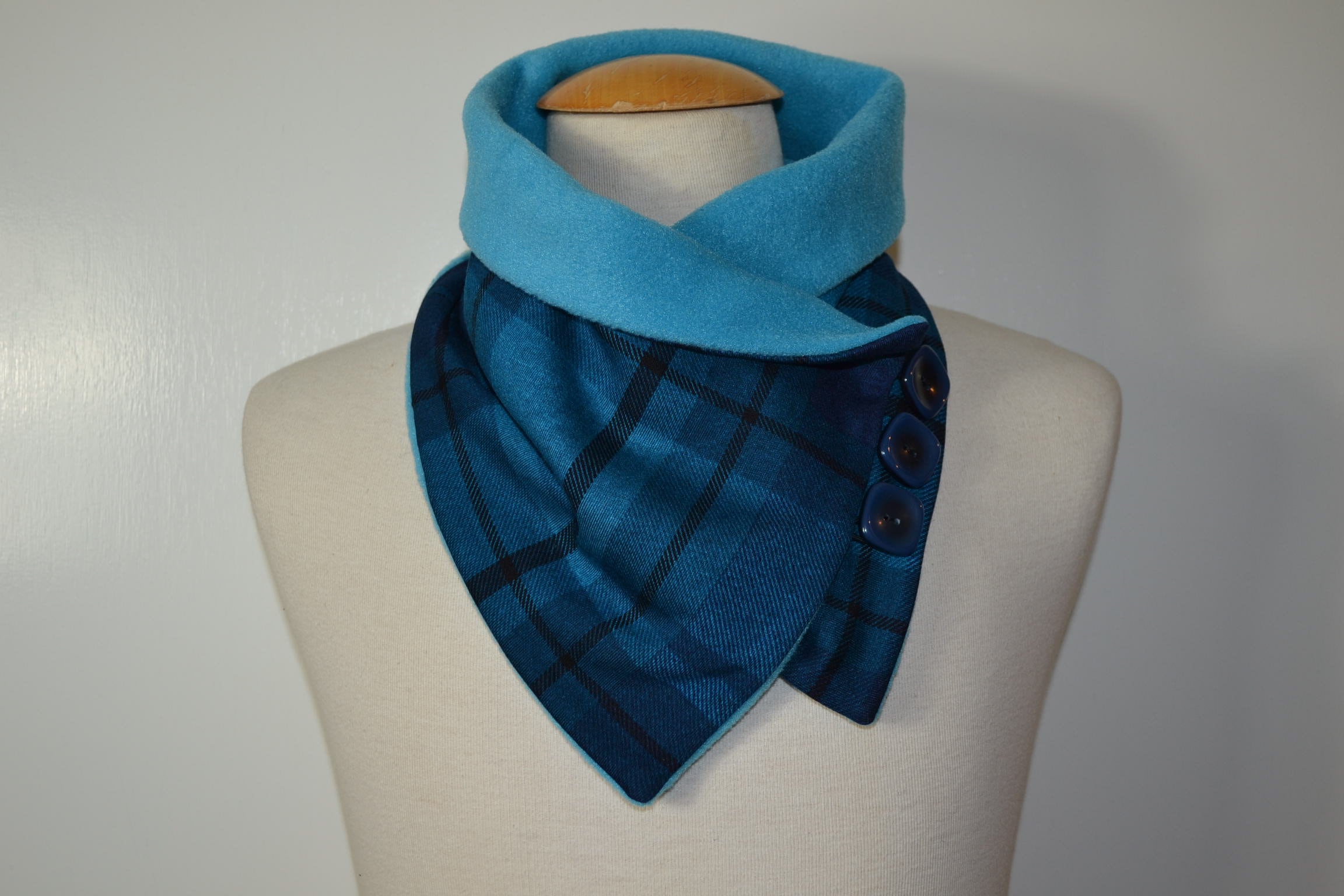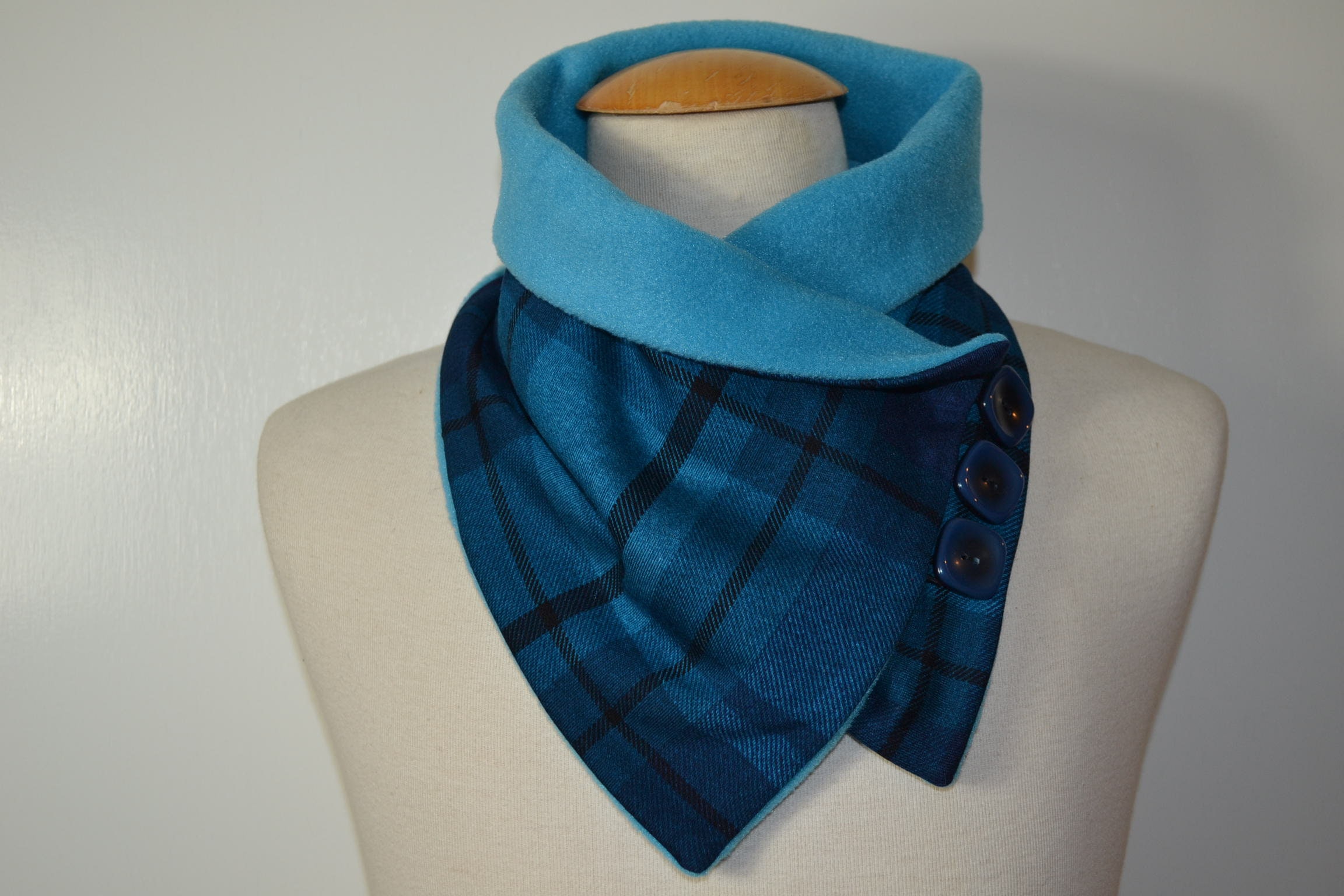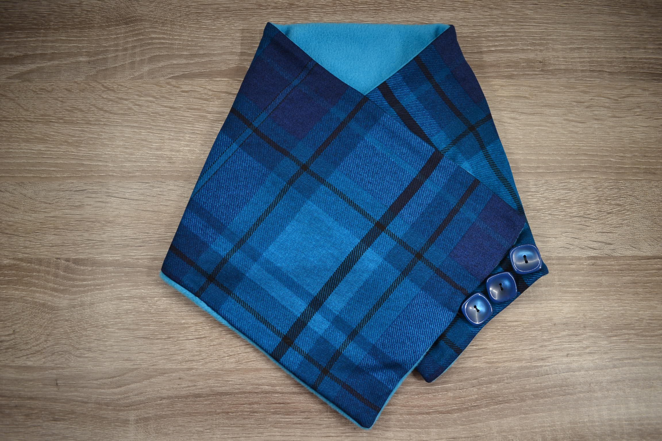Blue button-up loop scarf, blue and black checkered loop scarf with blue fleece, loops, scarf, wrap scarf, loop winter scarf, scarf with buttons