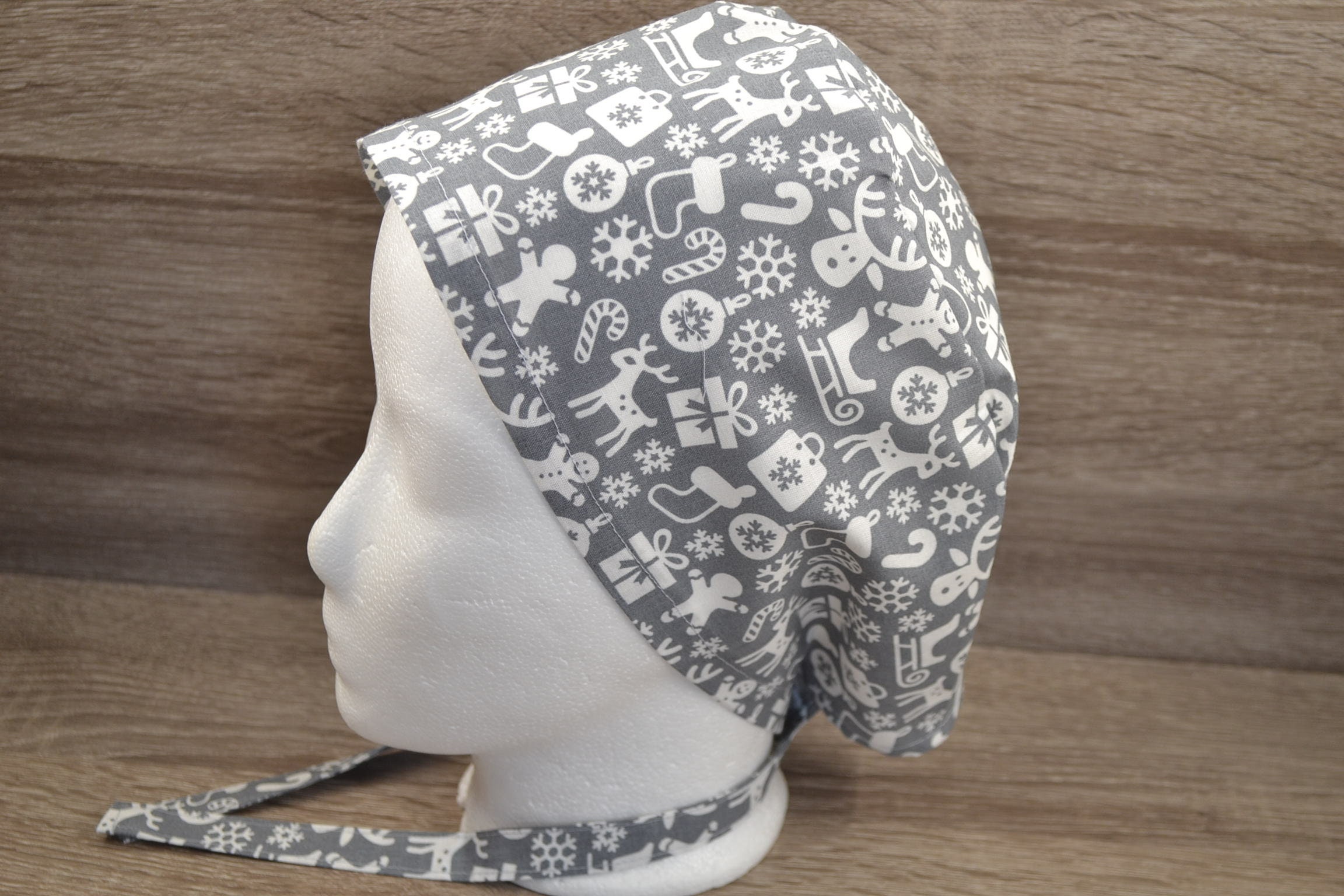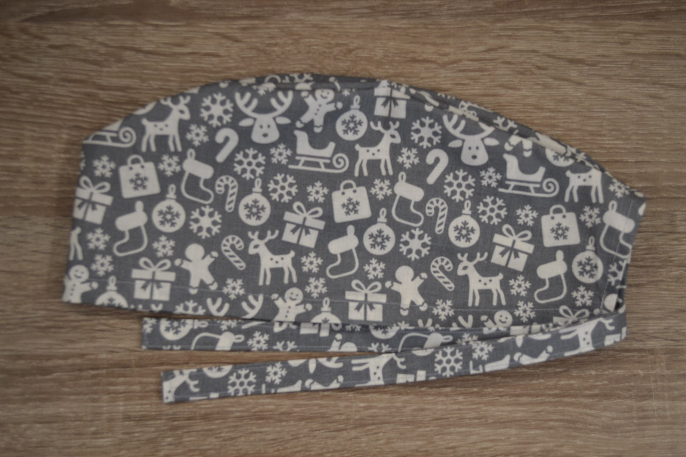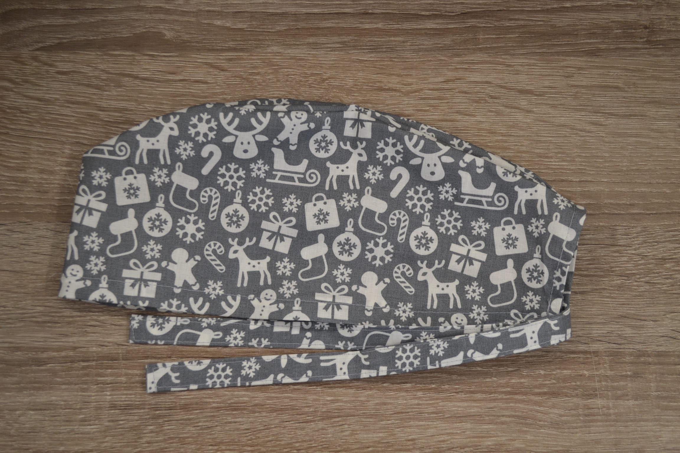 Surgical cap Christmas motifs, scrub cap, bandana, cosmetic cap, peeling cap, chef's hat, grey with sleigh and moose, surgical caps Christmas,