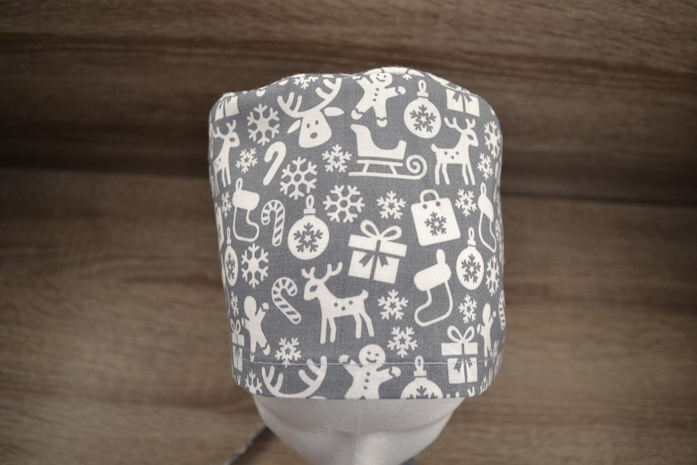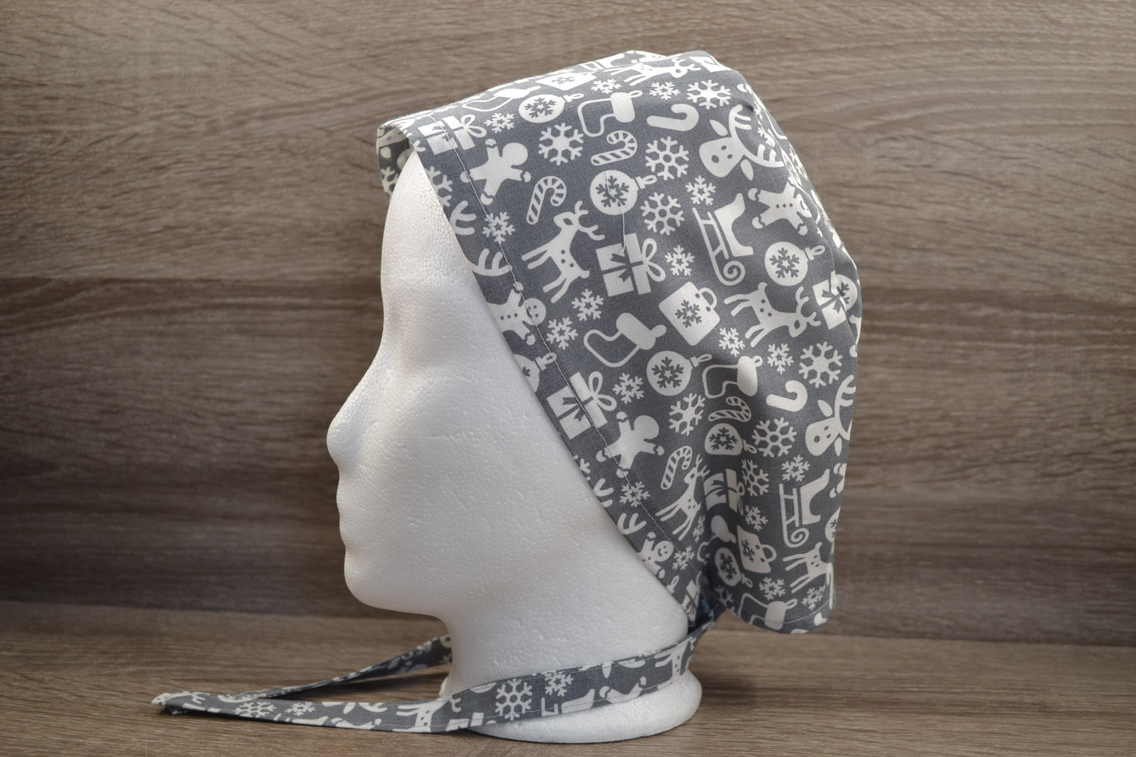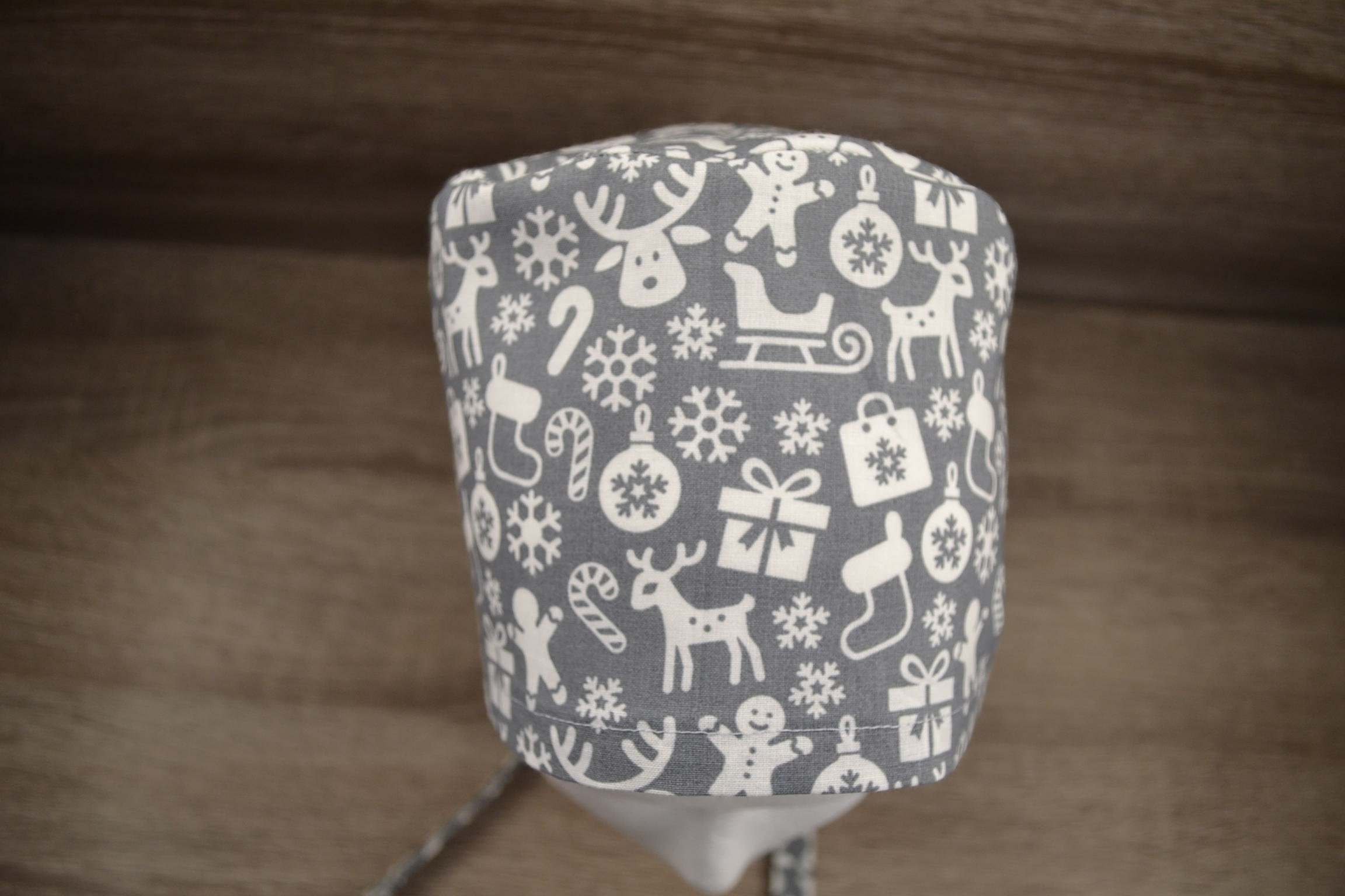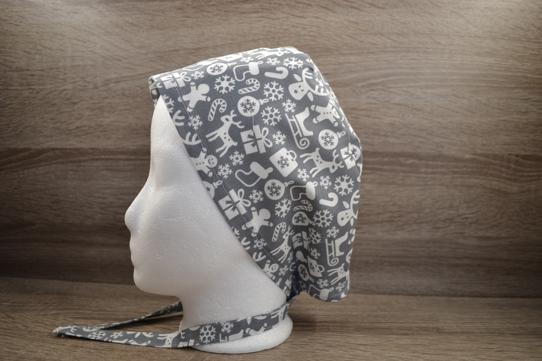 Surgical cap Christmas motifs, scrub cap, bandana, cosmetic cap, peeling cap, chef's hat, grey with sleigh and moose, surgical caps Christmas,
