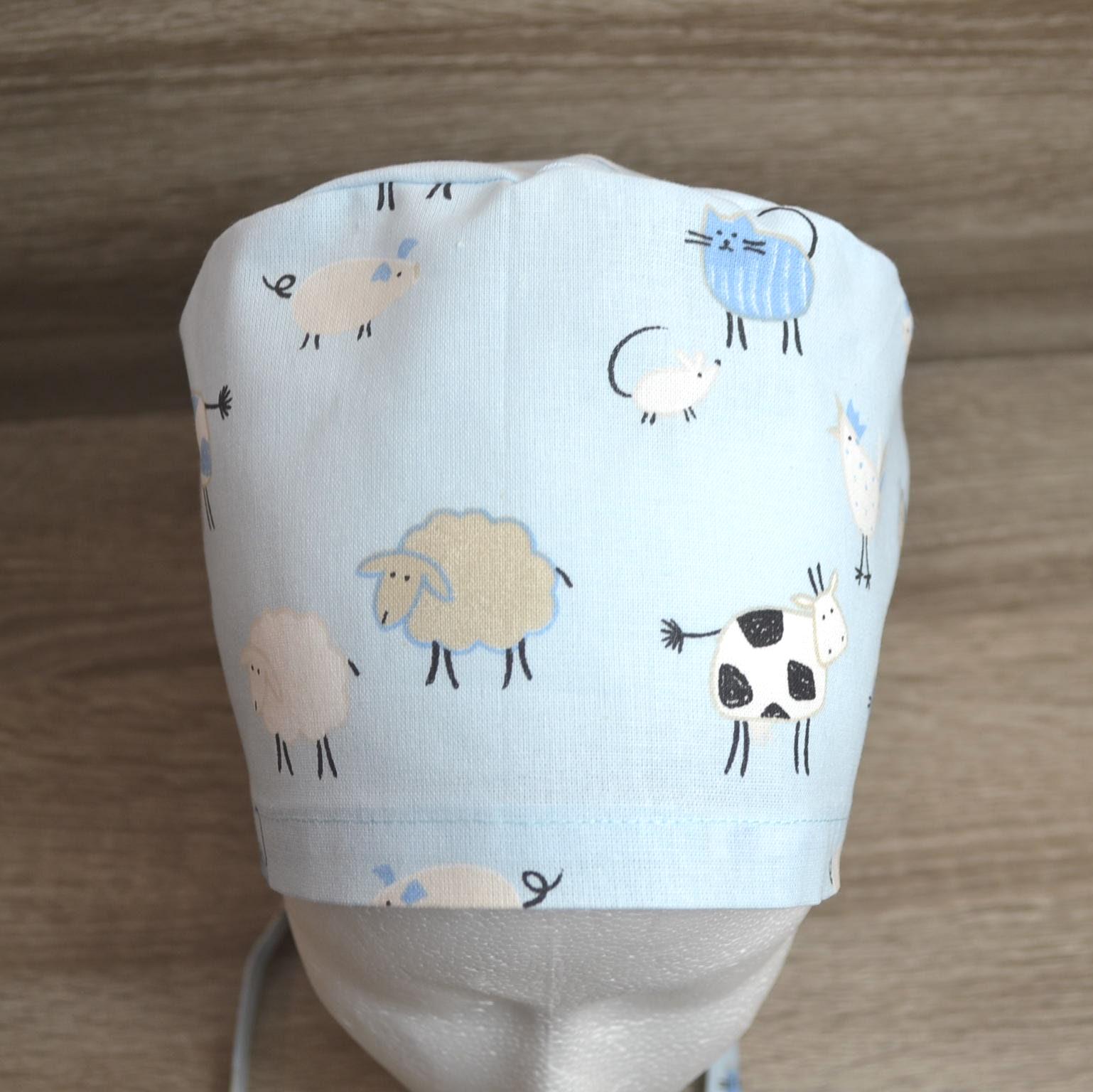 Surgical cap with cows, scrub cap, bandana, peeling cap, cosmetic cap, light blue with farm animals, chef's cap, surgical caps, handmade
